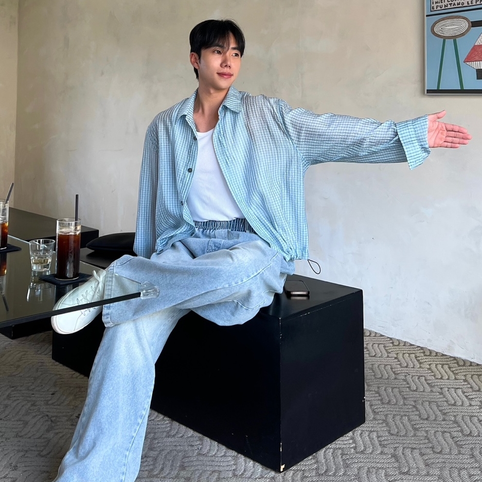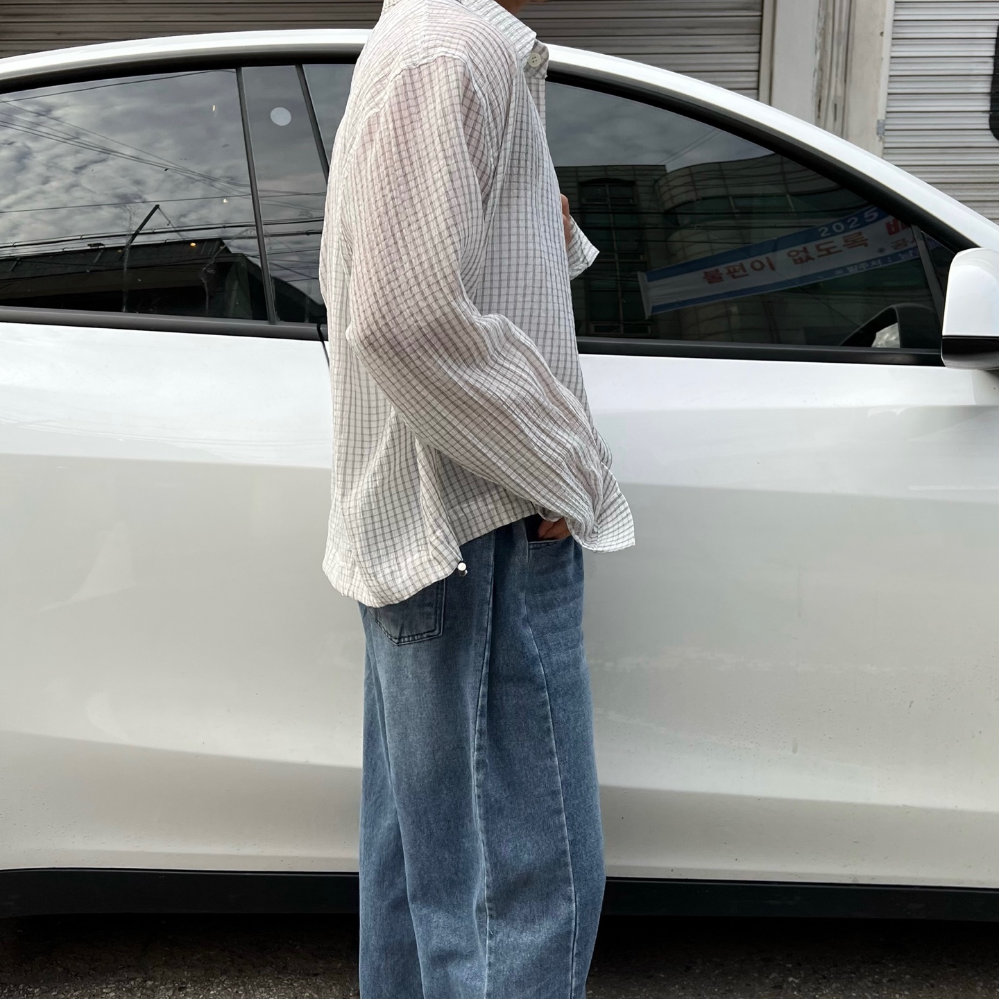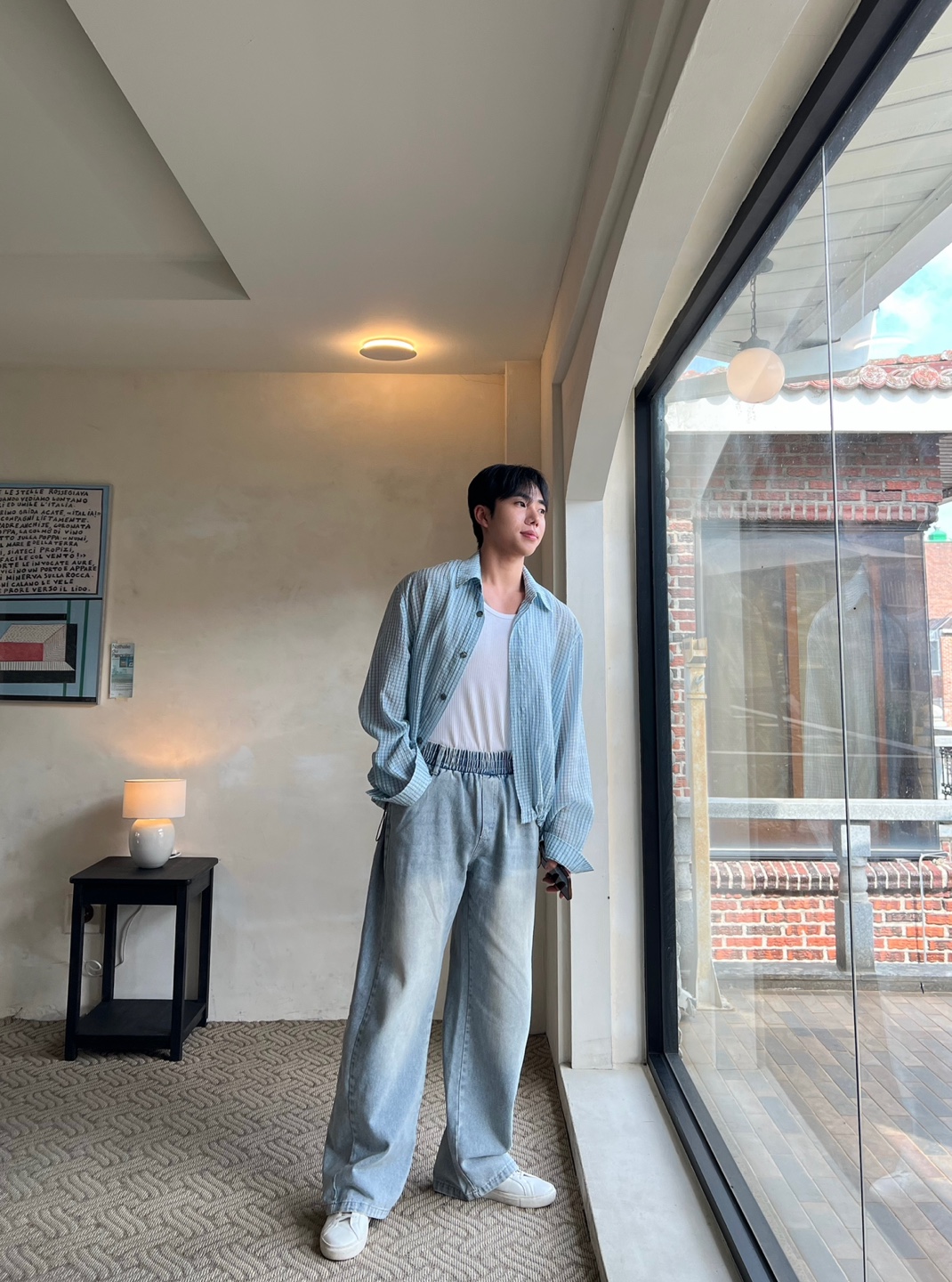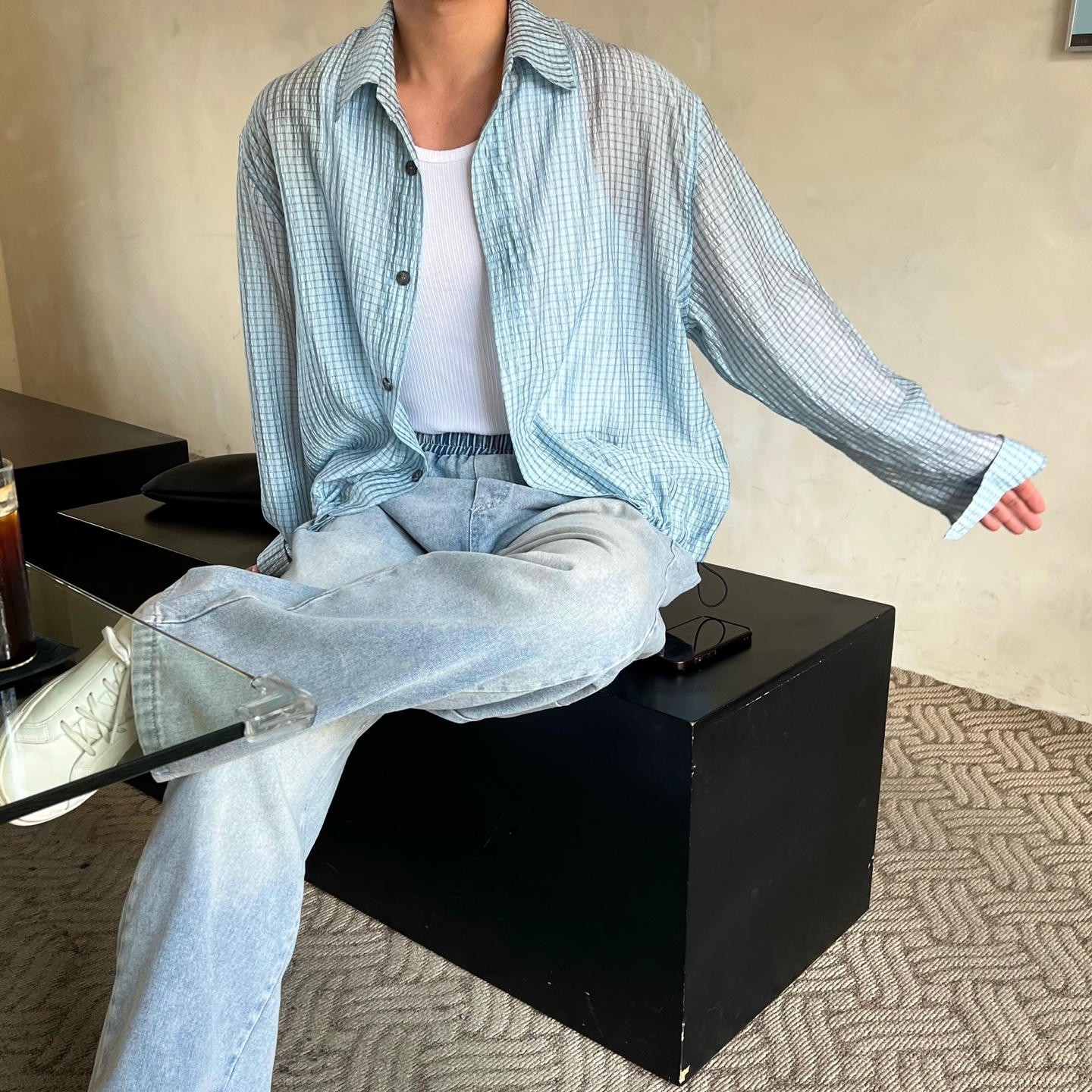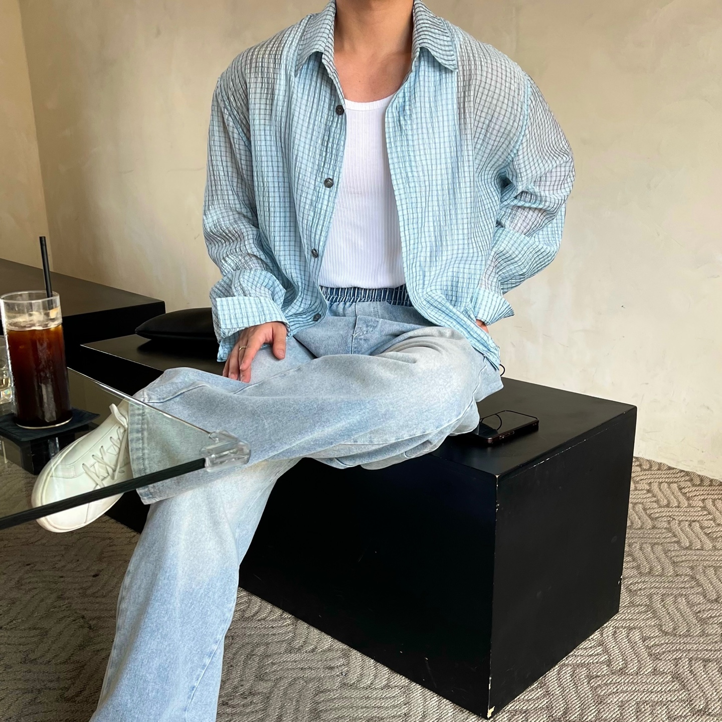 - 가볍고 드라이한 터치감의 크링클 체크 원단으로 제작되어 여름철에도 쾌적하게 착용 가능