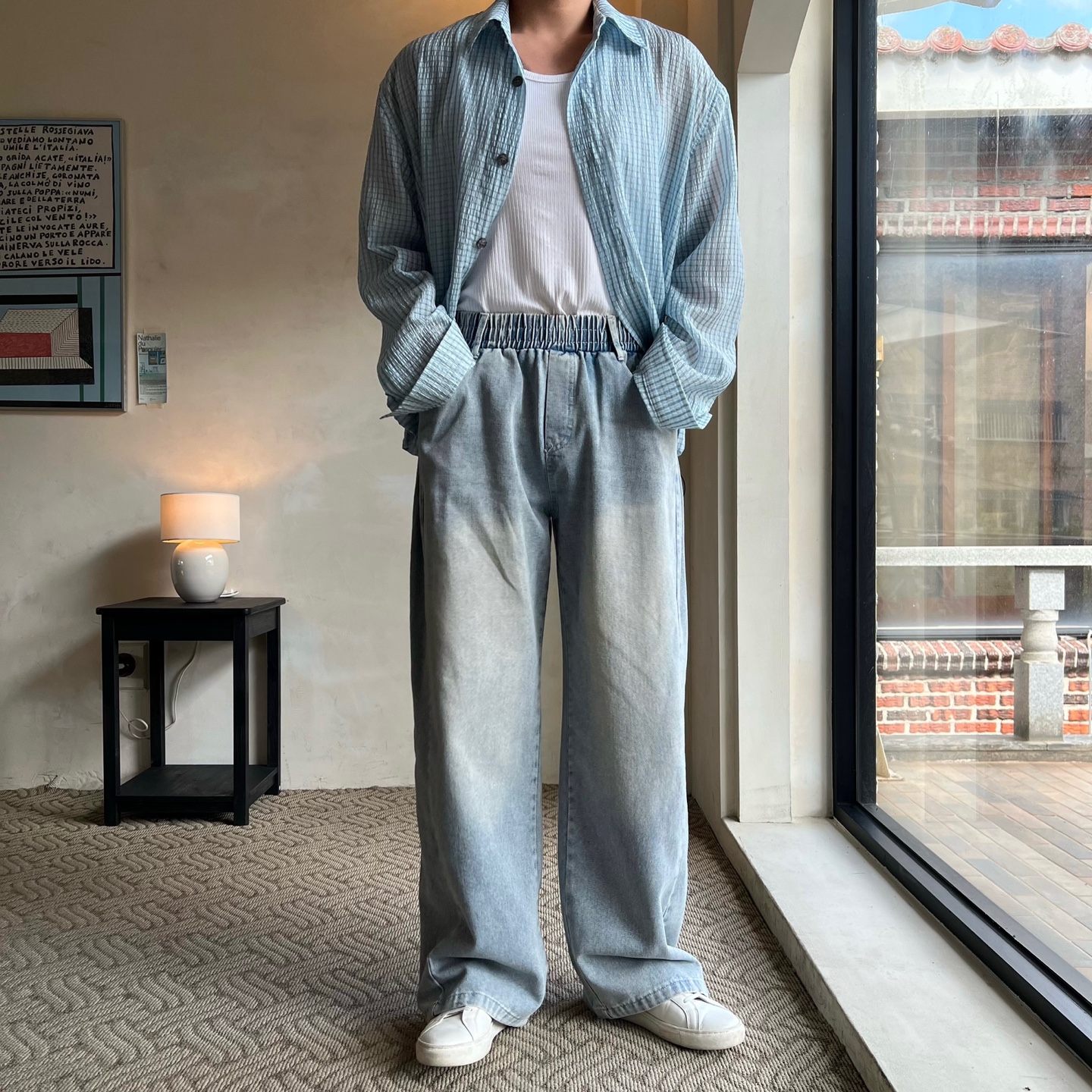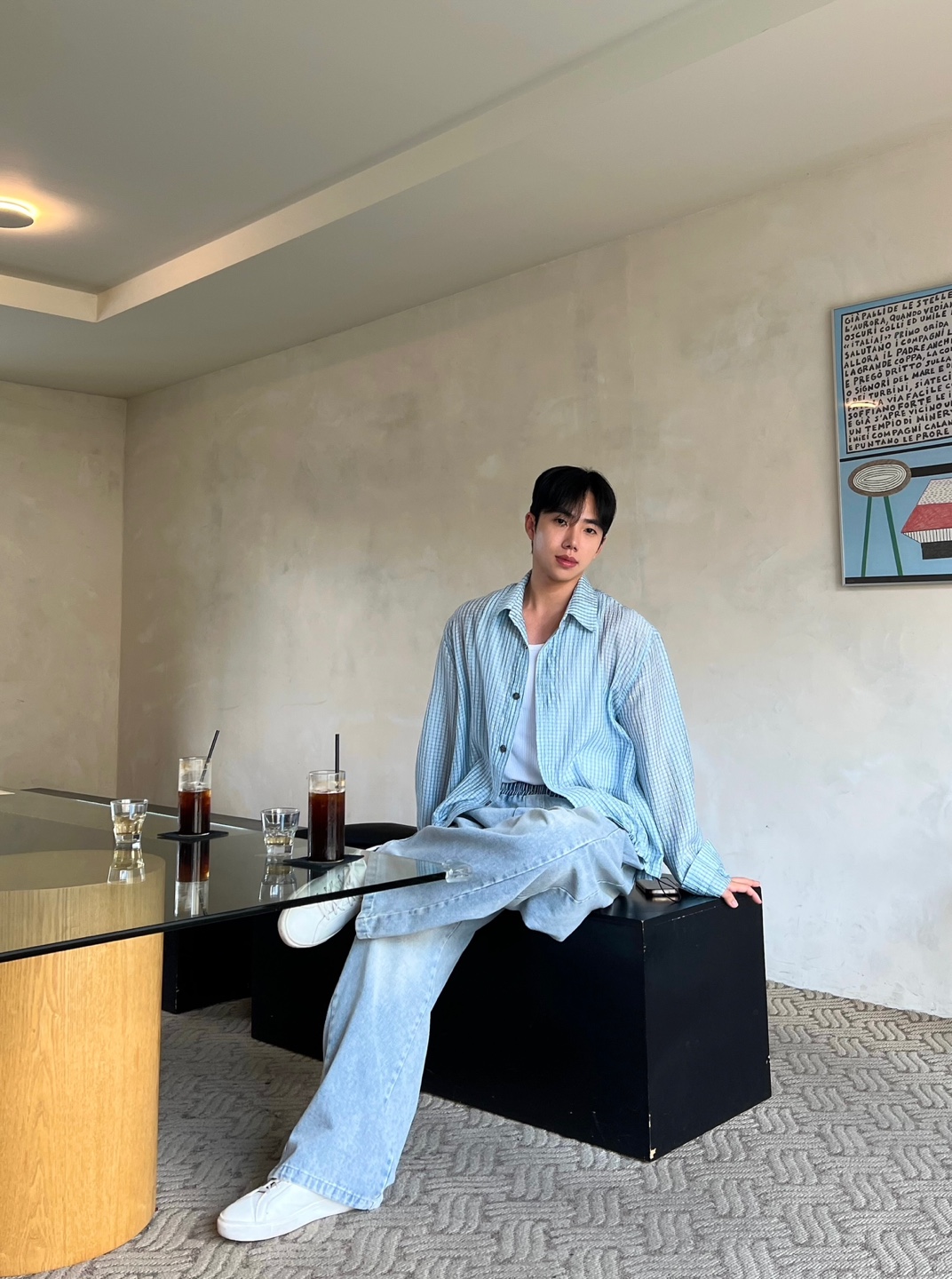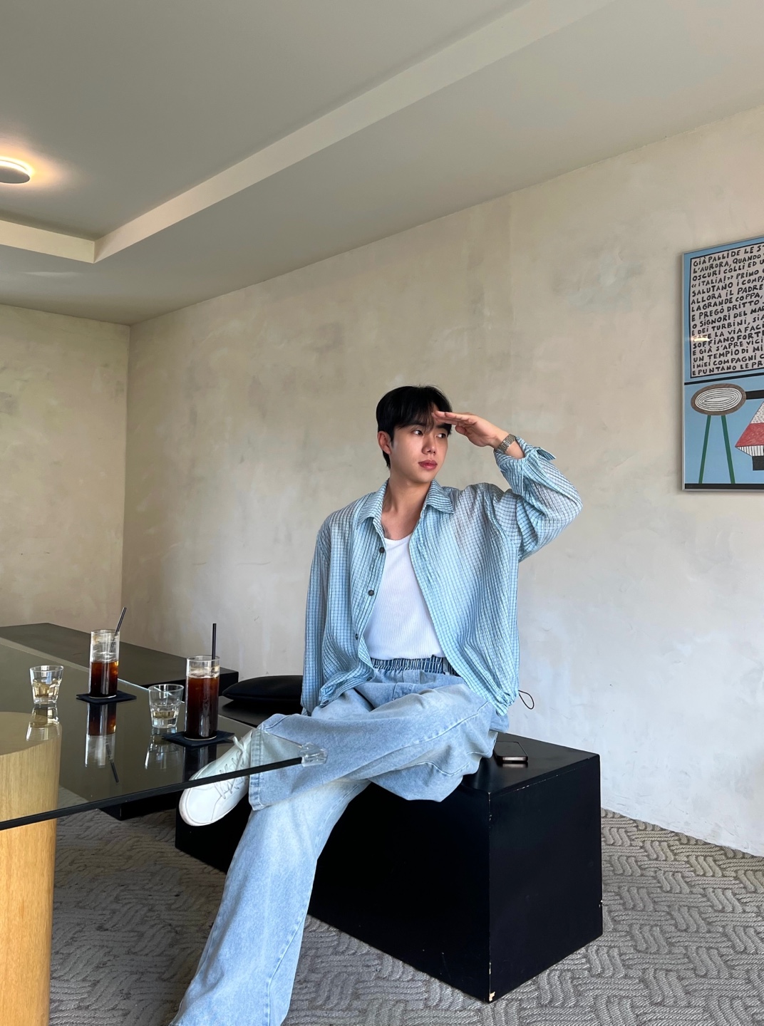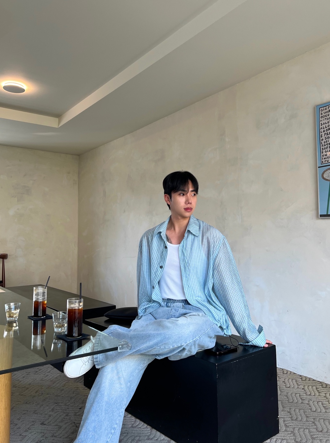 - 가볍고 드라이한 터치감의 크링클 체크 원단으로 제작되어 여름철에도 쾌적하게 착용 가능