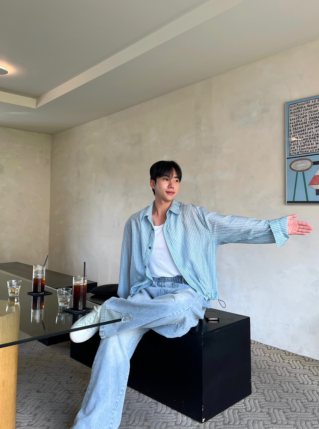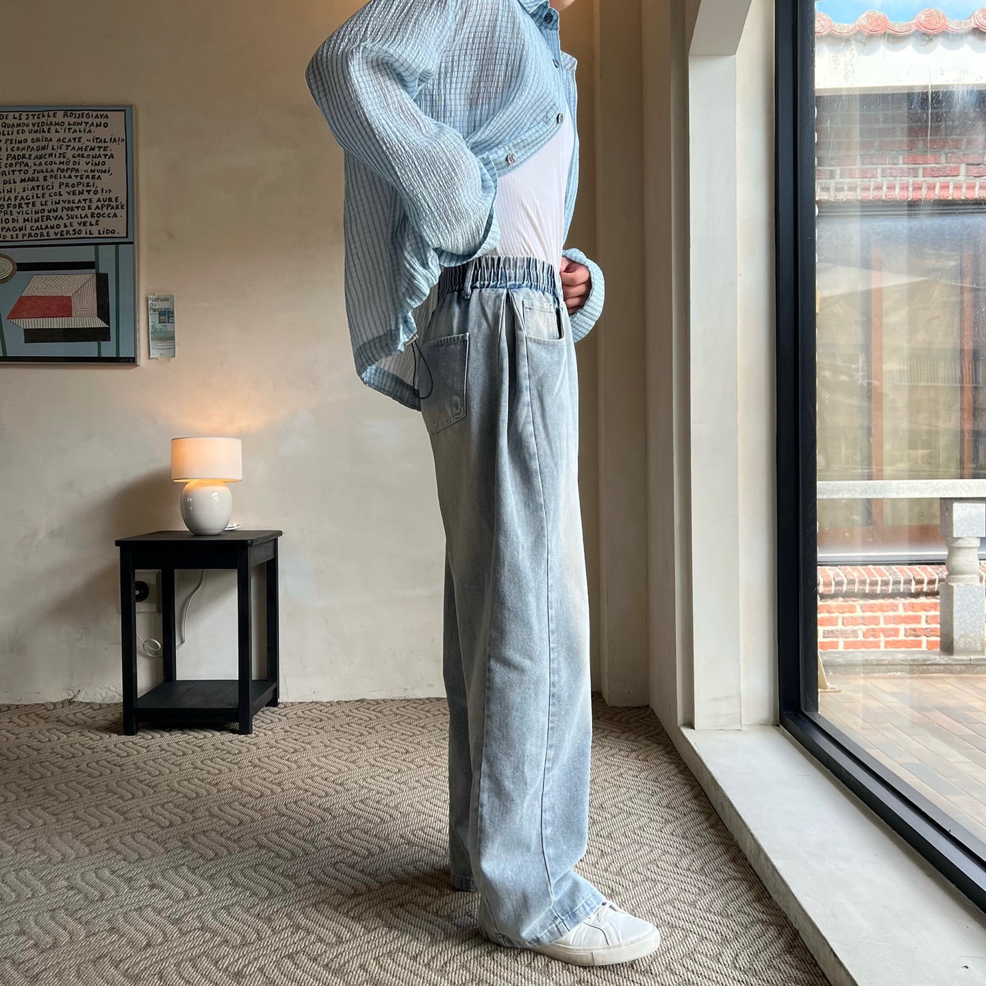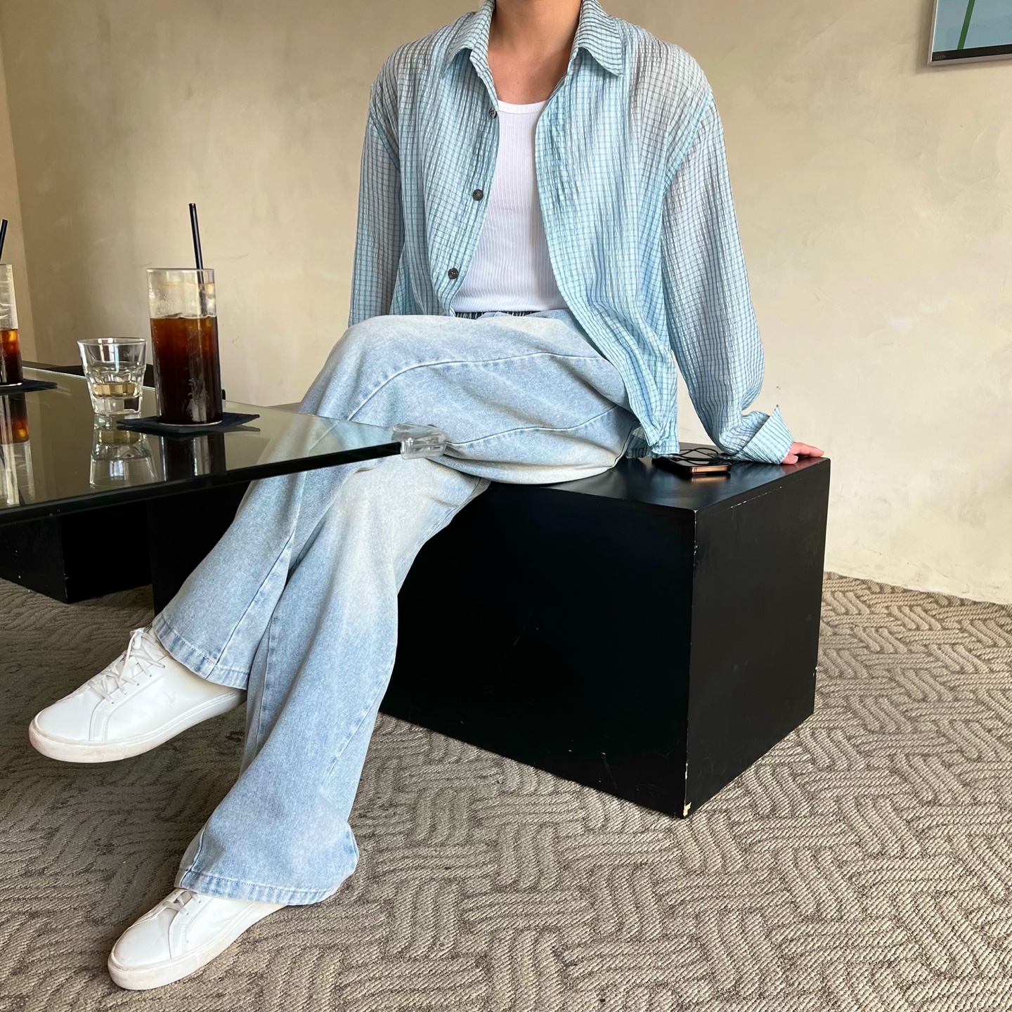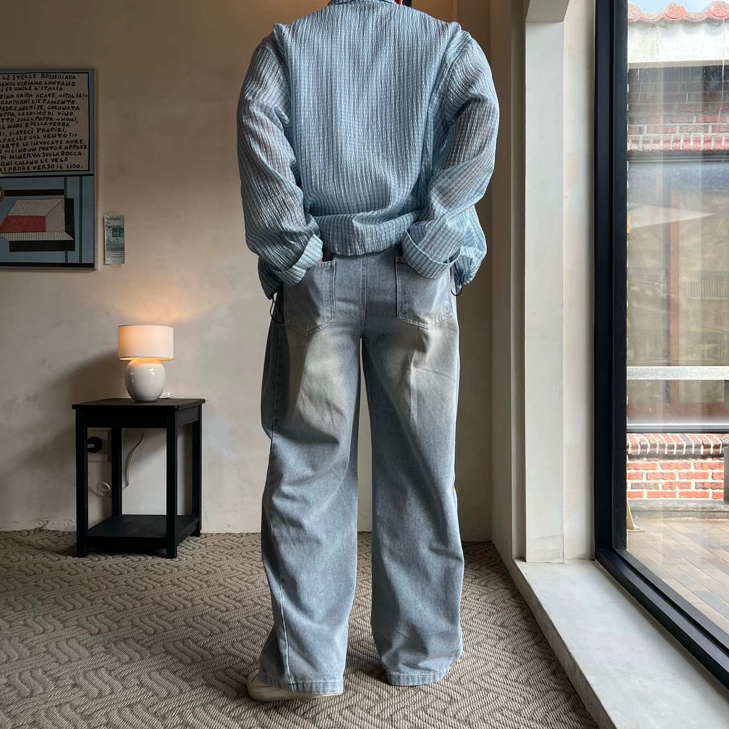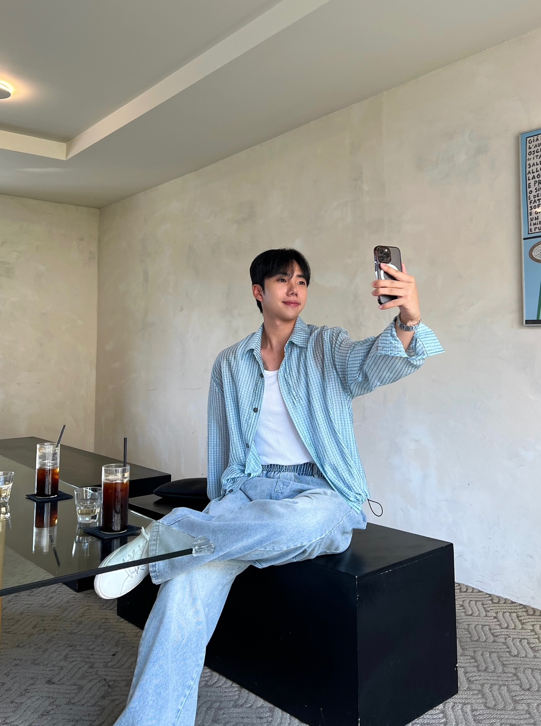 - 가볍고 드라이한 터치감의 크링클 체크 원단으로 제작되어 여름철에도 쾌적하게 착용 가능