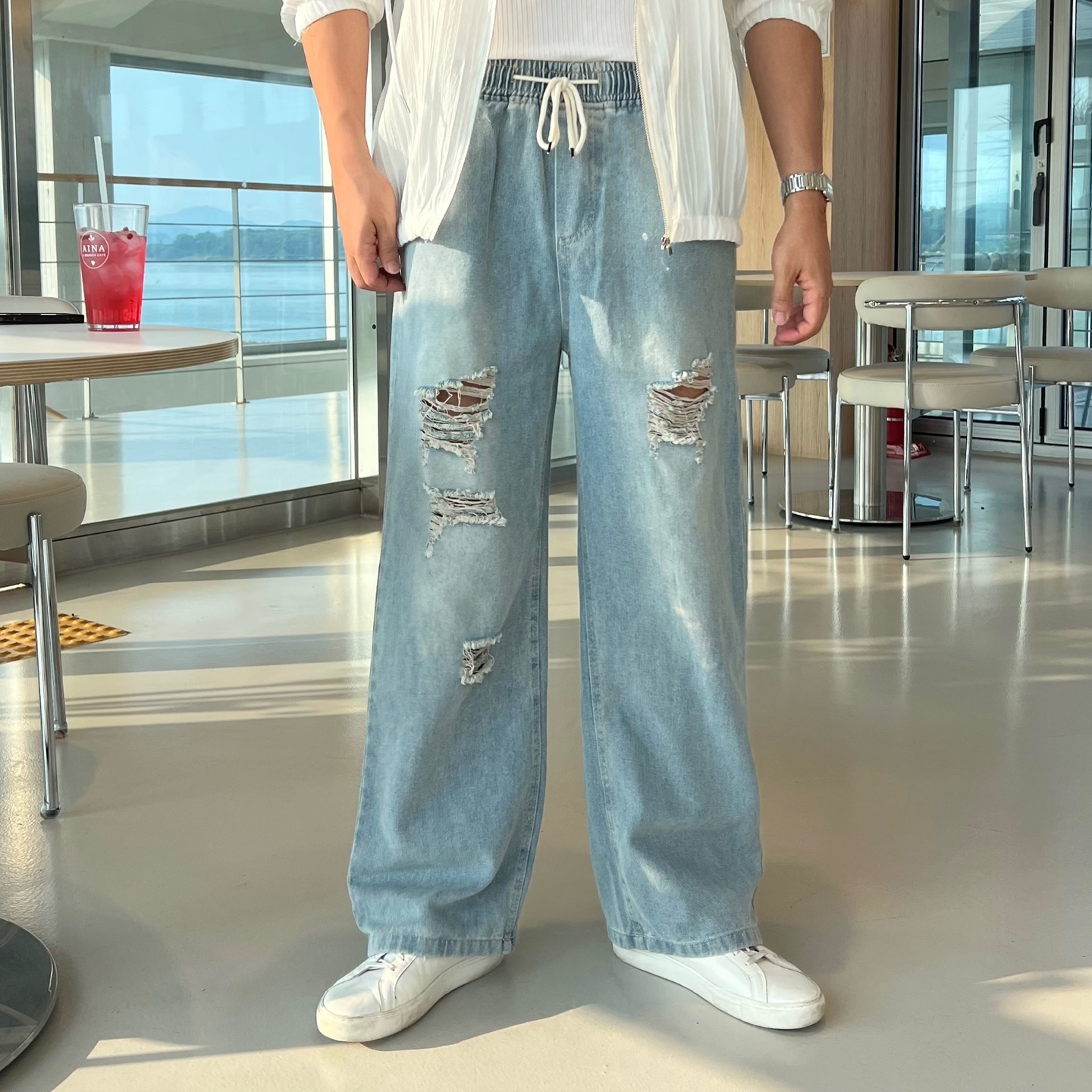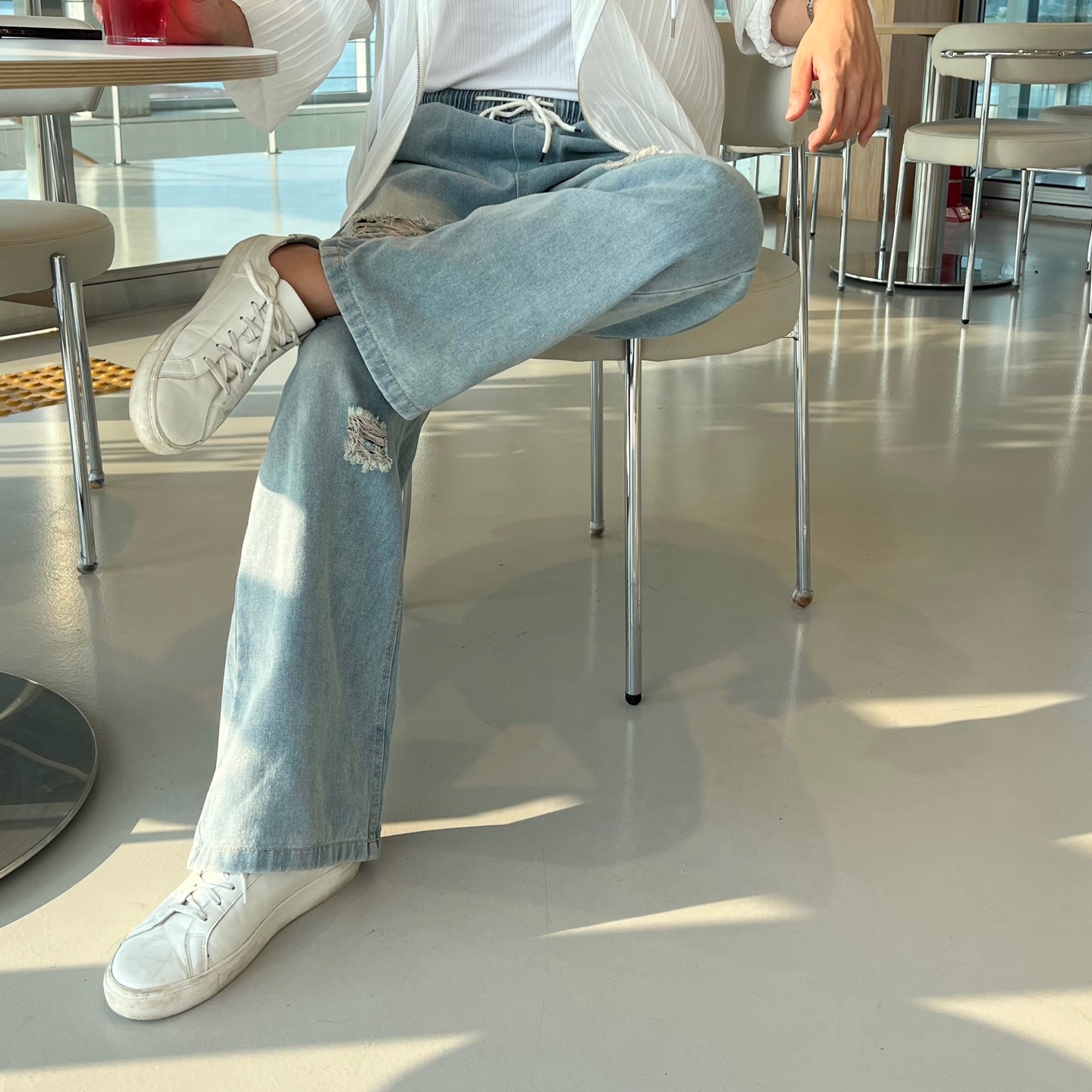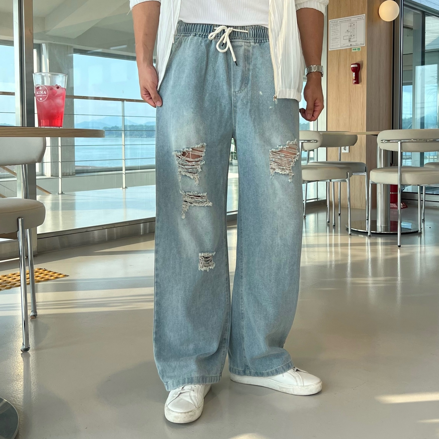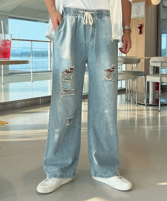 원스톤 밴딩 데미지 찢청 데님 팬츠 (1color)BESTMDHOT