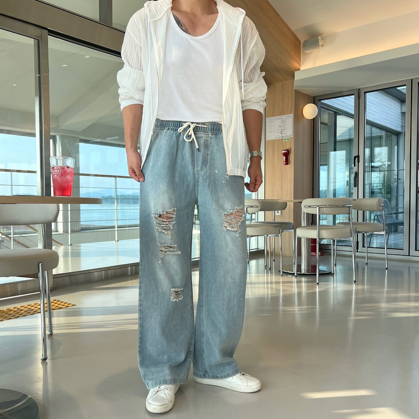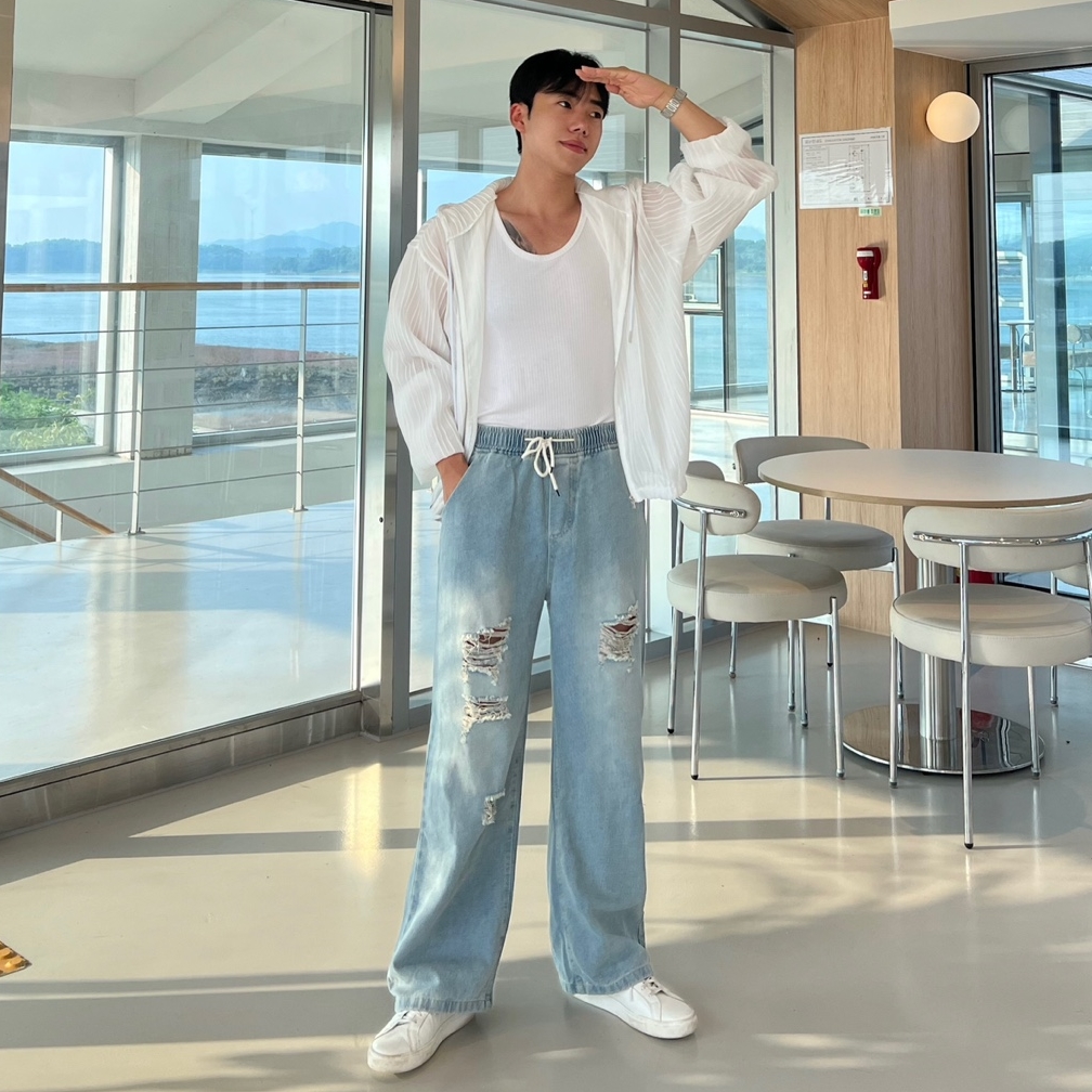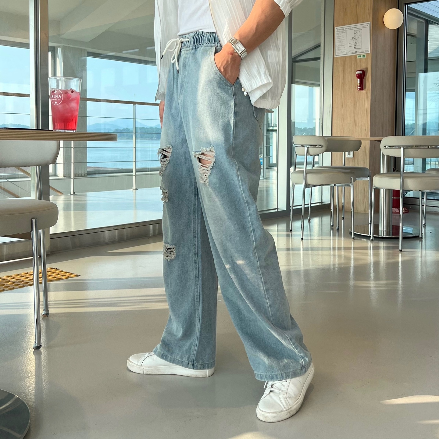 원스톤 밴딩 데미지 찢청 데님 팬츠 (1color)BESTMDHOT