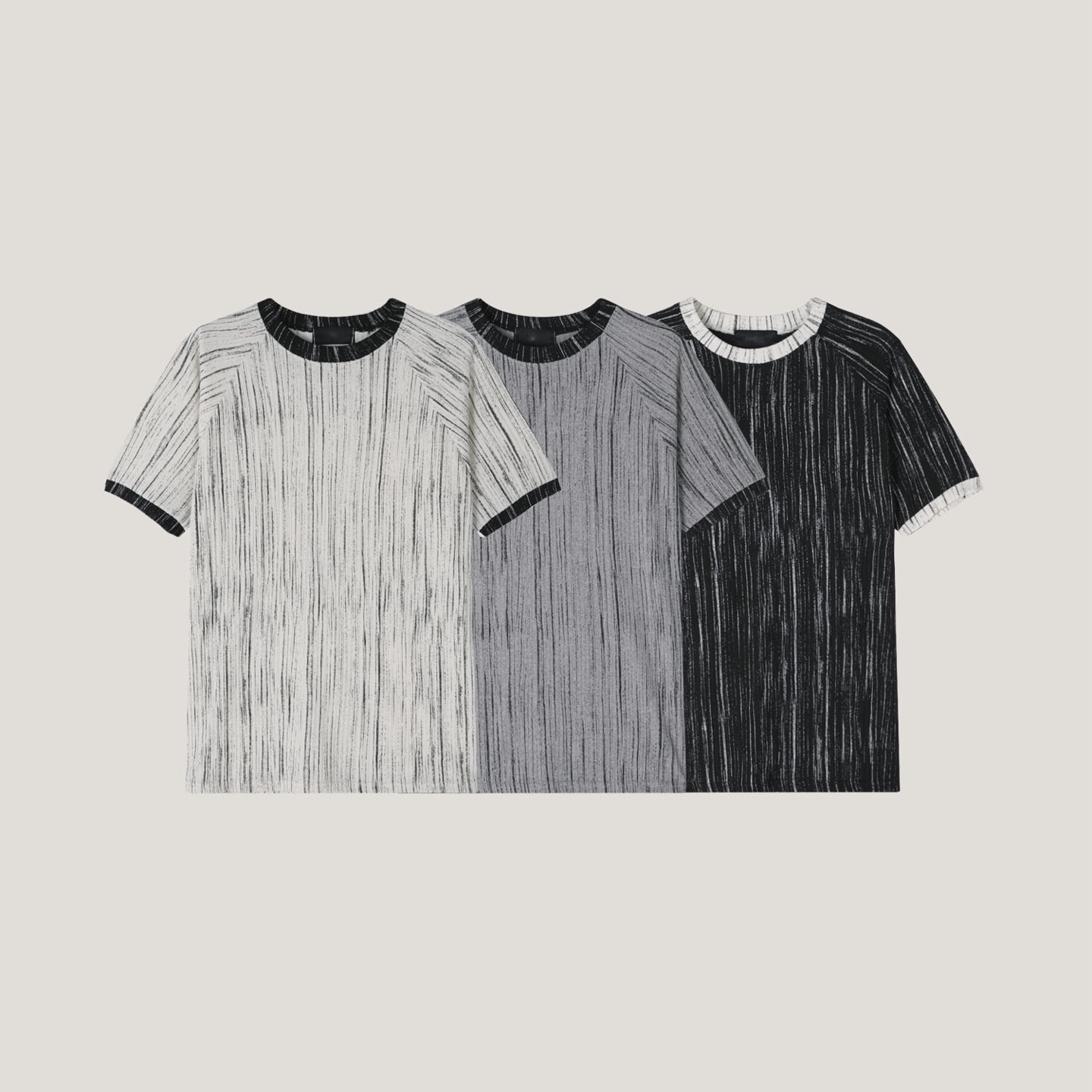 - 넥 라인과 소매단에 배색을 더한 링거 스타일로, 기본 티셔츠보다 훨씬 트렌디하고 유니크한 인상을 주는 디자인