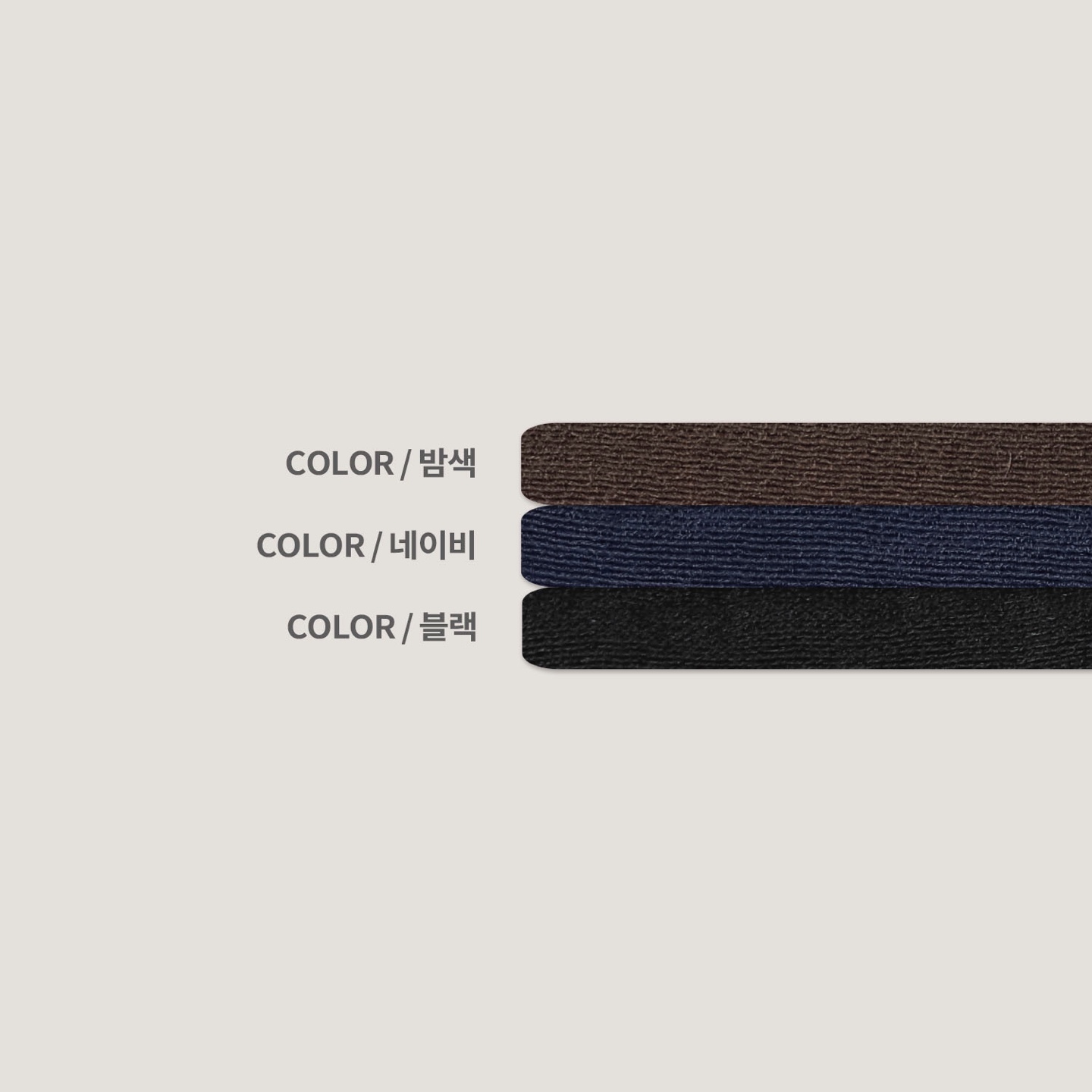 - 블랙, 네이비, 밤색 세 가지 컬러로 구성되어, 차분하면서도 감도 높은 스타일링이 가능