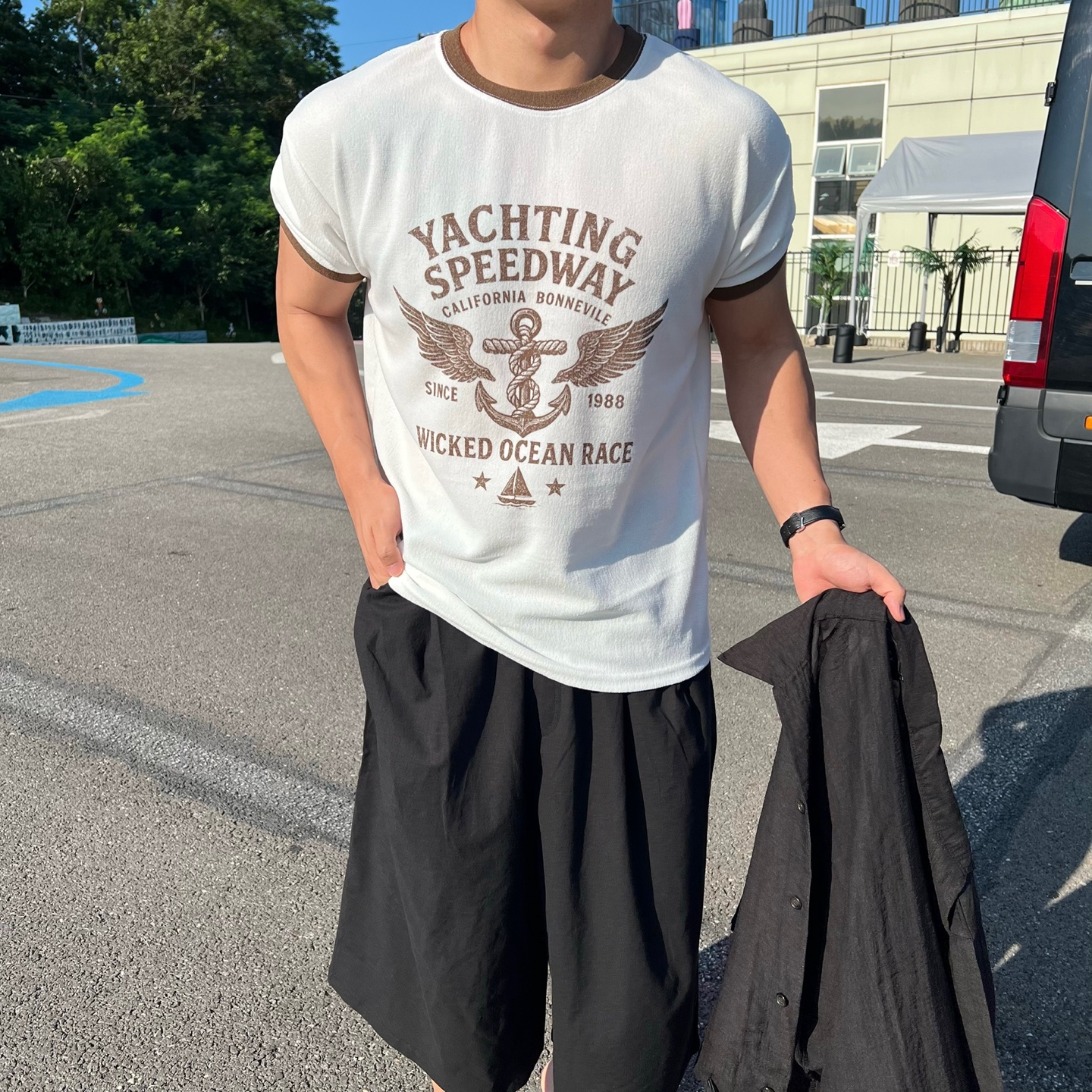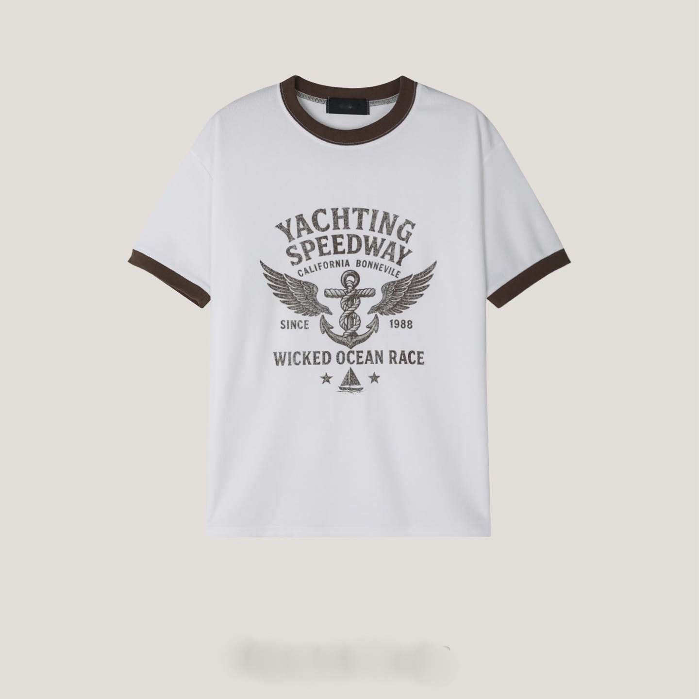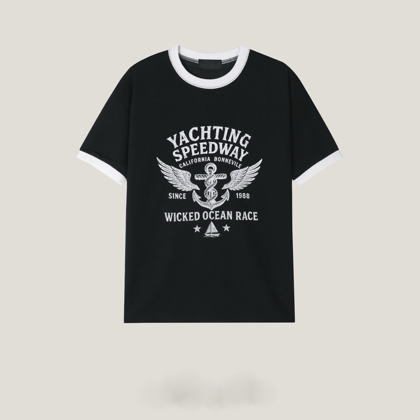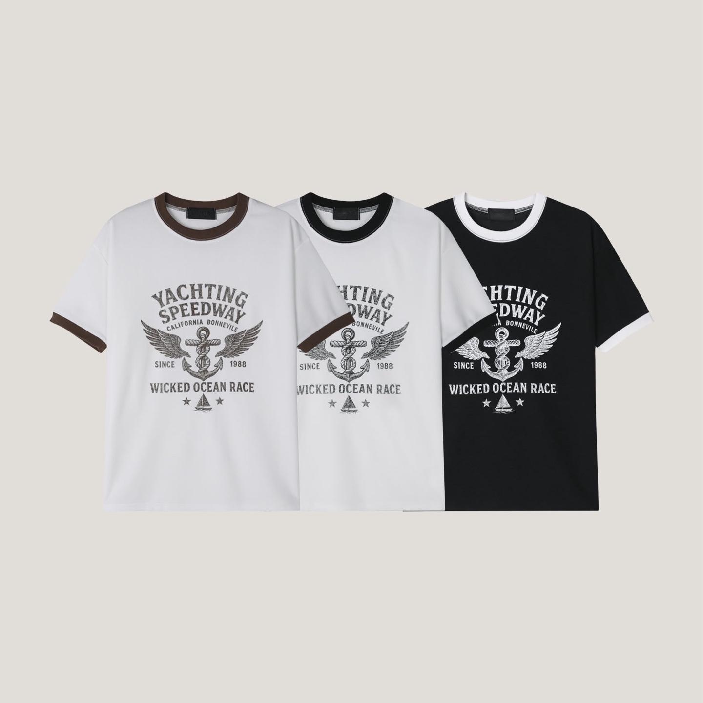 - 중앙에 자리잡은 날개 앵커 프린팅과 텍스트 그래픽이 존재감을 더하며, 마치 브랜드 로고 같은 프리미엄 스타일링 완성