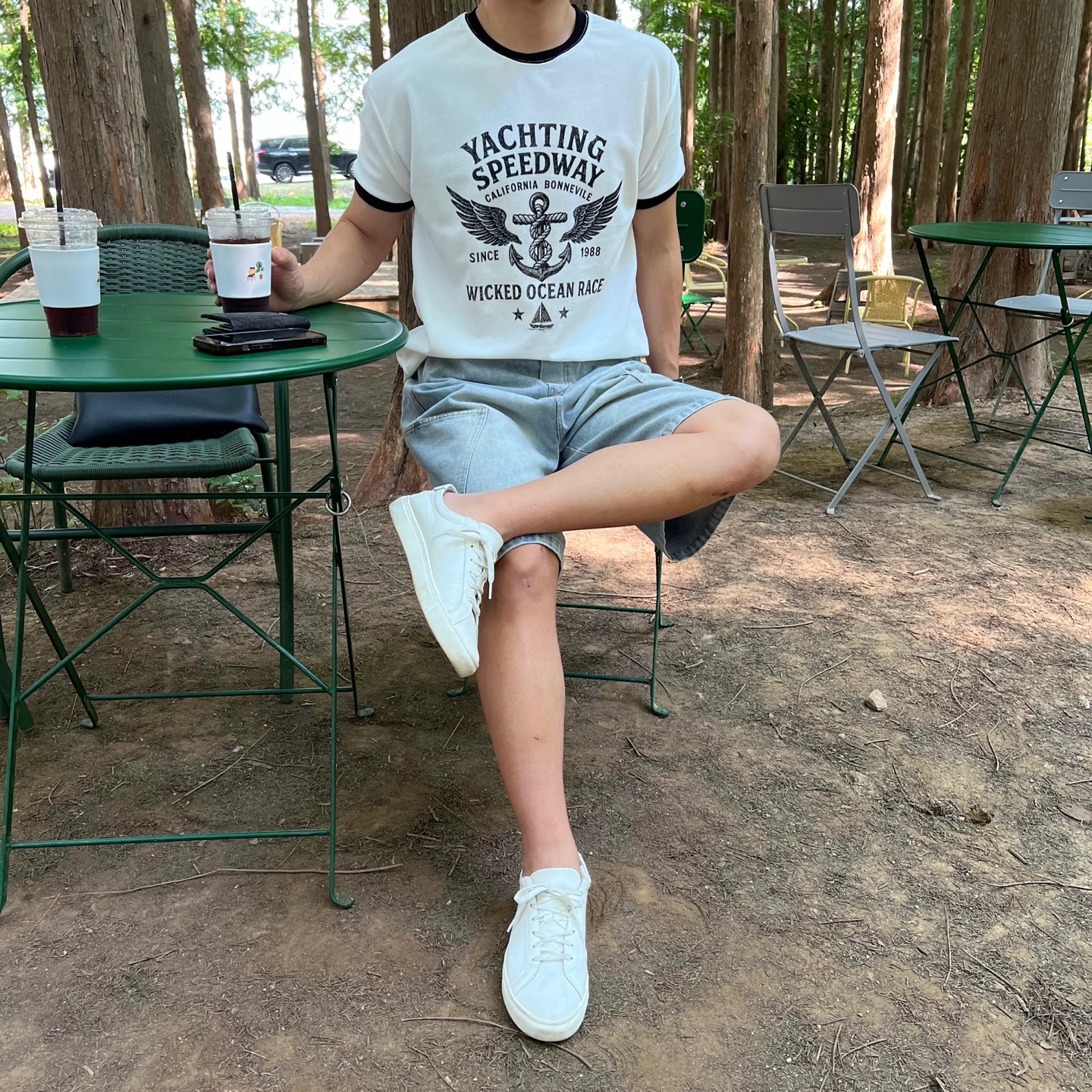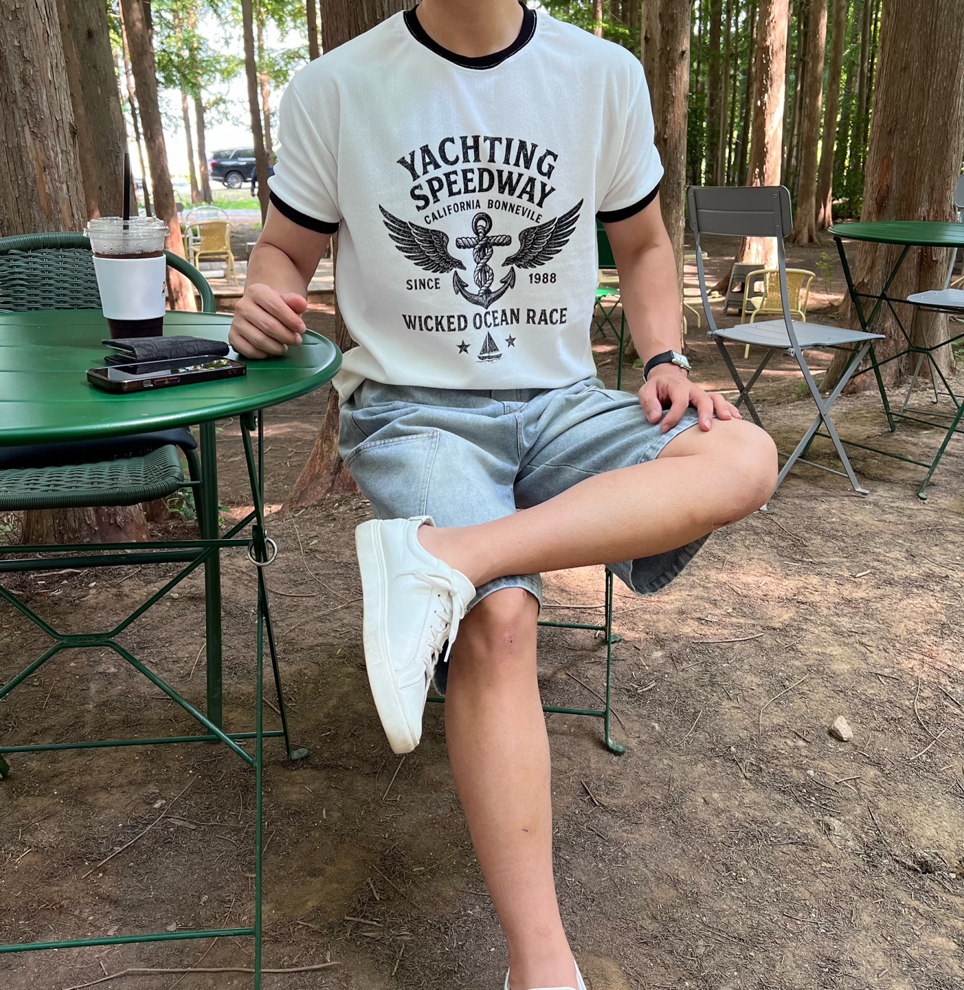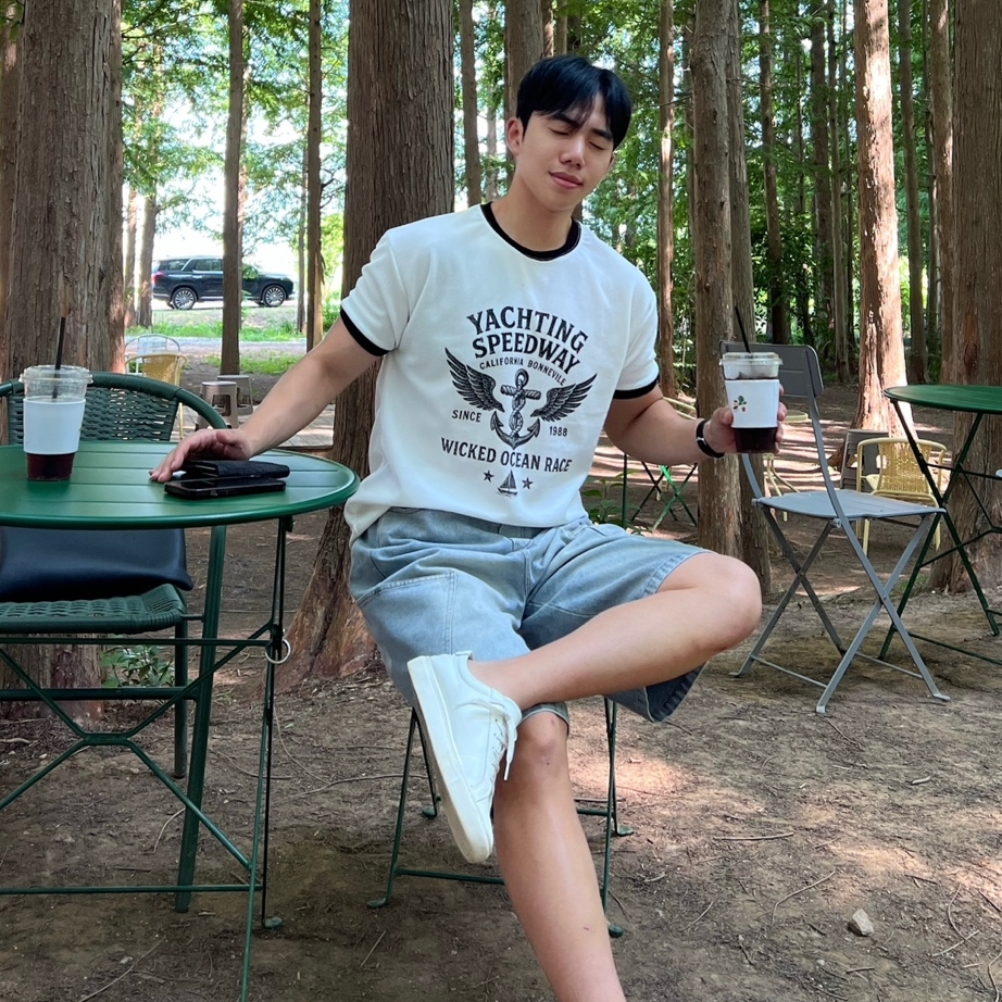 - 중앙에 자리잡은 날개 앵커 프린팅과 텍스트 그래픽이 존재감을 더하며, 마치 브랜드 로고 같은 프리미엄 스타일링 완성