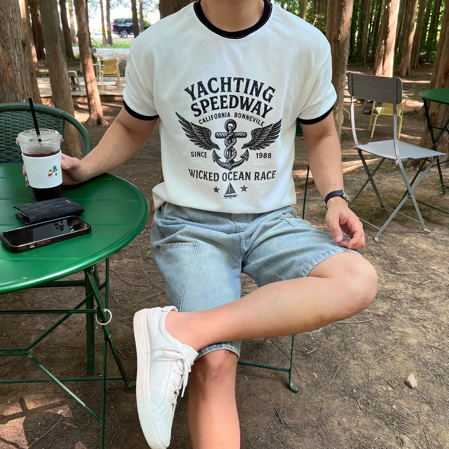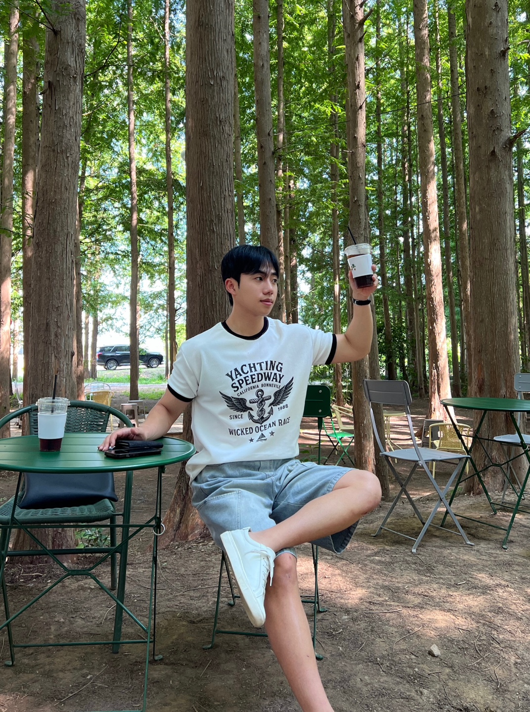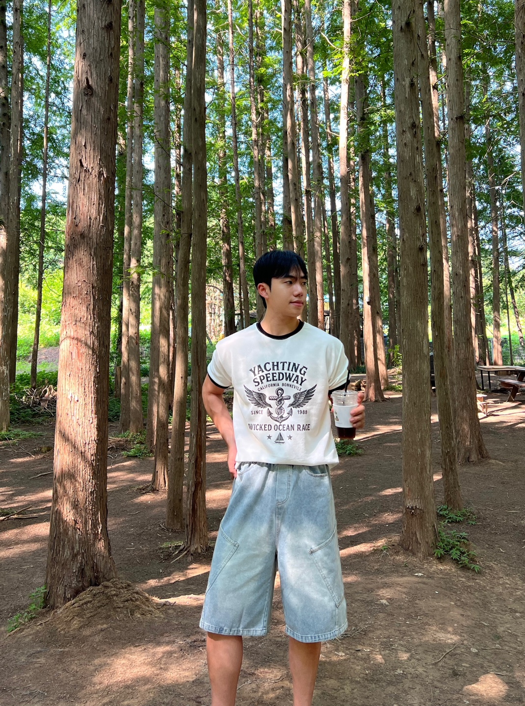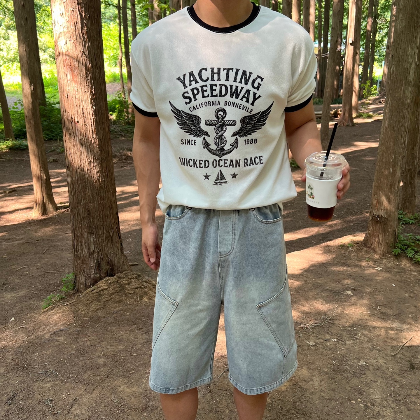 - 중앙에 자리잡은 날개 앵커 프린팅과 텍스트 그래픽이 존재감을 더하며, 마치 브랜드 로고 같은 프리미엄 스타일링 완성