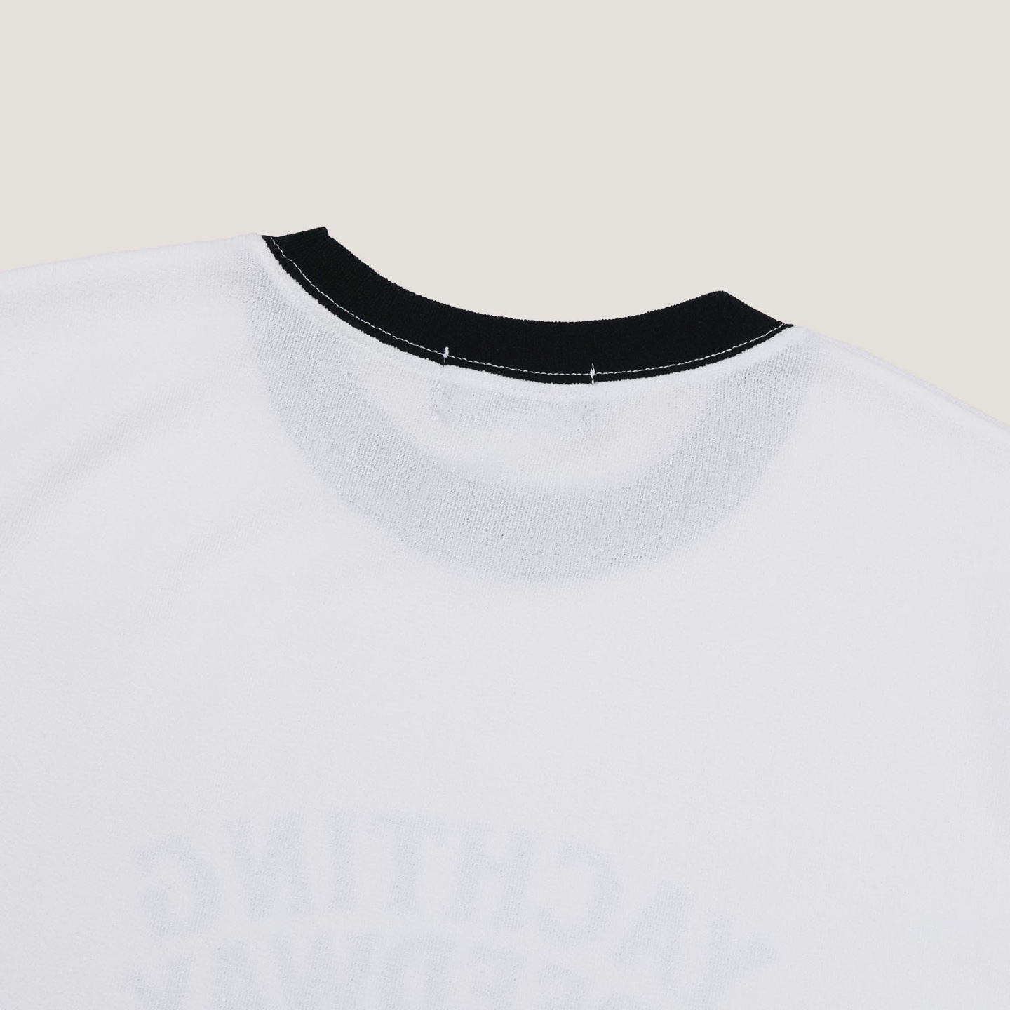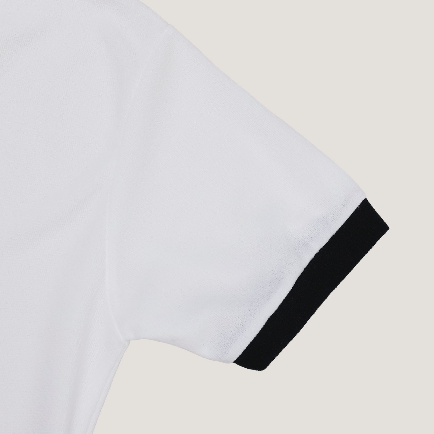 - 넥라인과 소매단에 더해진 컬러 배색이 포인트인 클래식 링거 스타일로, 전체적인 룩에 레트로 무드 선사