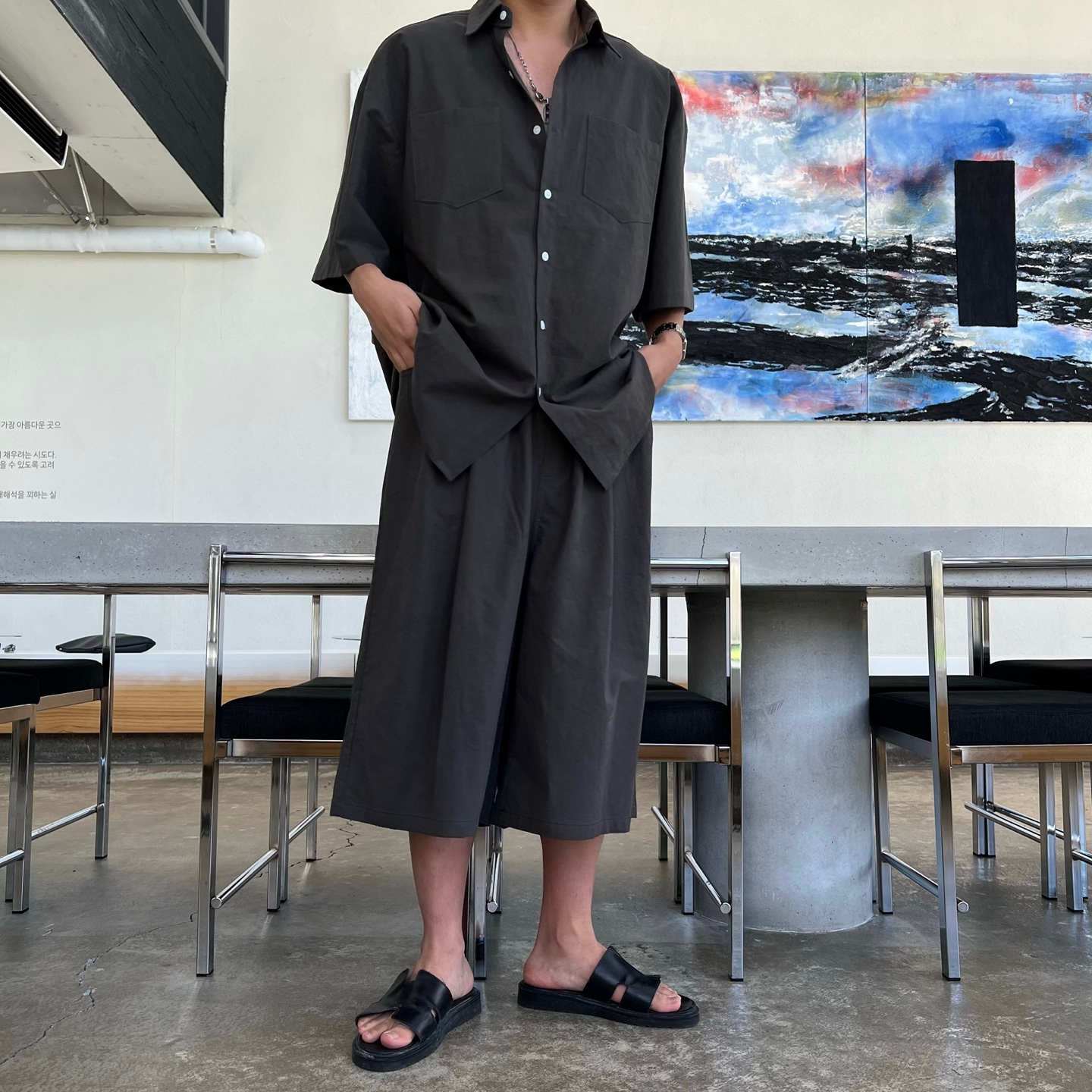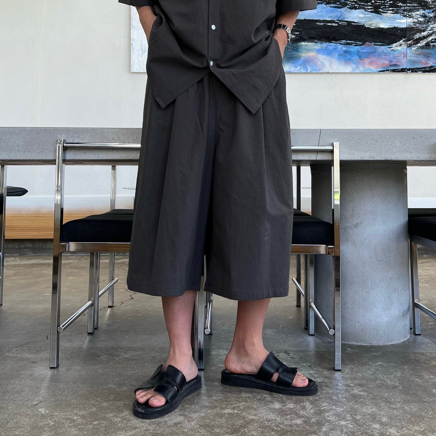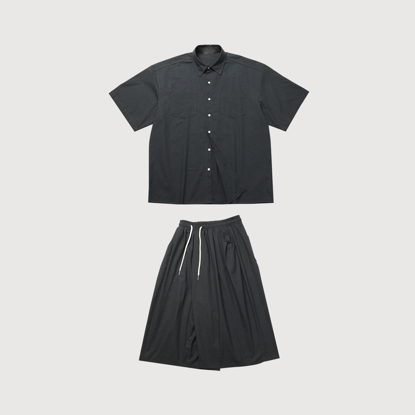 - 와이드 숏팬츠 구성으로 무릎을 덮는 기장감과 와이드한 통으로 체형 보완과 편안한 착용감 제공