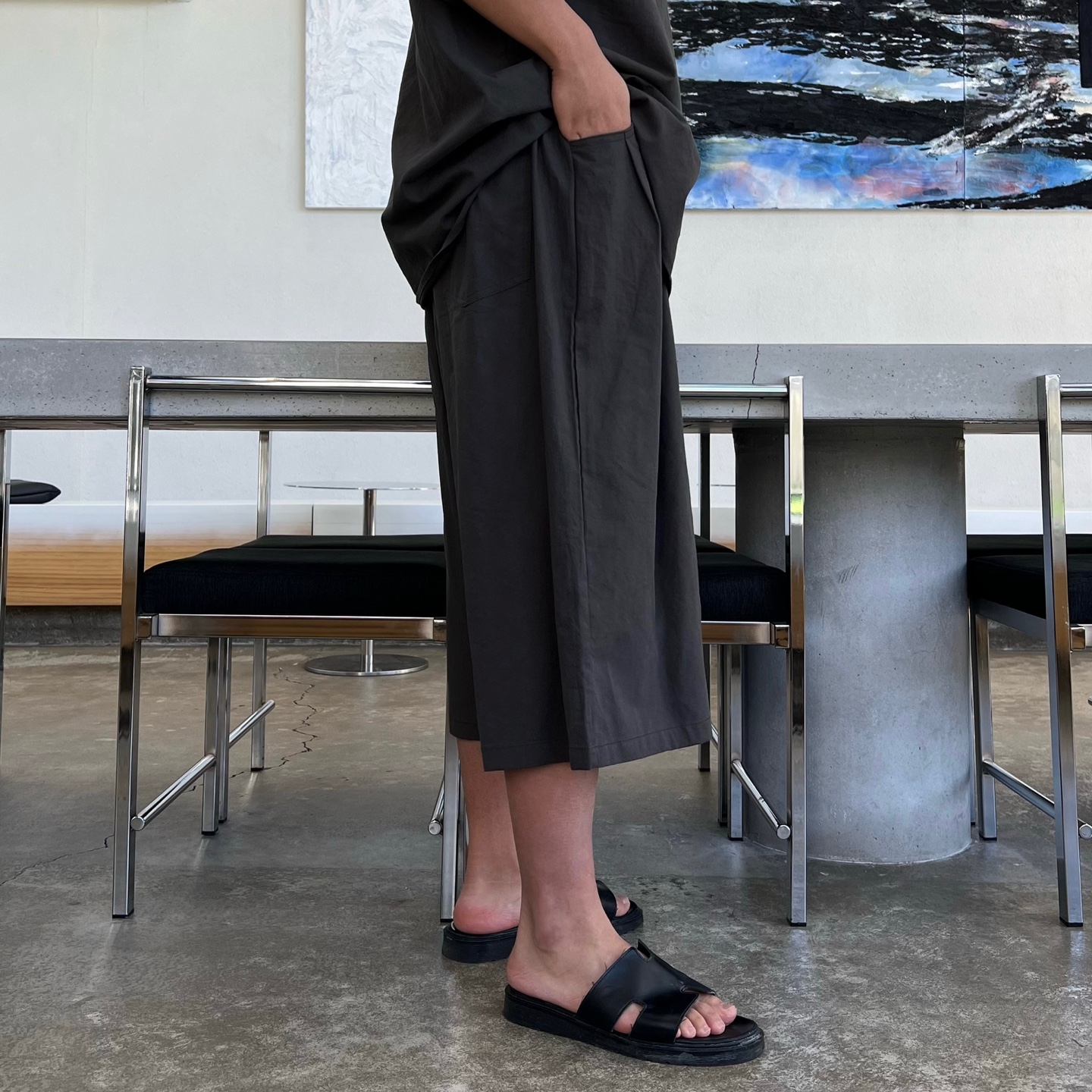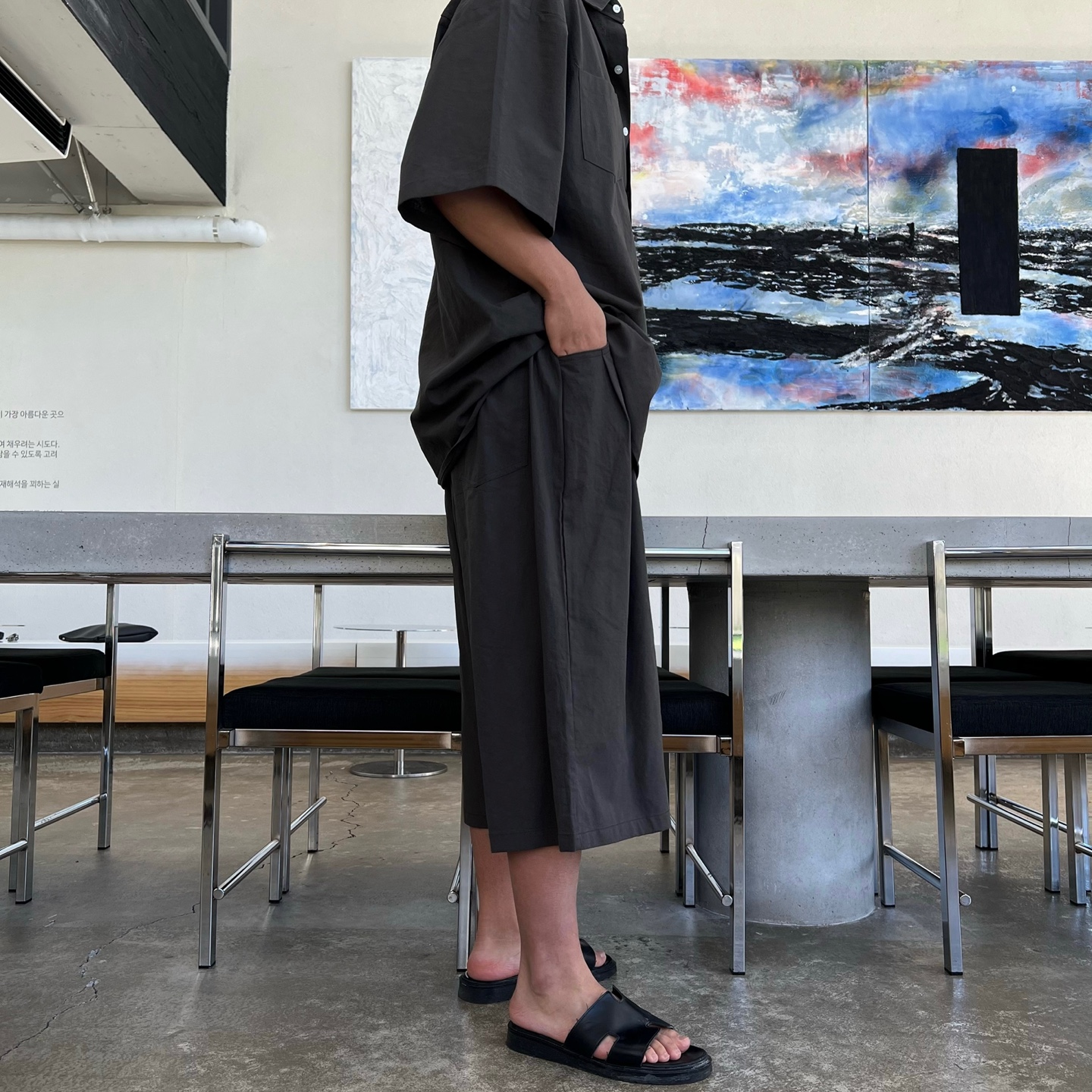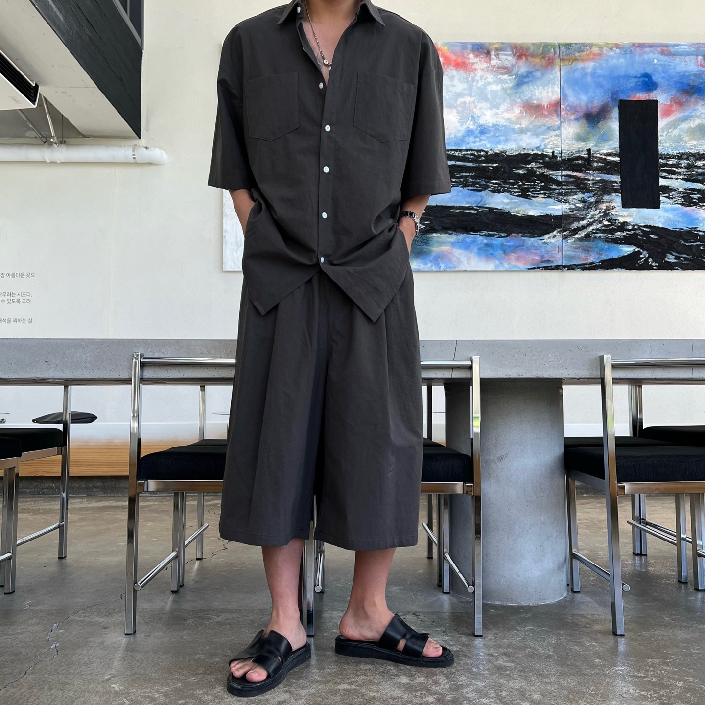 - 와이드 숏팬츠 구성으로 무릎을 덮는 기장감과 와이드한 통으로 체형 보완과 편안한 착용감 제공