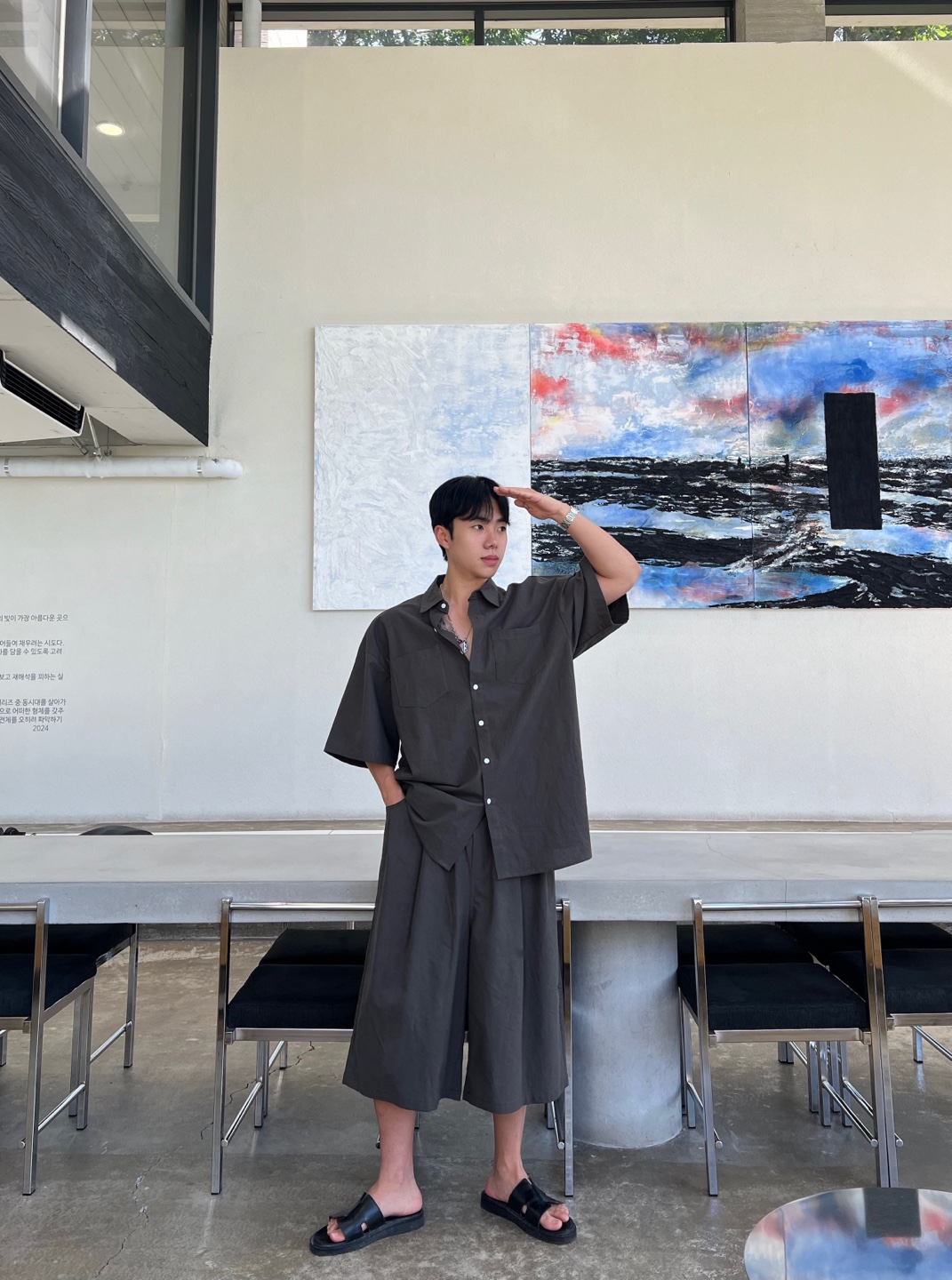 174cm 70kg / 셔츠,반바지 FREE 사이즈 착용