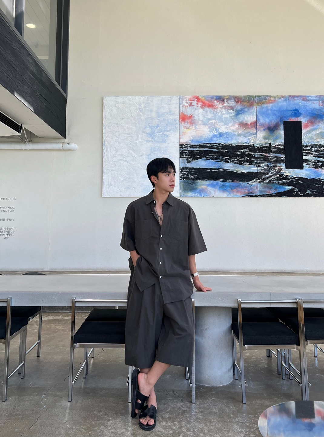 - 여유로운 실루엣으로 누구나 부담 없이 착용 가능하며 스타일리시한 무드 완성