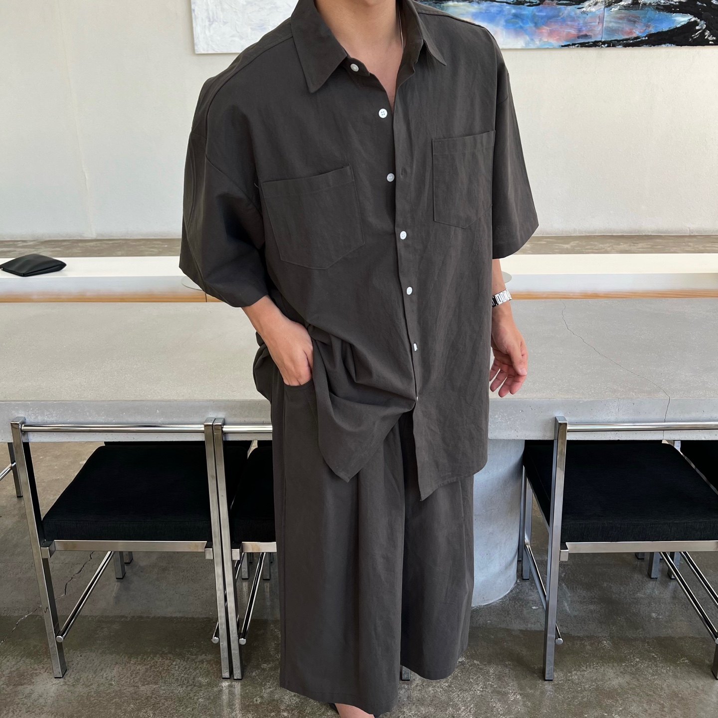 - 셔츠에 양쪽 가슴 포켓이 있어 실용성과 디자인 모두 만족