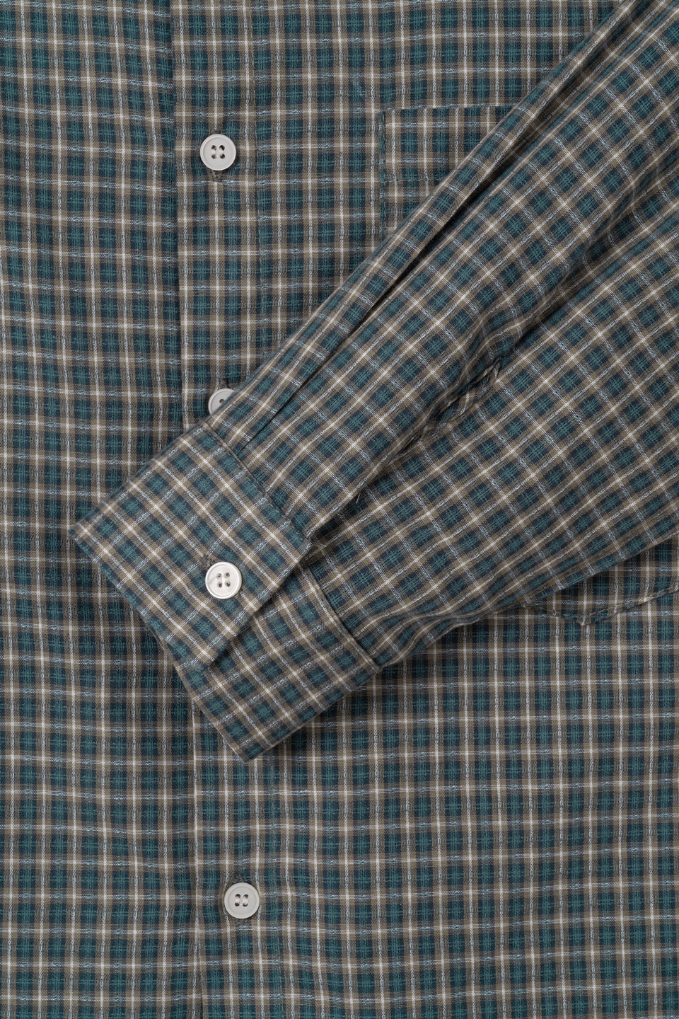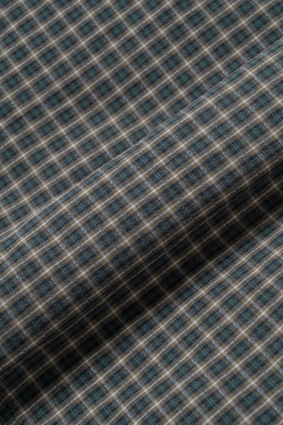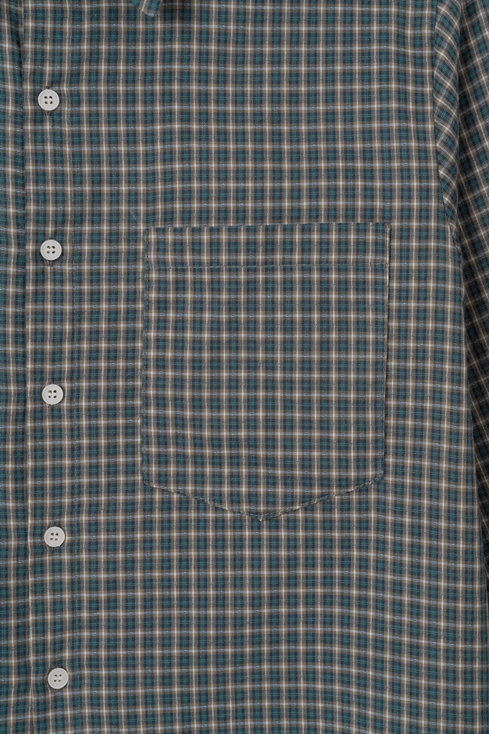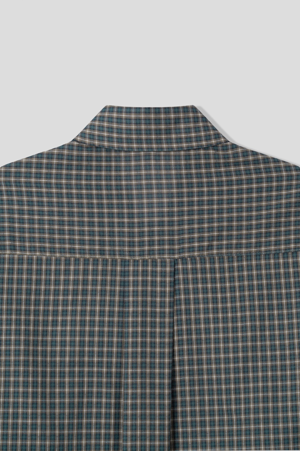 - 흔하지 않은 그린 계열 체크 패턴이 차분하면서도 감도 있는 룩을 연출해줌