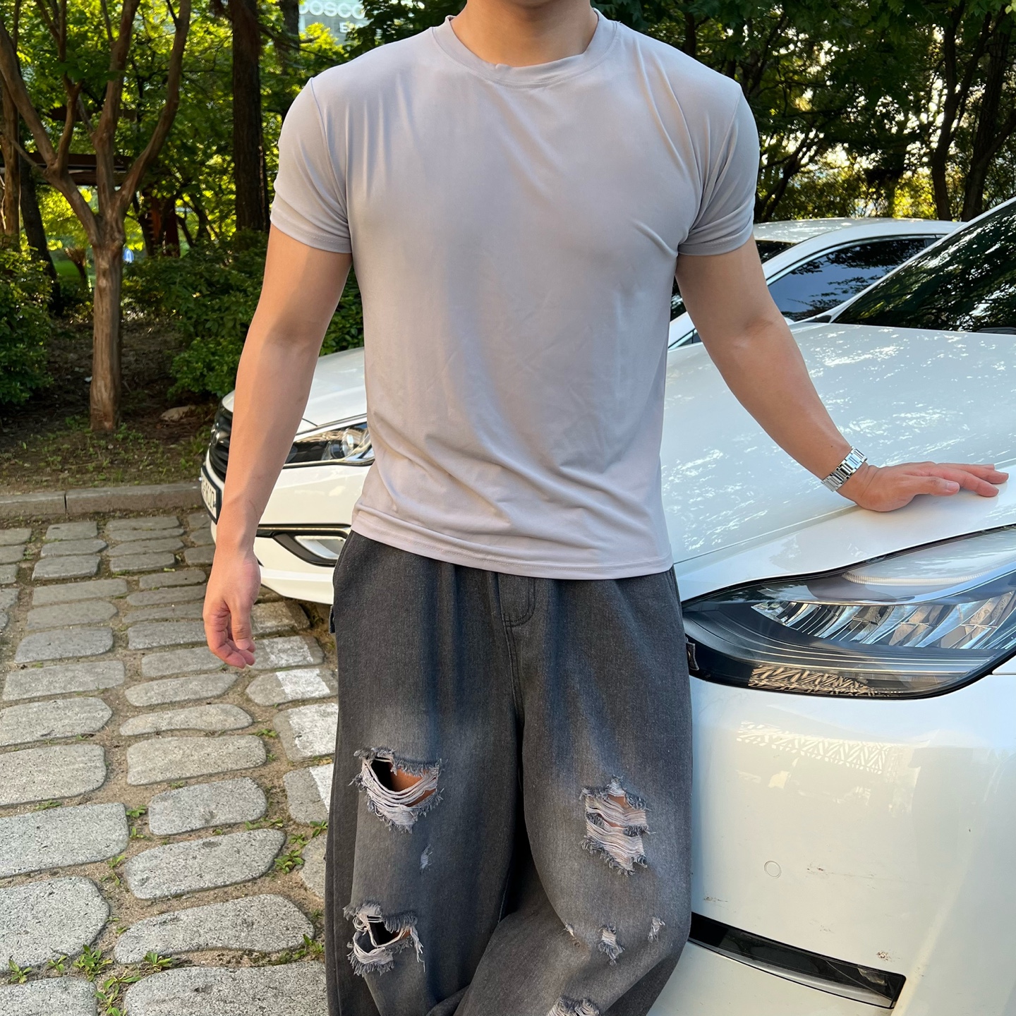 [1+1] 원스톤 세미 크롭 머슬핏 반팔 (2color)