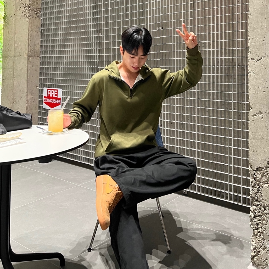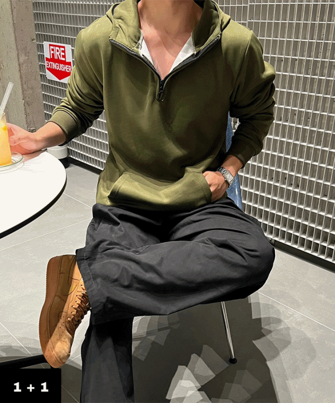 - 깔끔한 넥라인에 하프 반집업 디테일로 캐주얼하면서도 깔끔한 포인트 선사