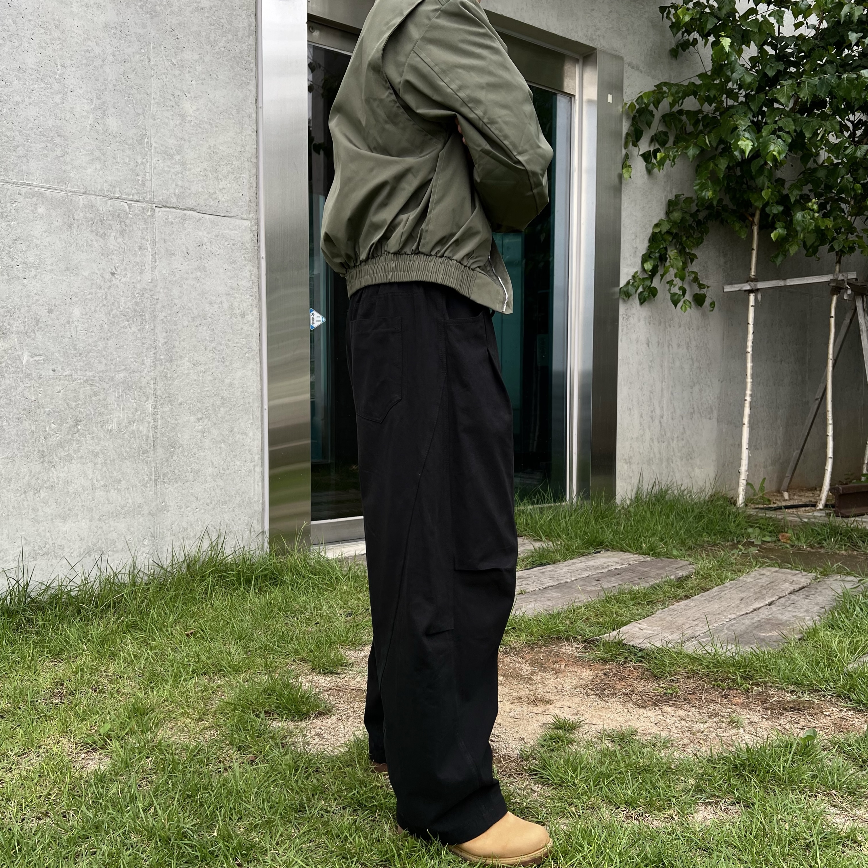 - 허벅지 핀턱 라인과 깔끔한 주름 디테일이 더해져 다리가 길어 보이고 세련된 핏을 연출