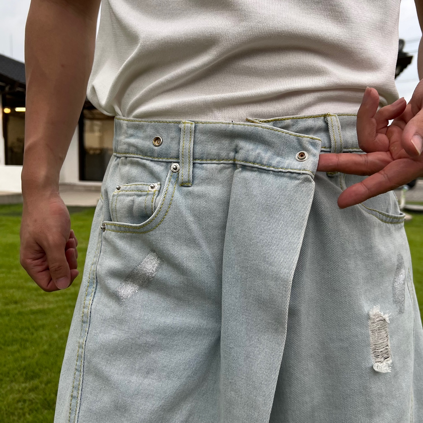 - 자연스러운 컷팅 & 해짐 디테일로 스트릿 감성 UP, 유니크한 포인트 제공