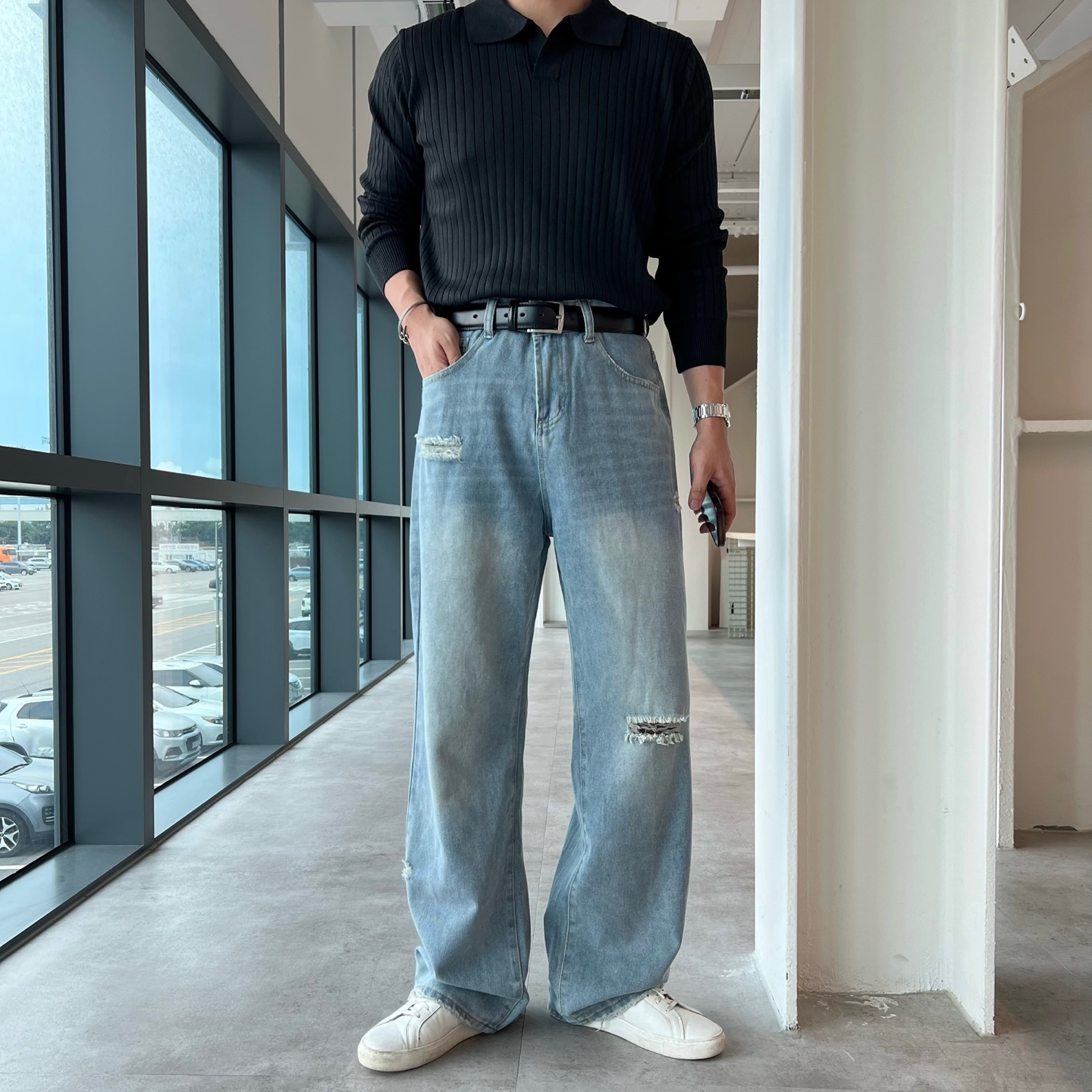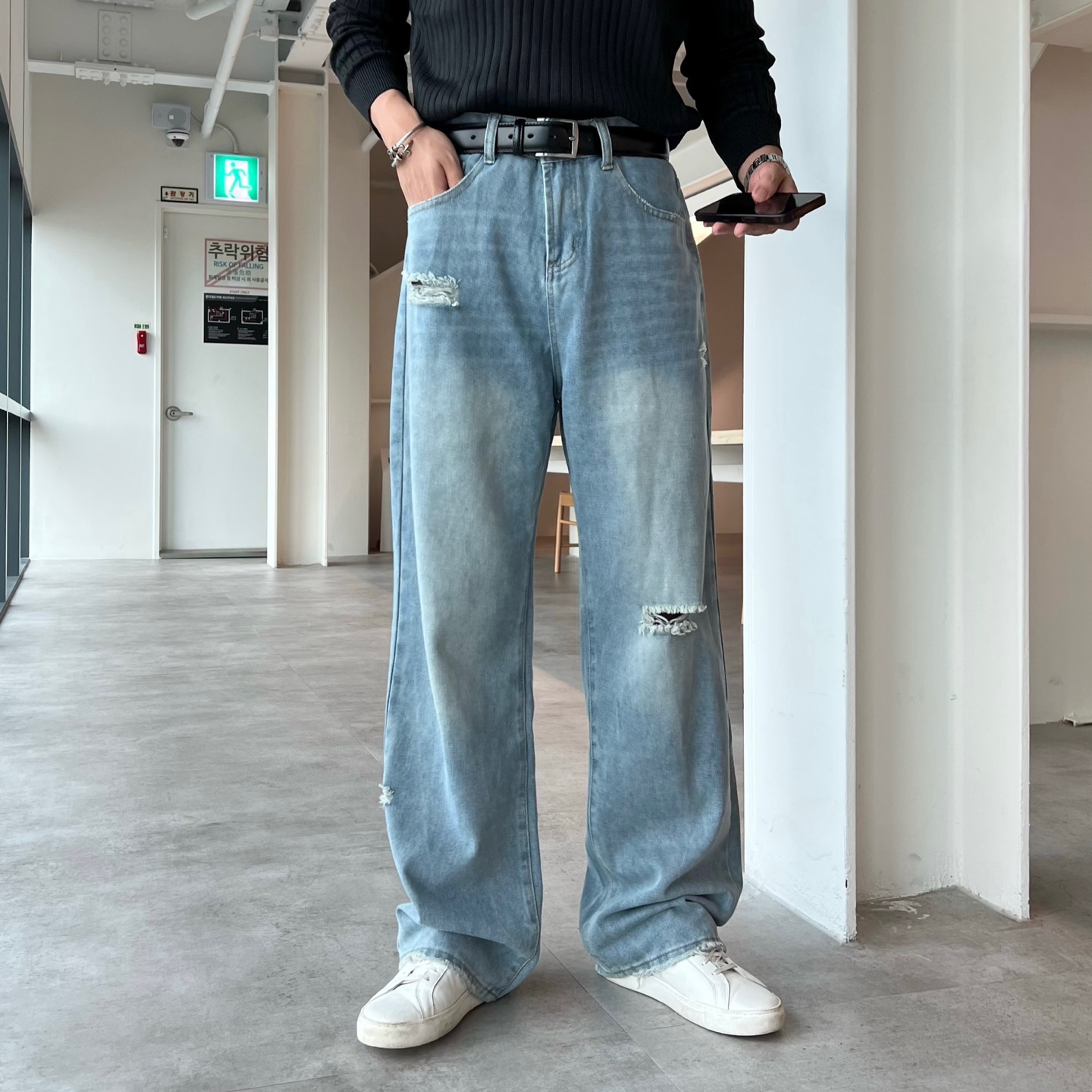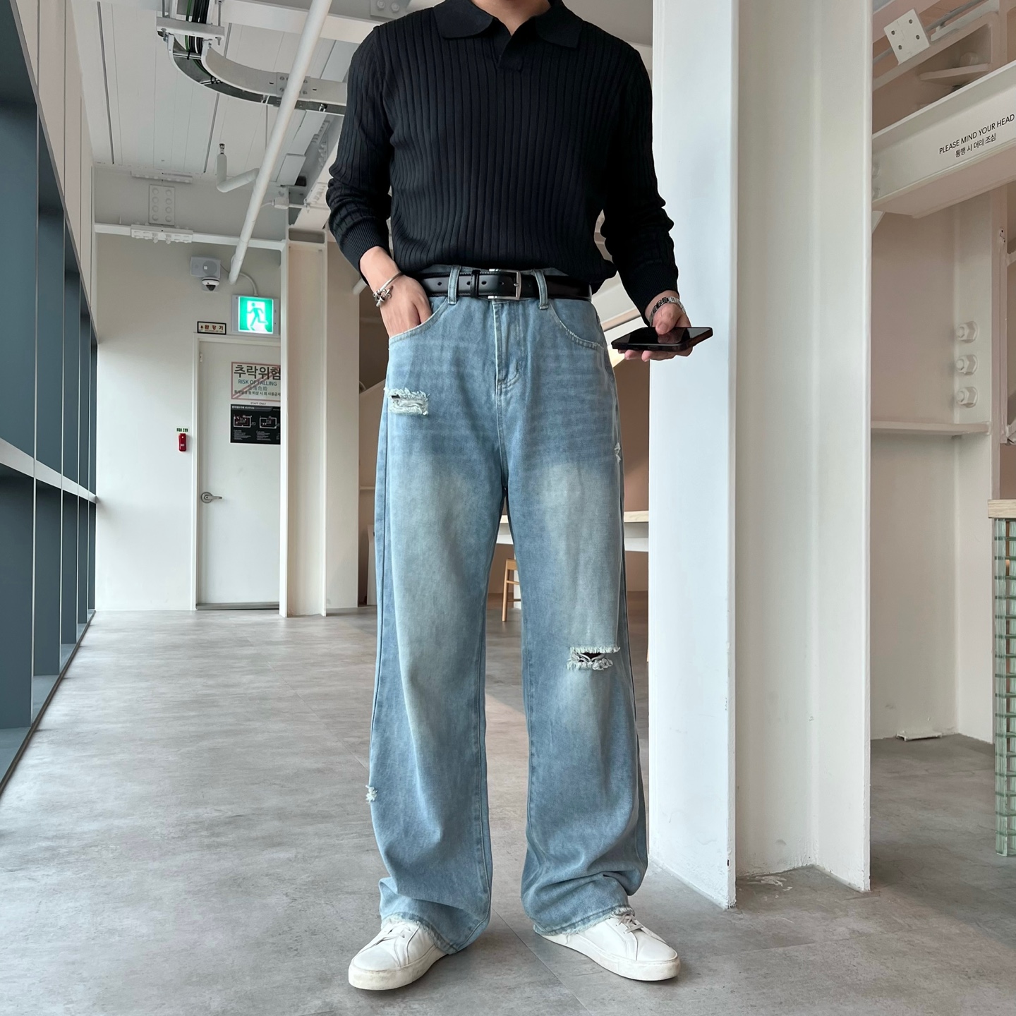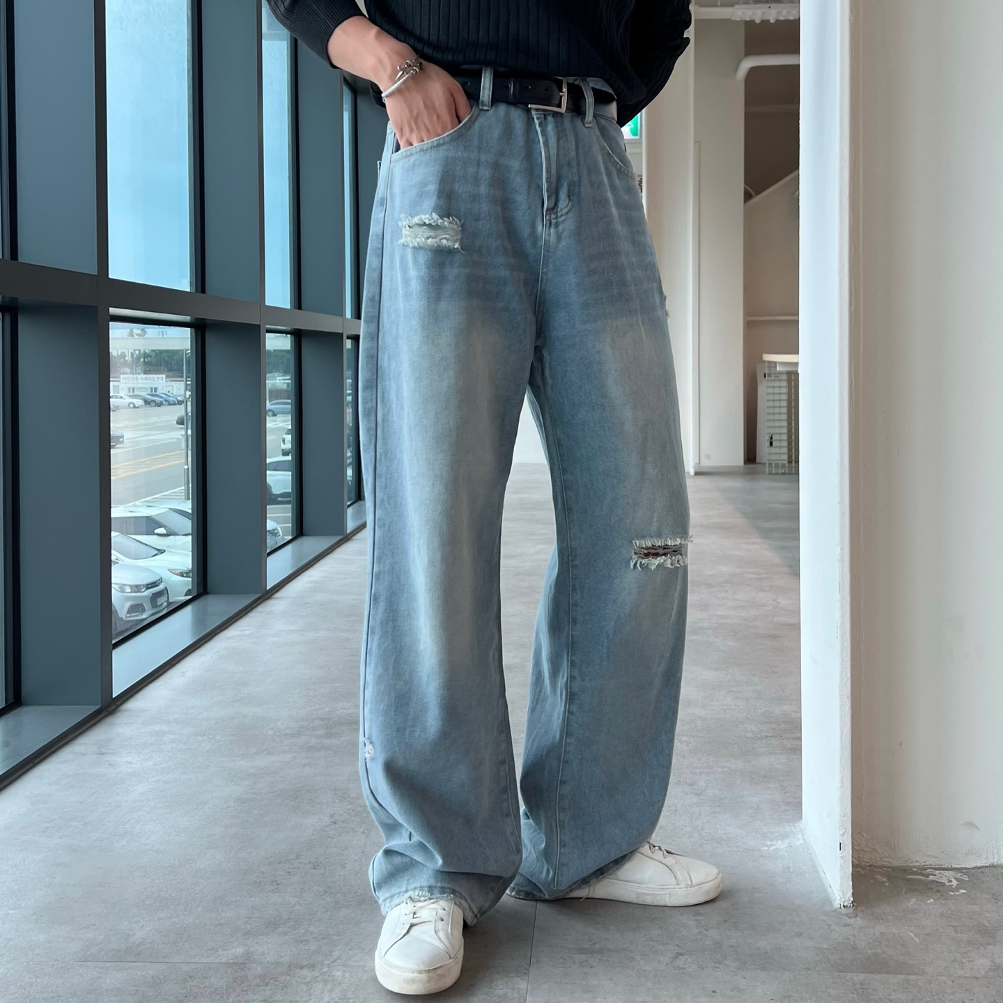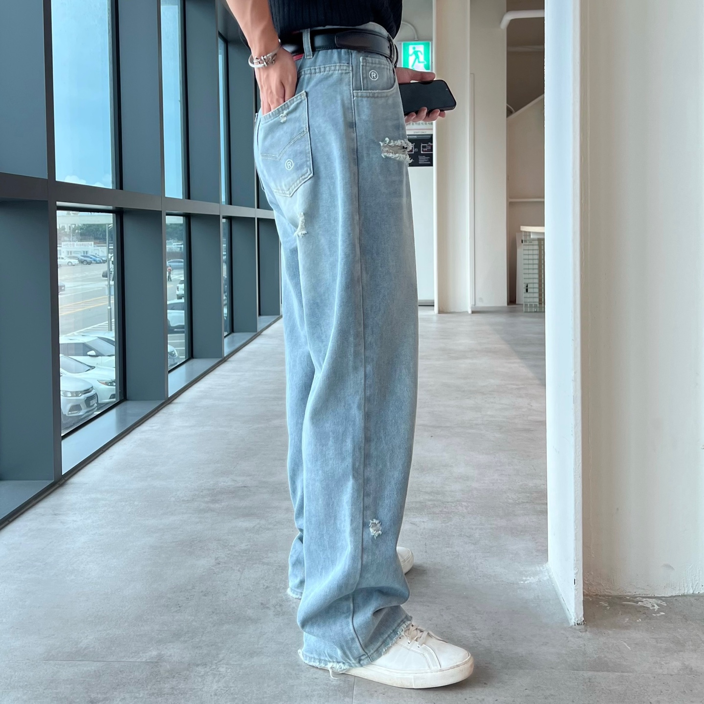 - 스트릿 감성 가득한 컷오프 밑단 포인트