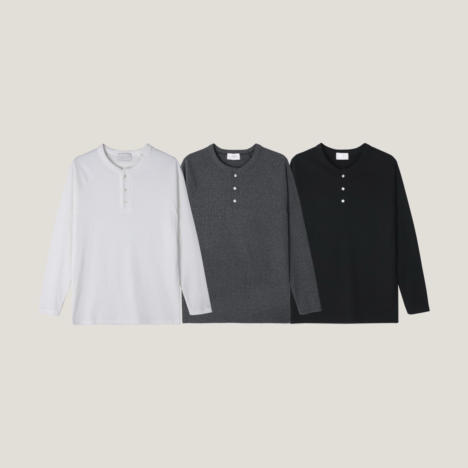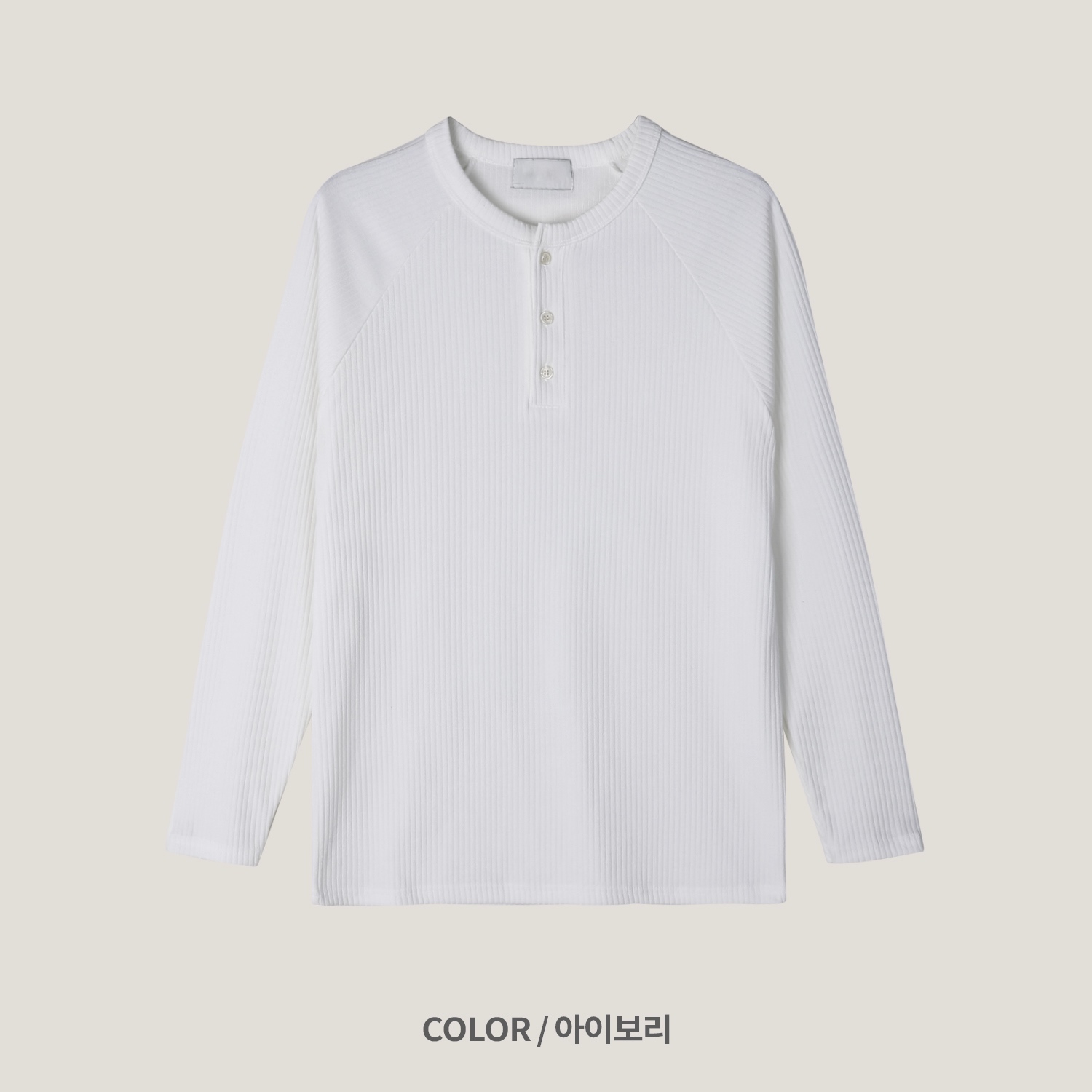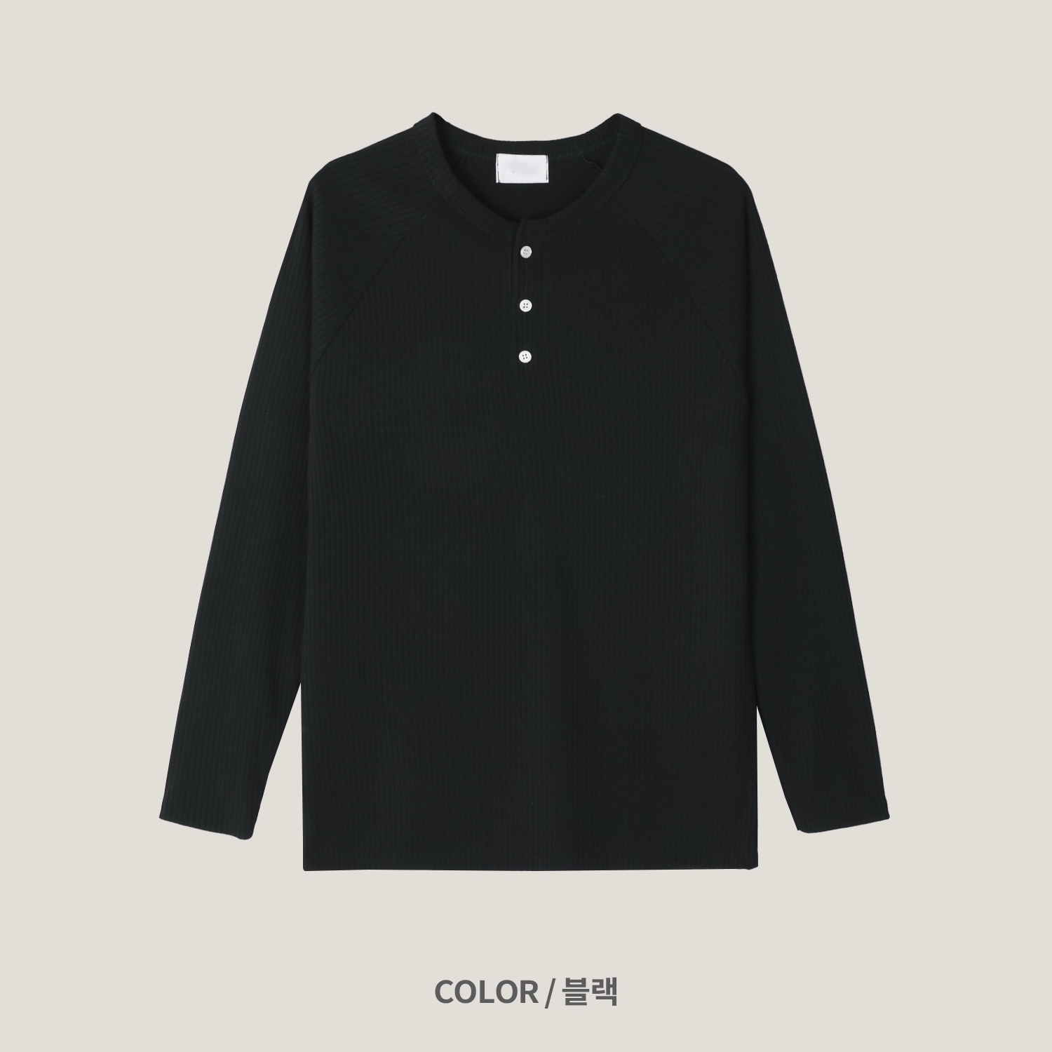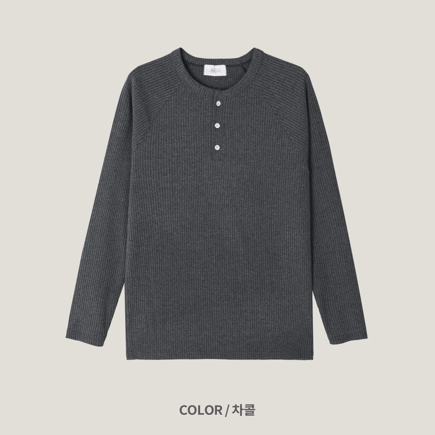 - 헨리넥 버튼 디테일로 베이직한 무드에 감각적인 포인트 더함