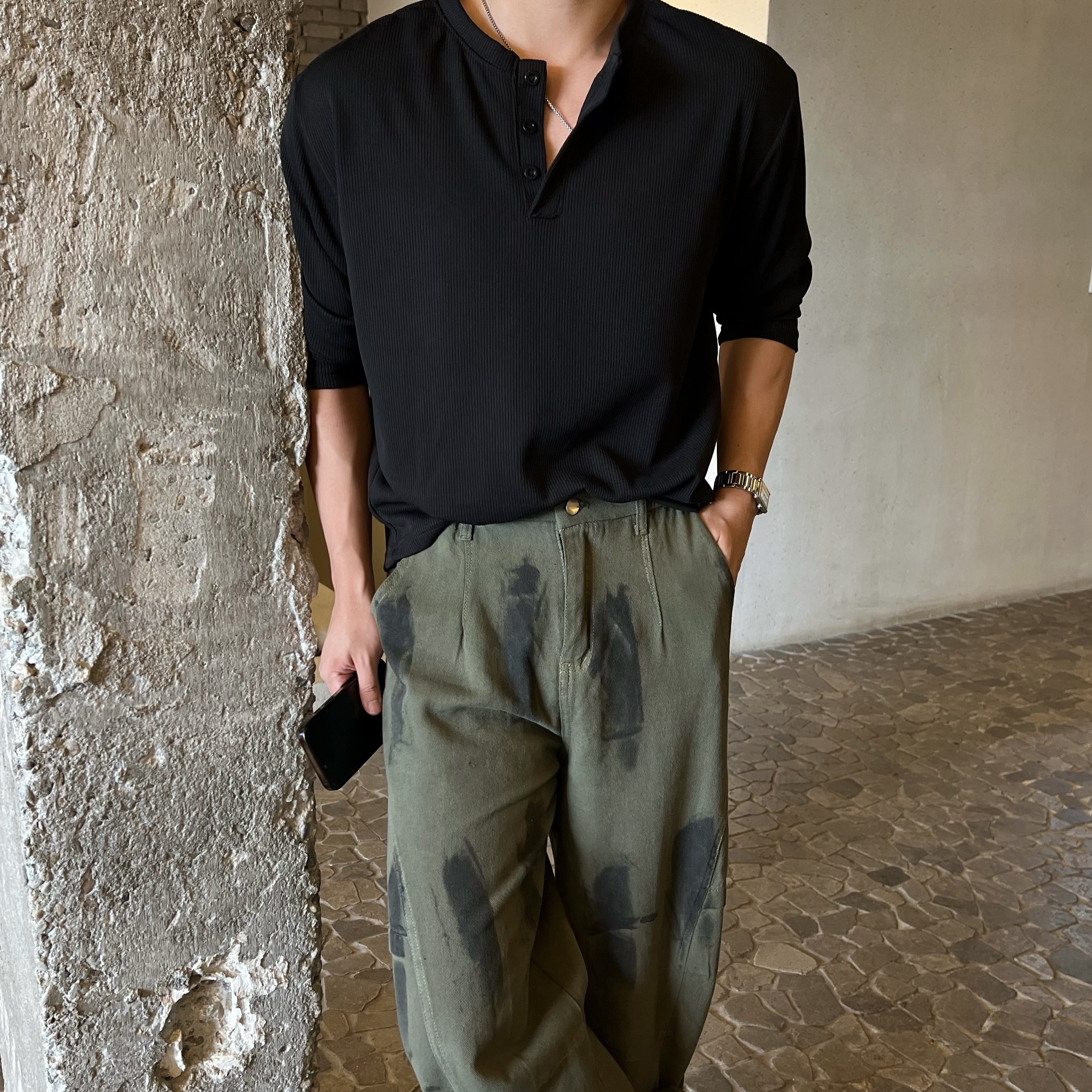 - 페인트처럼 자연스러운 블랙 워싱이 들어가 개성 있는 무드를 완성