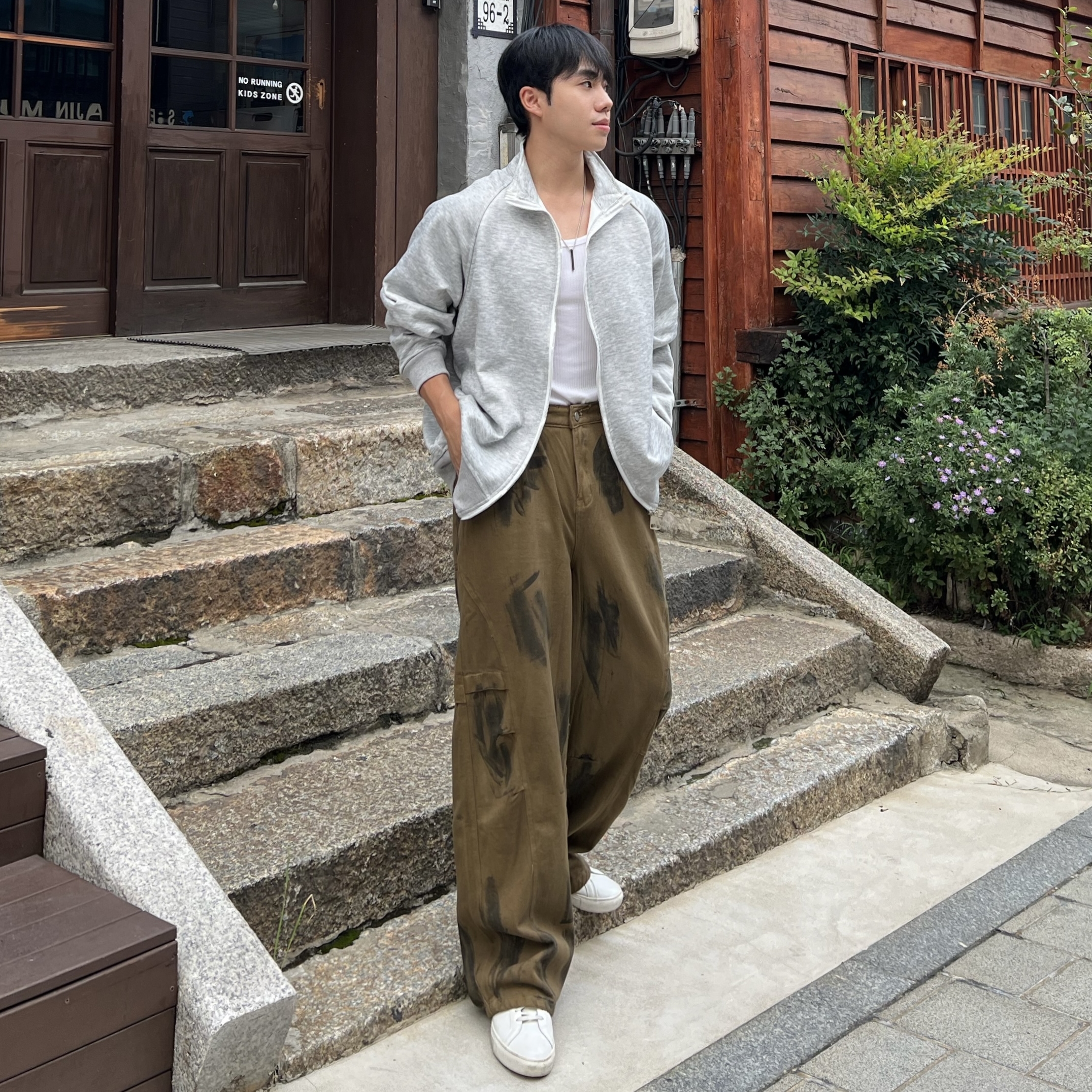 - 여유 있는 와이드핏으로 트렌디하면서도 체형 보완 효과
