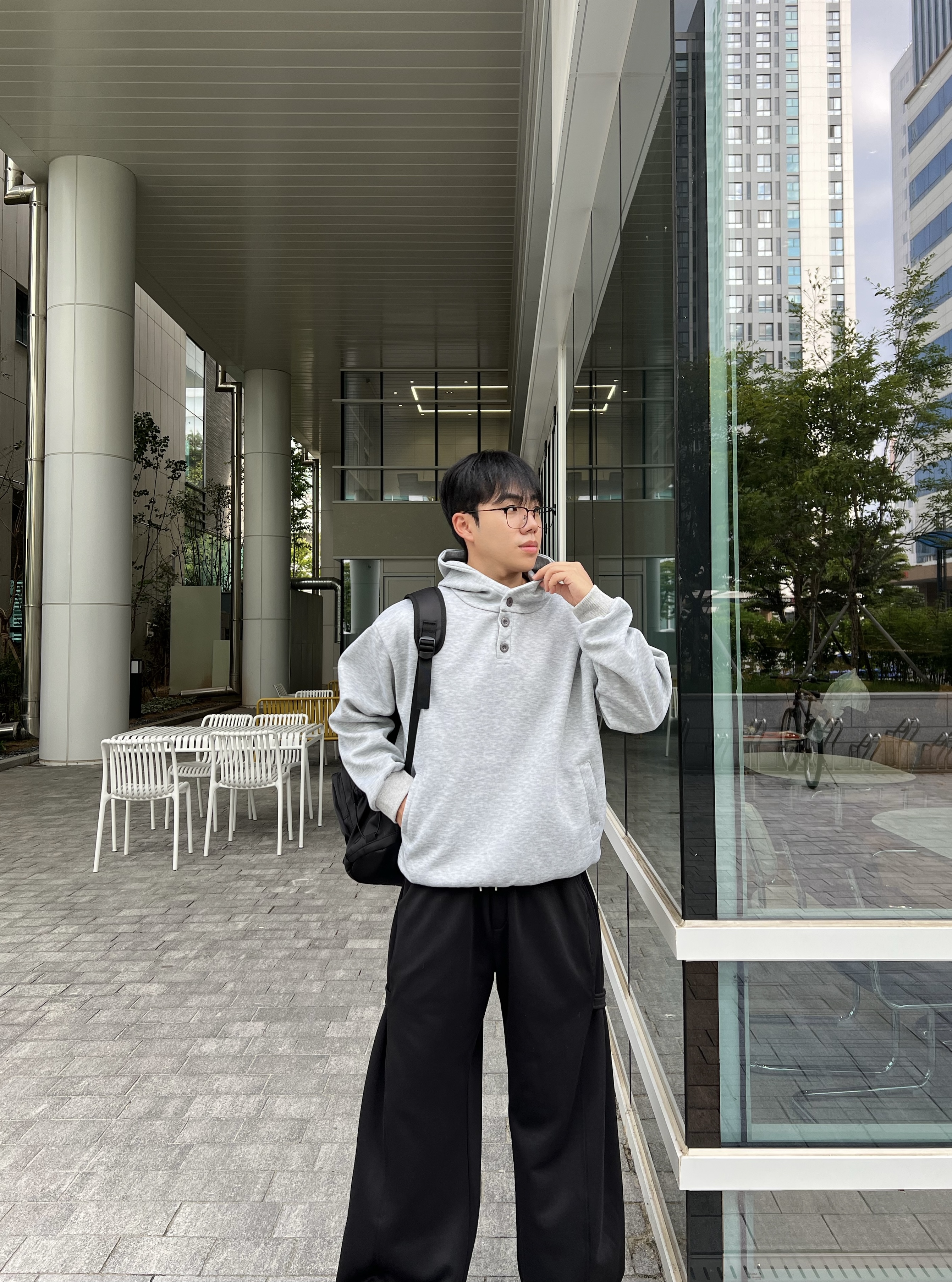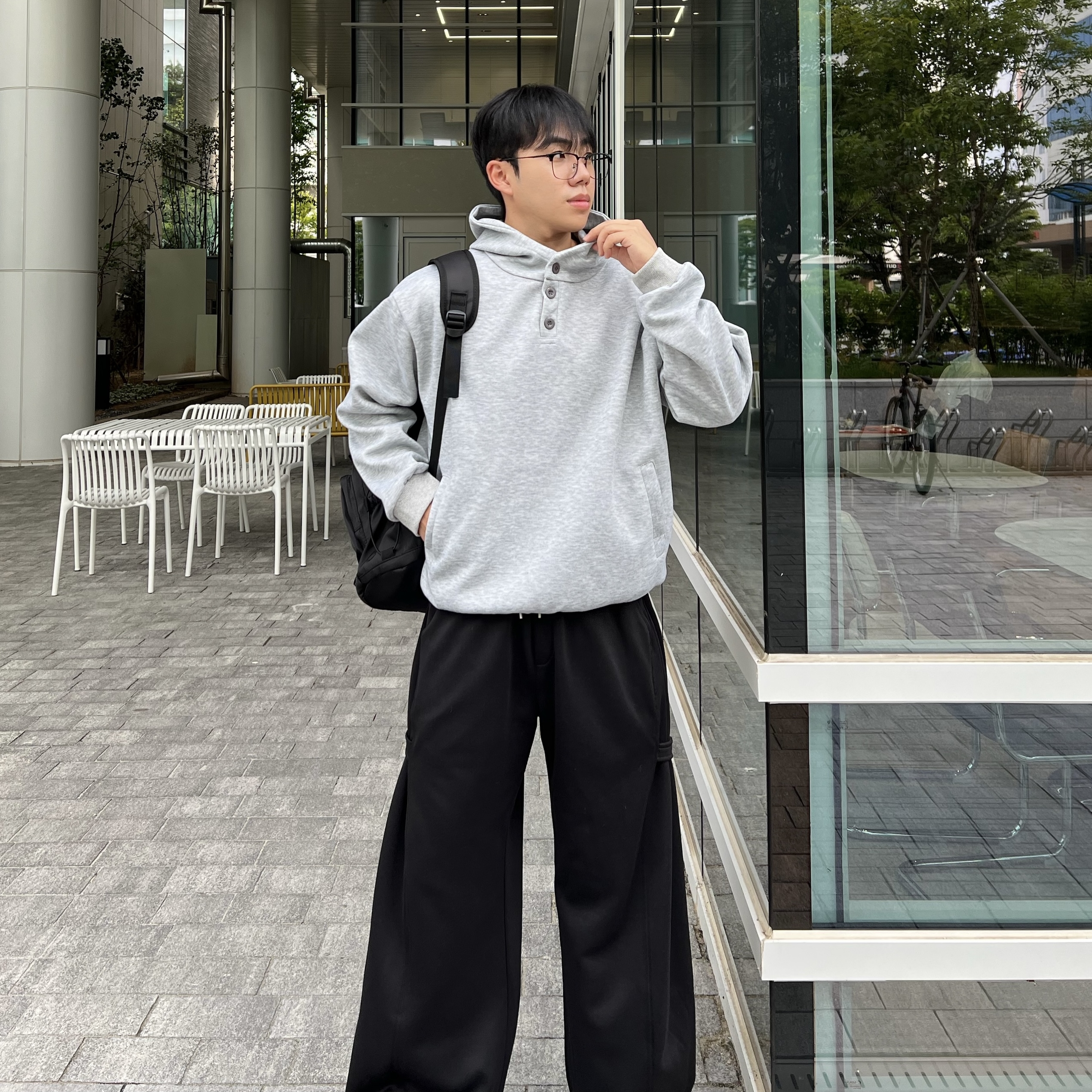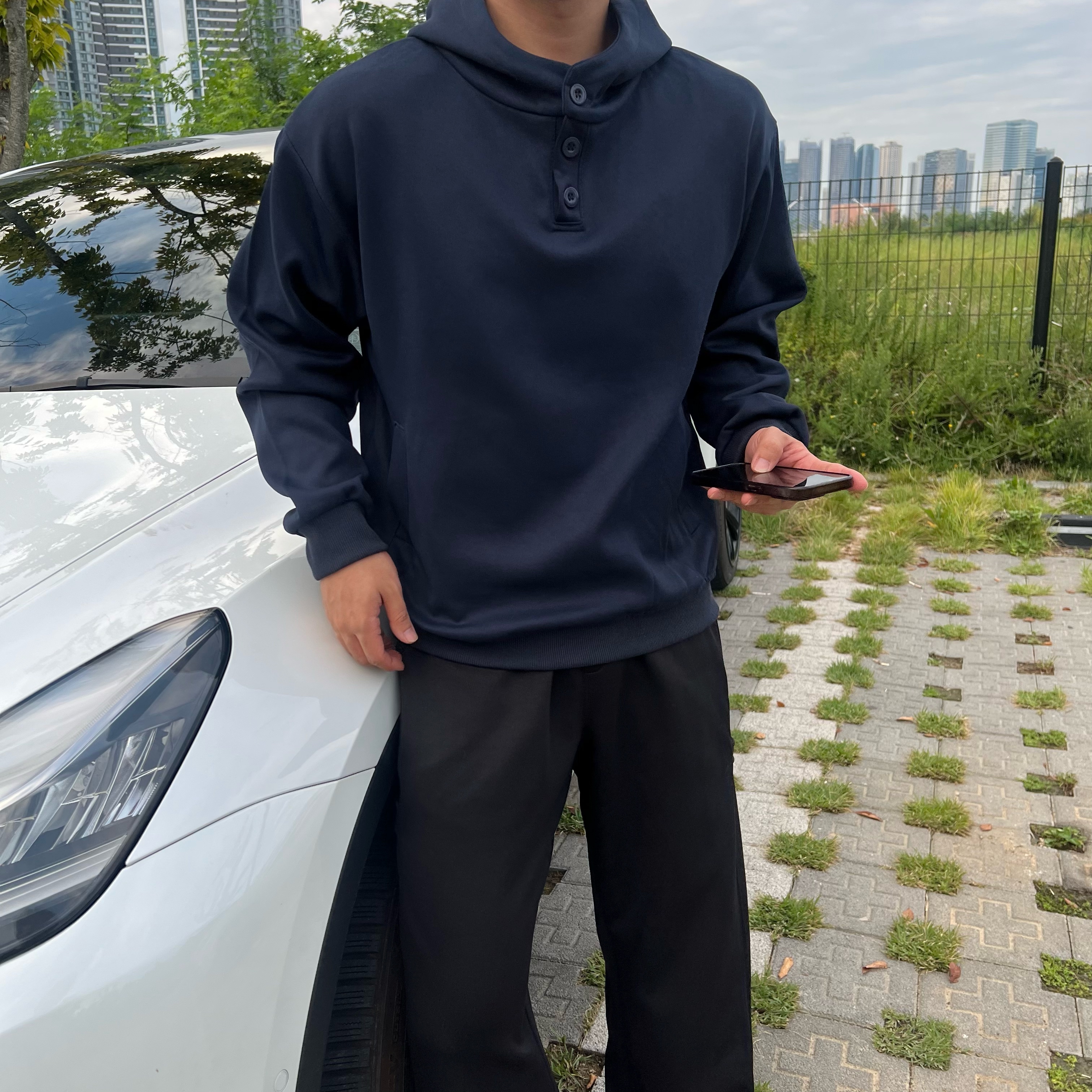 - 기본 후드와 차별화된 넥라인 버튼 클로징 디테일로 포인트 업