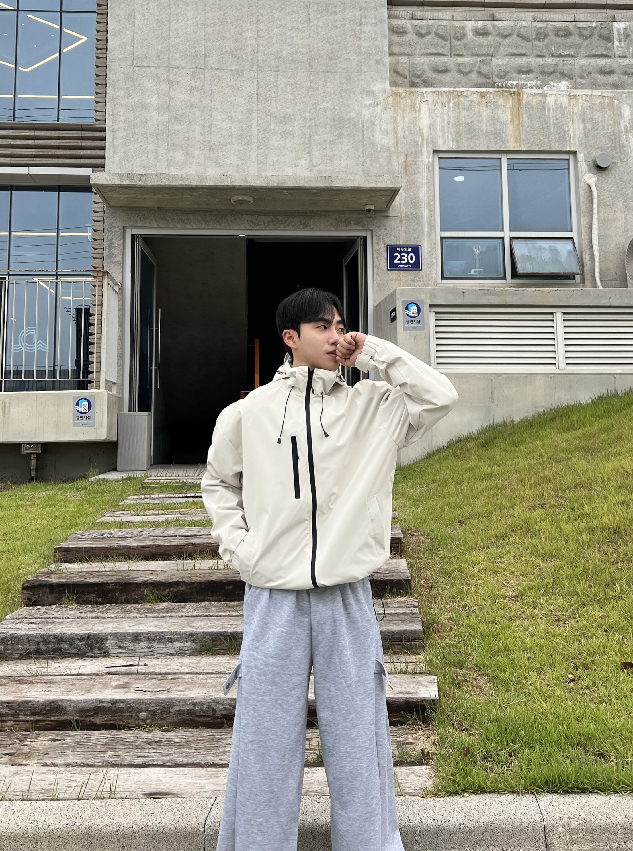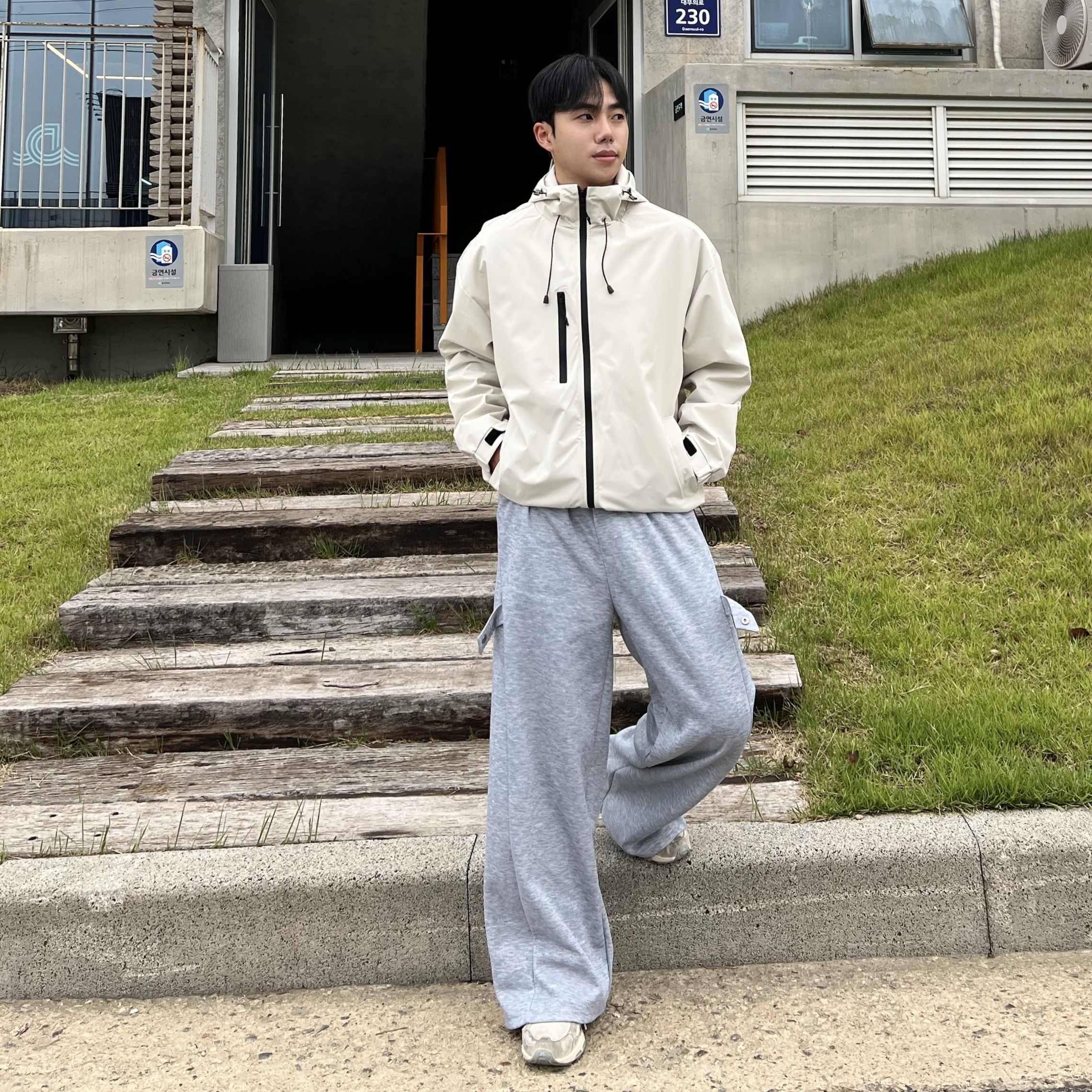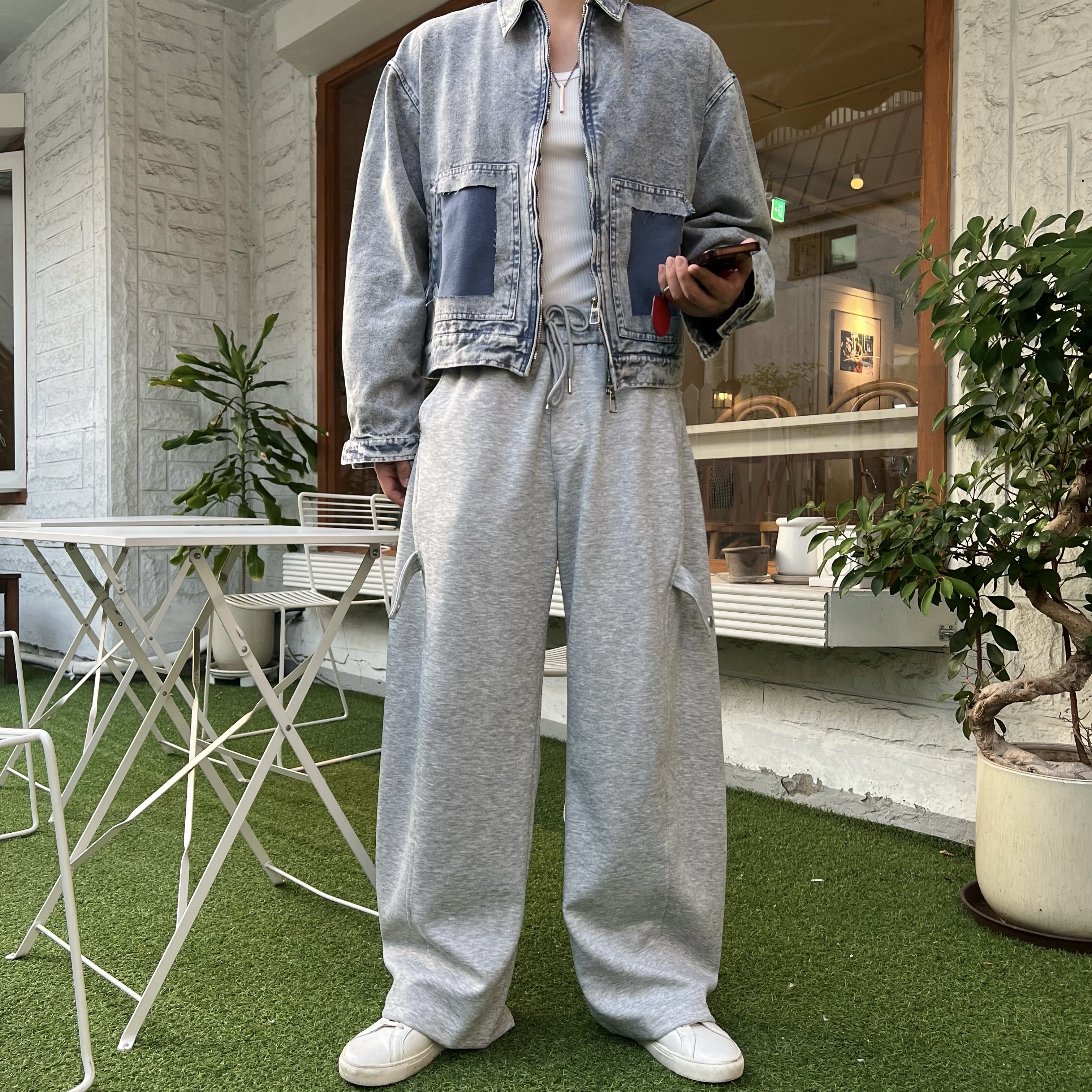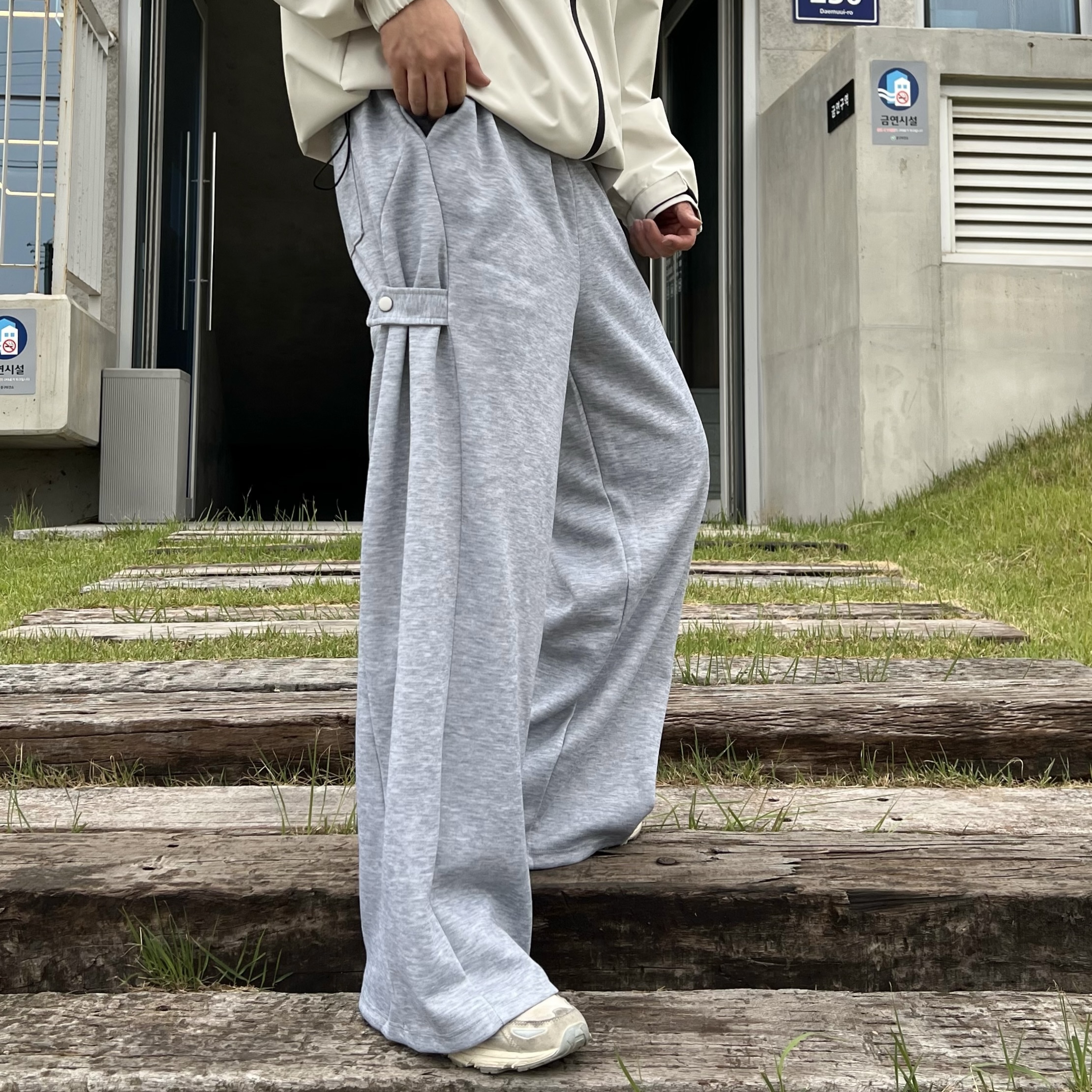 - 과감하게 떨어지는 루즈핏으로 체형 커버와 스타일리시한 무드 연출