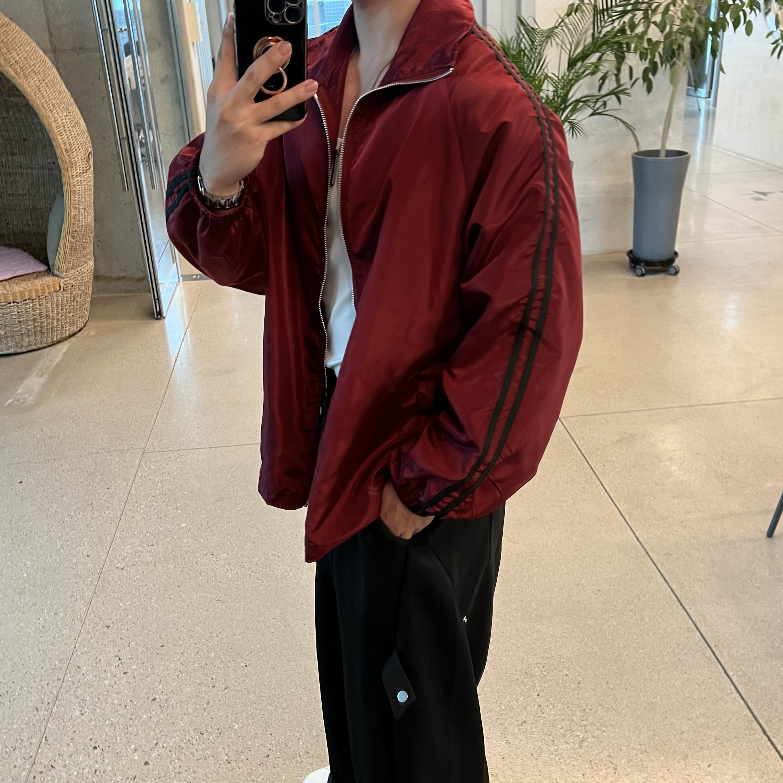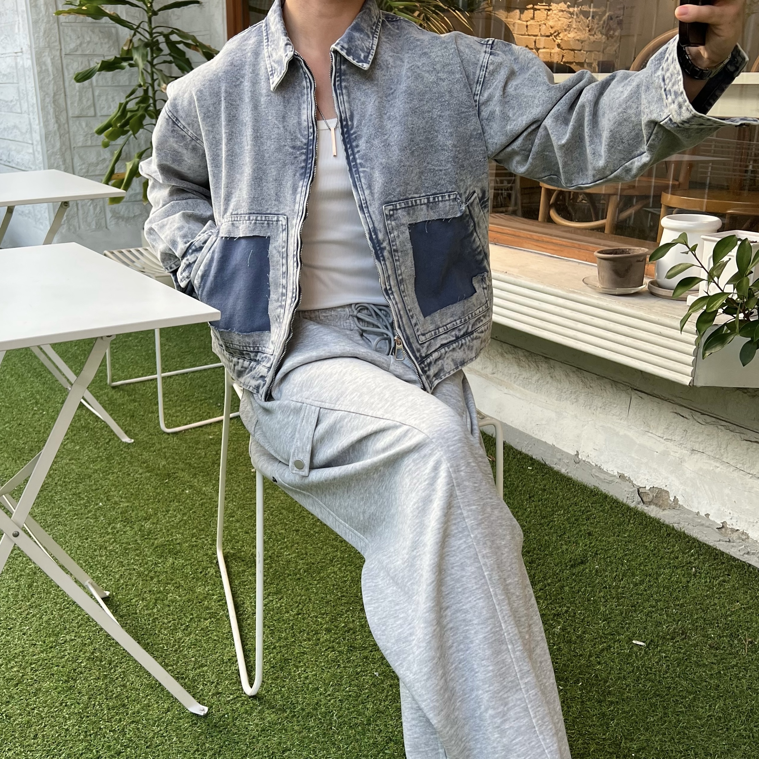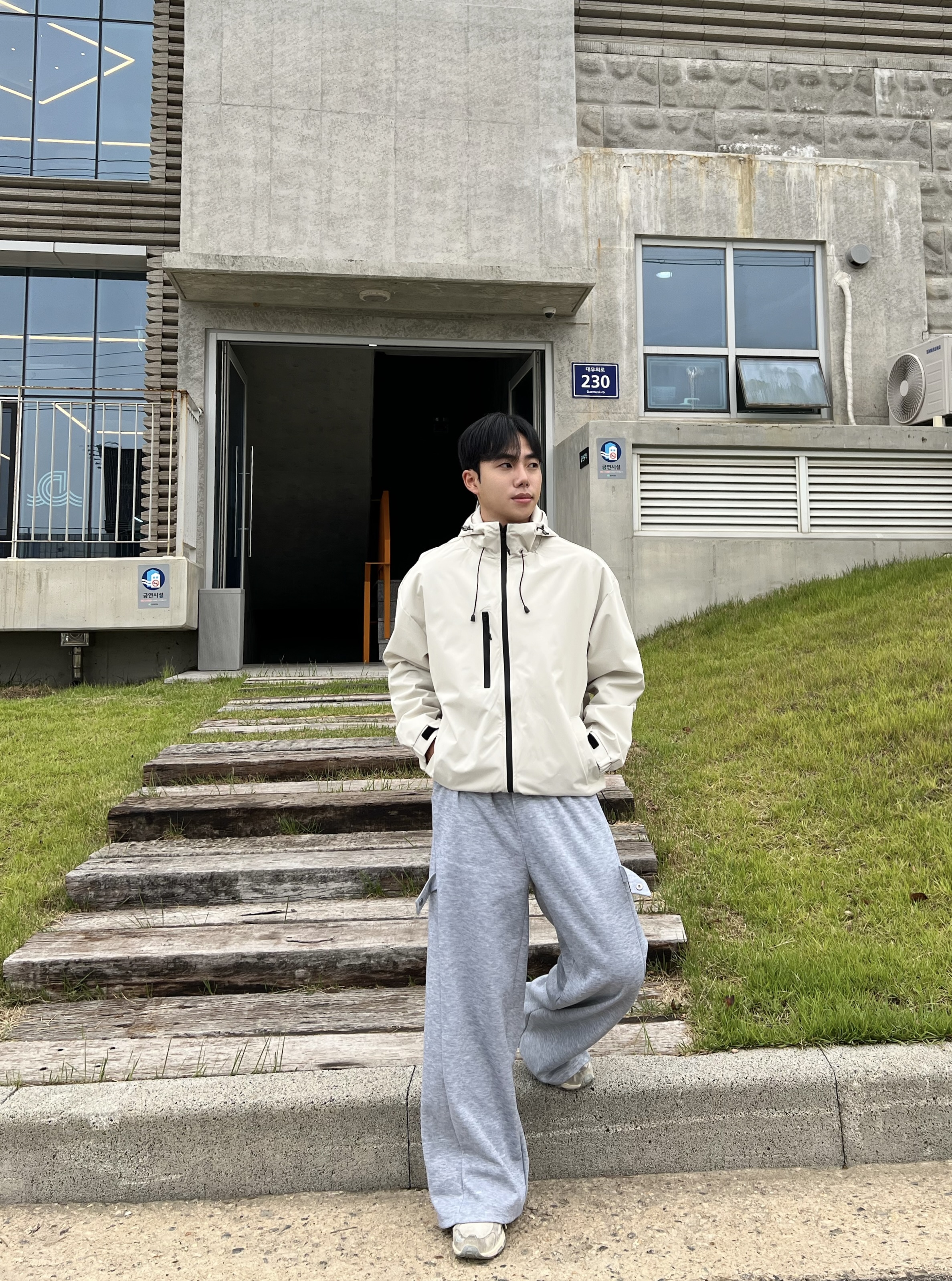 - 과감하게 떨어지는 루즈핏으로 체형 커버와 스타일리시한 무드 연출