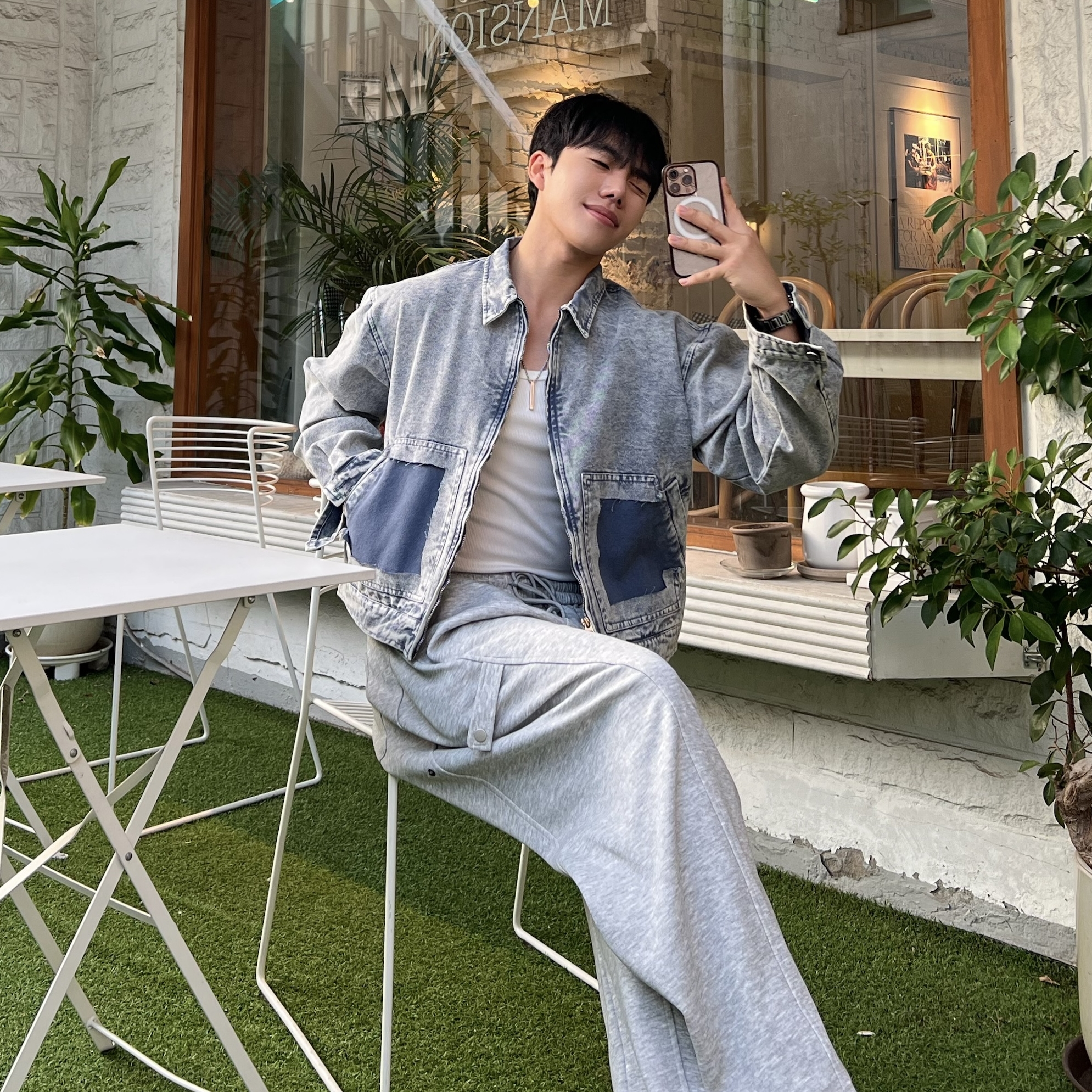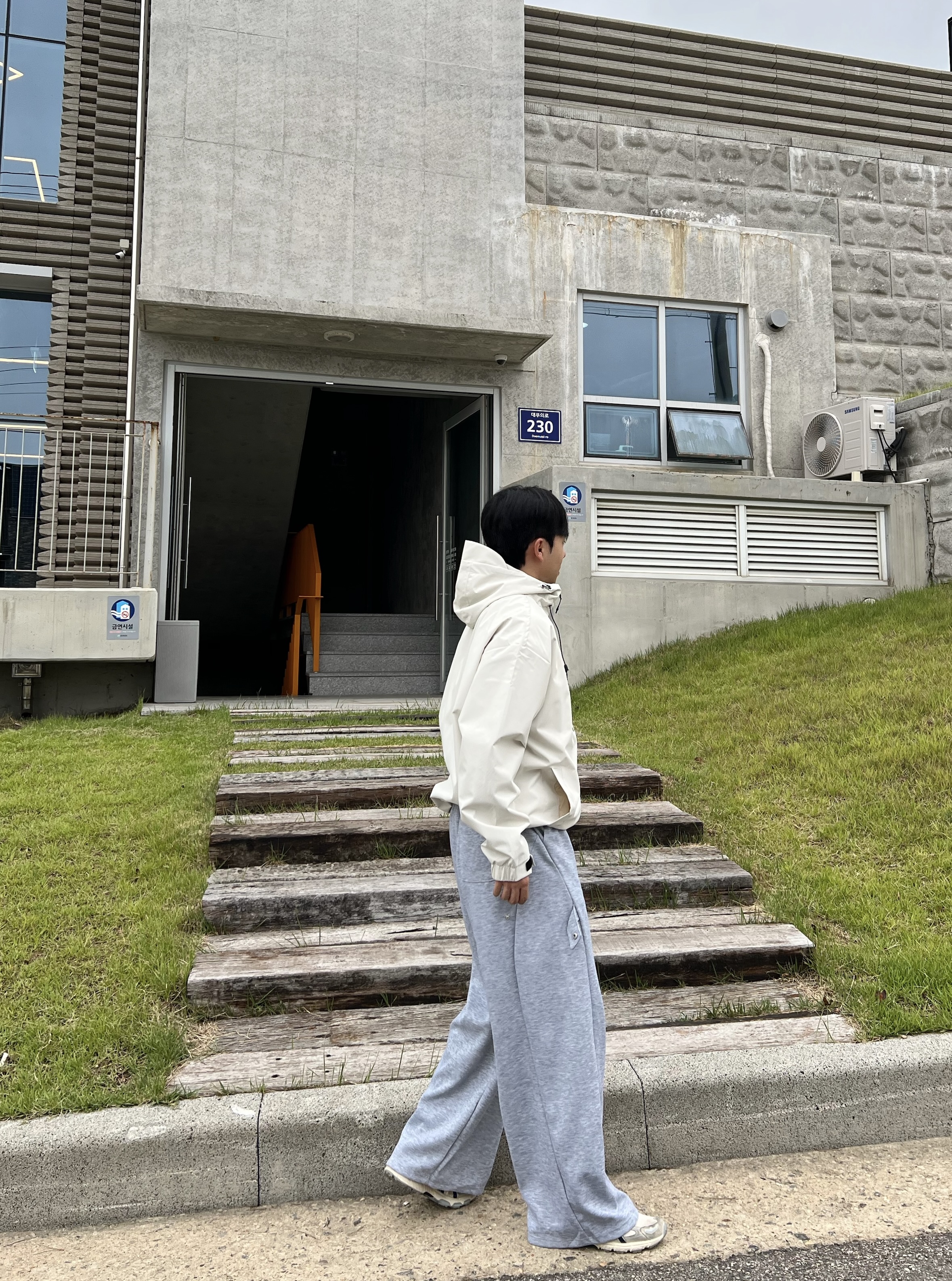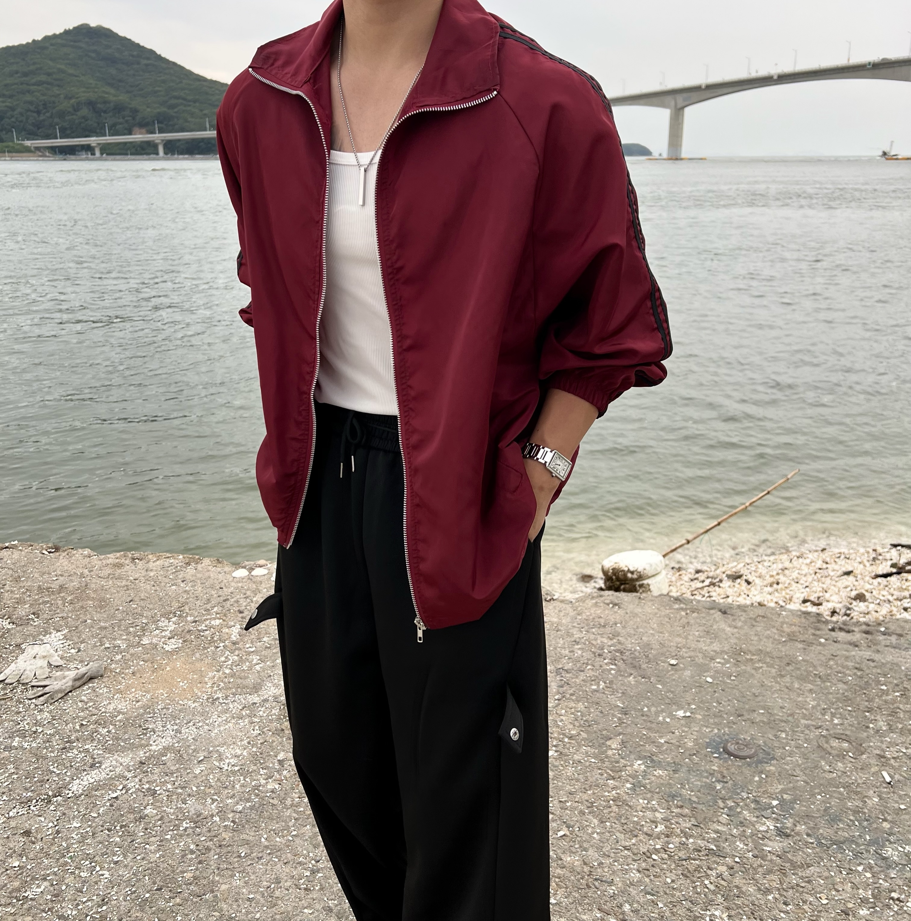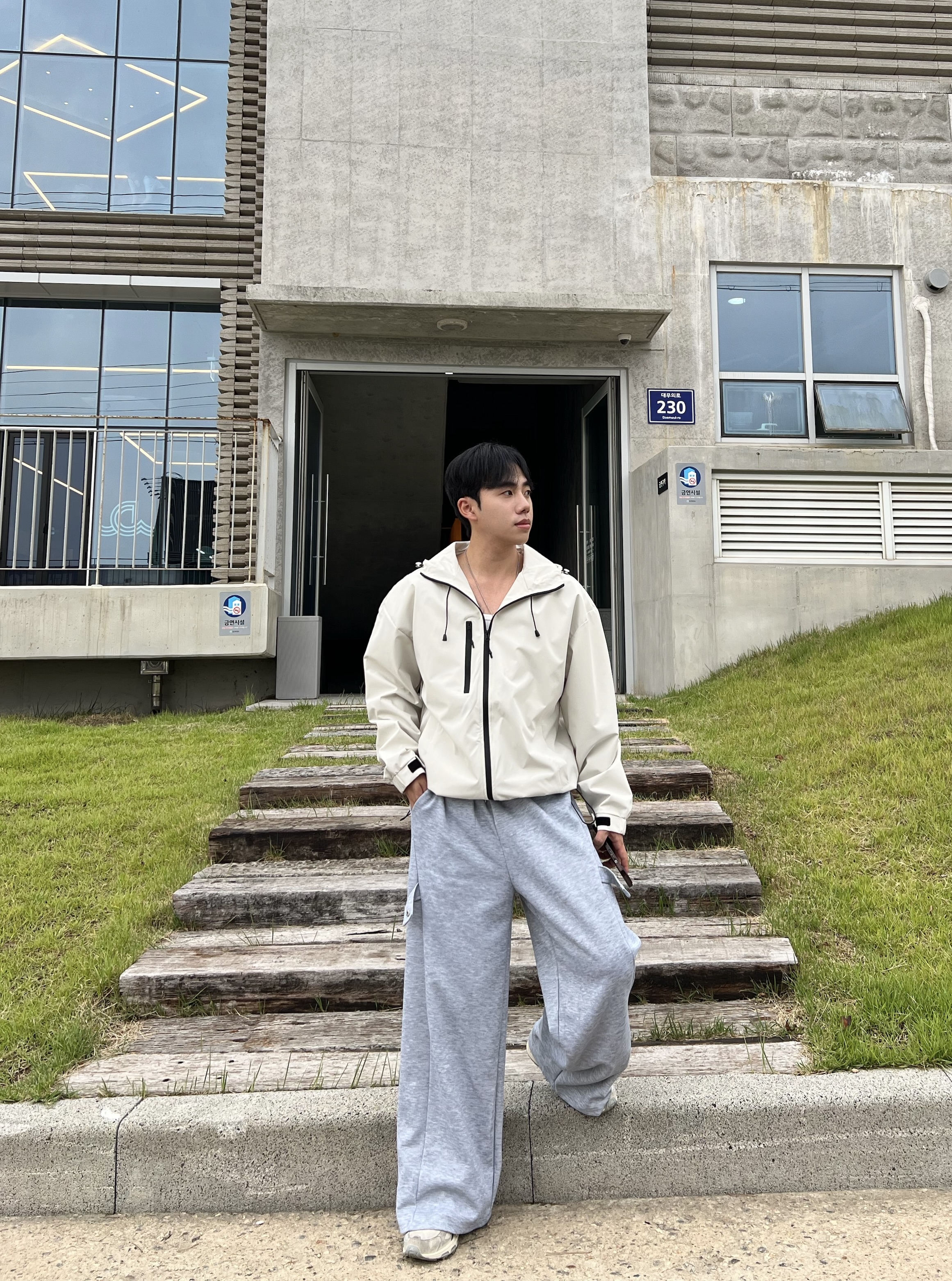 - 과감하게 떨어지는 루즈핏으로 체형 커버와 스타일리시한 무드 연출