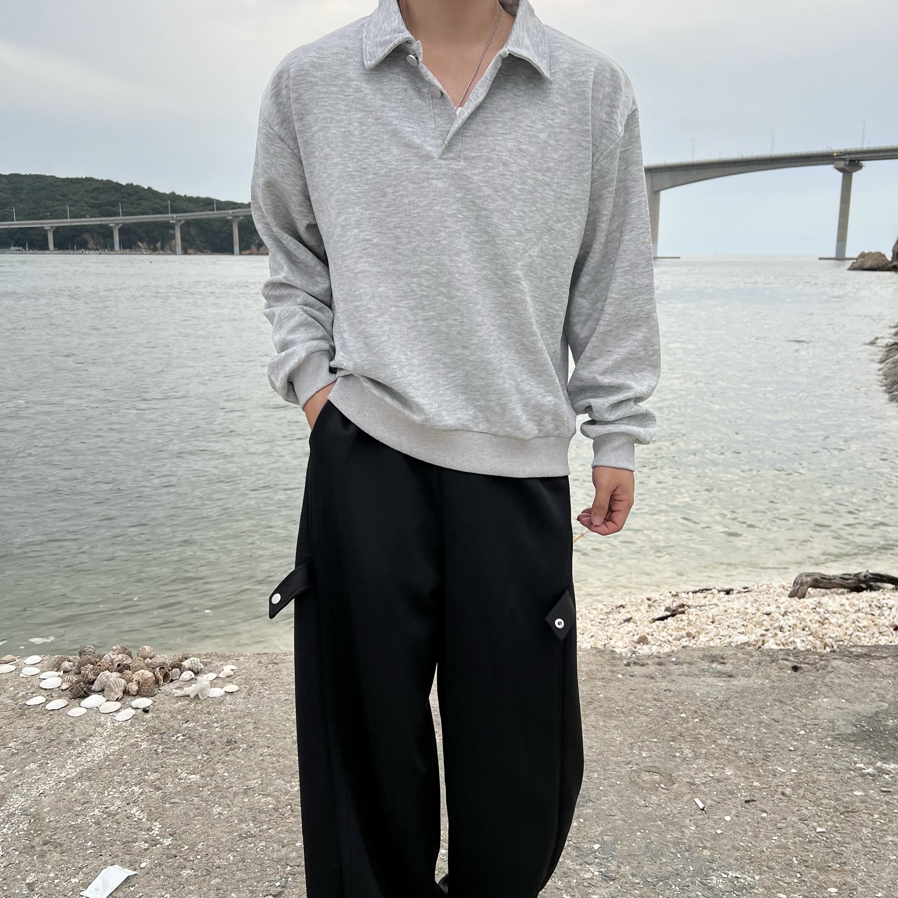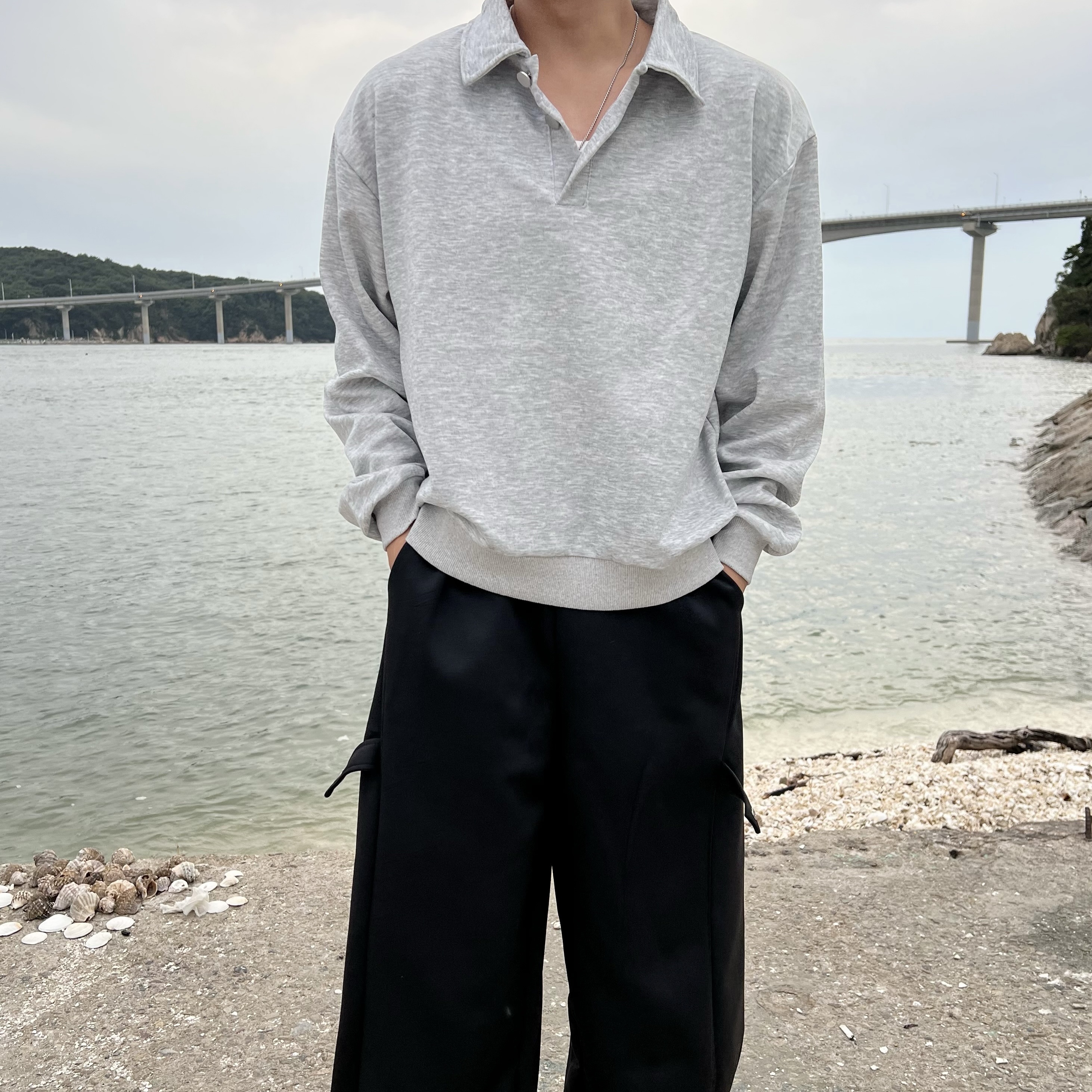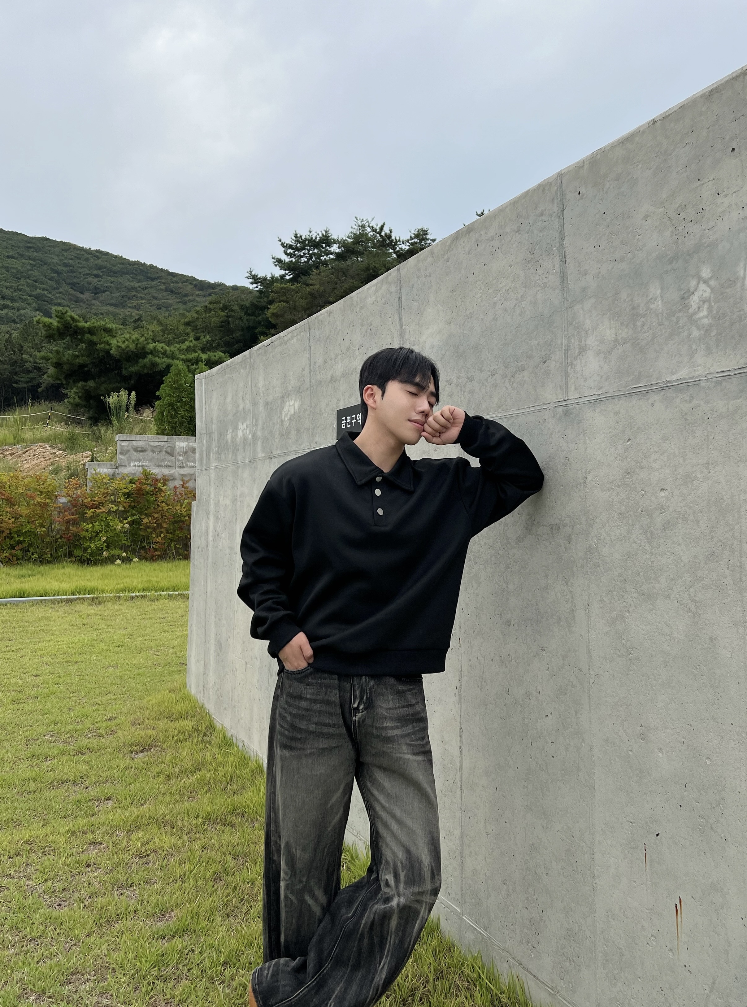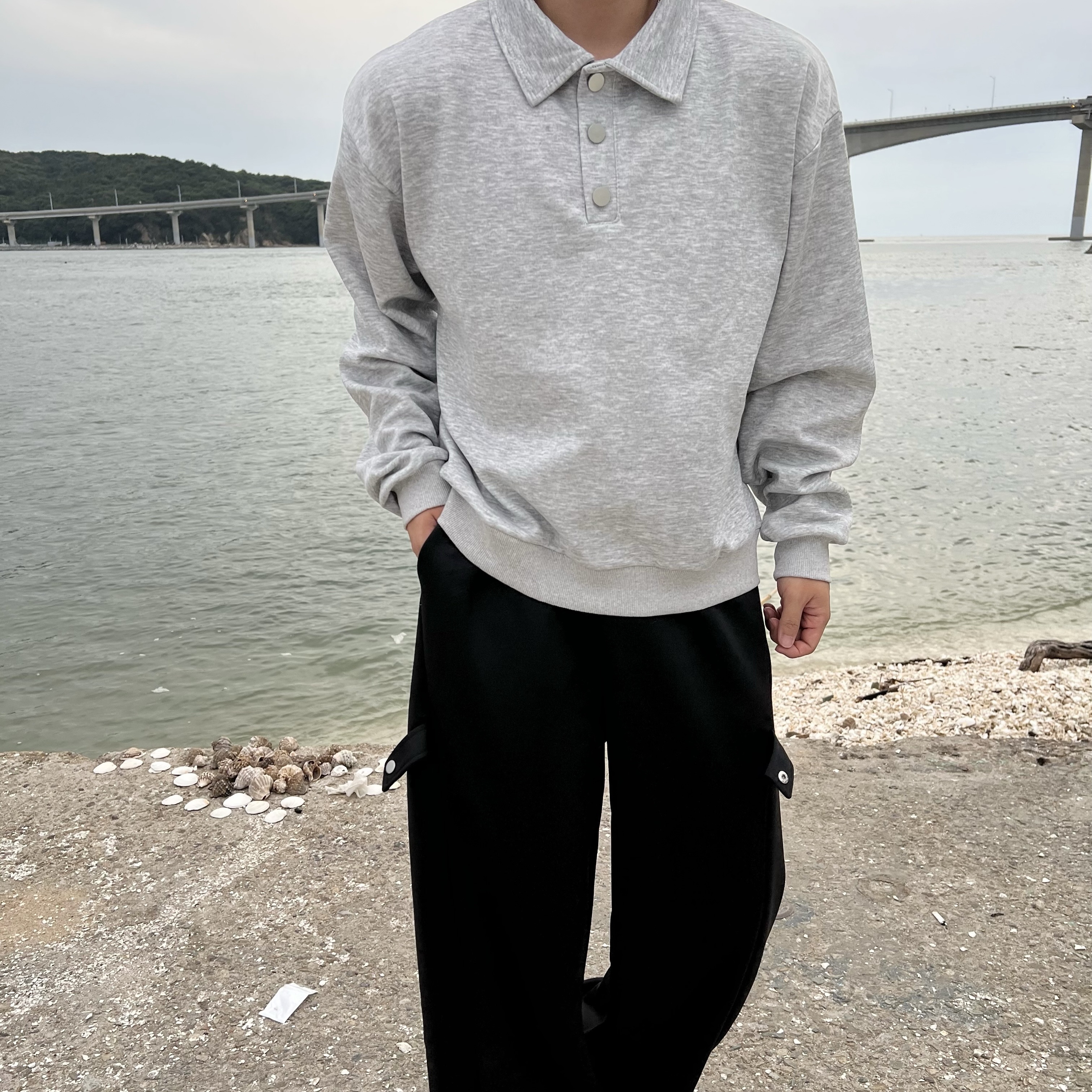 - 맨투맨에 카라와 하프 버튼을 더해 단정하면서도 세련된 무드