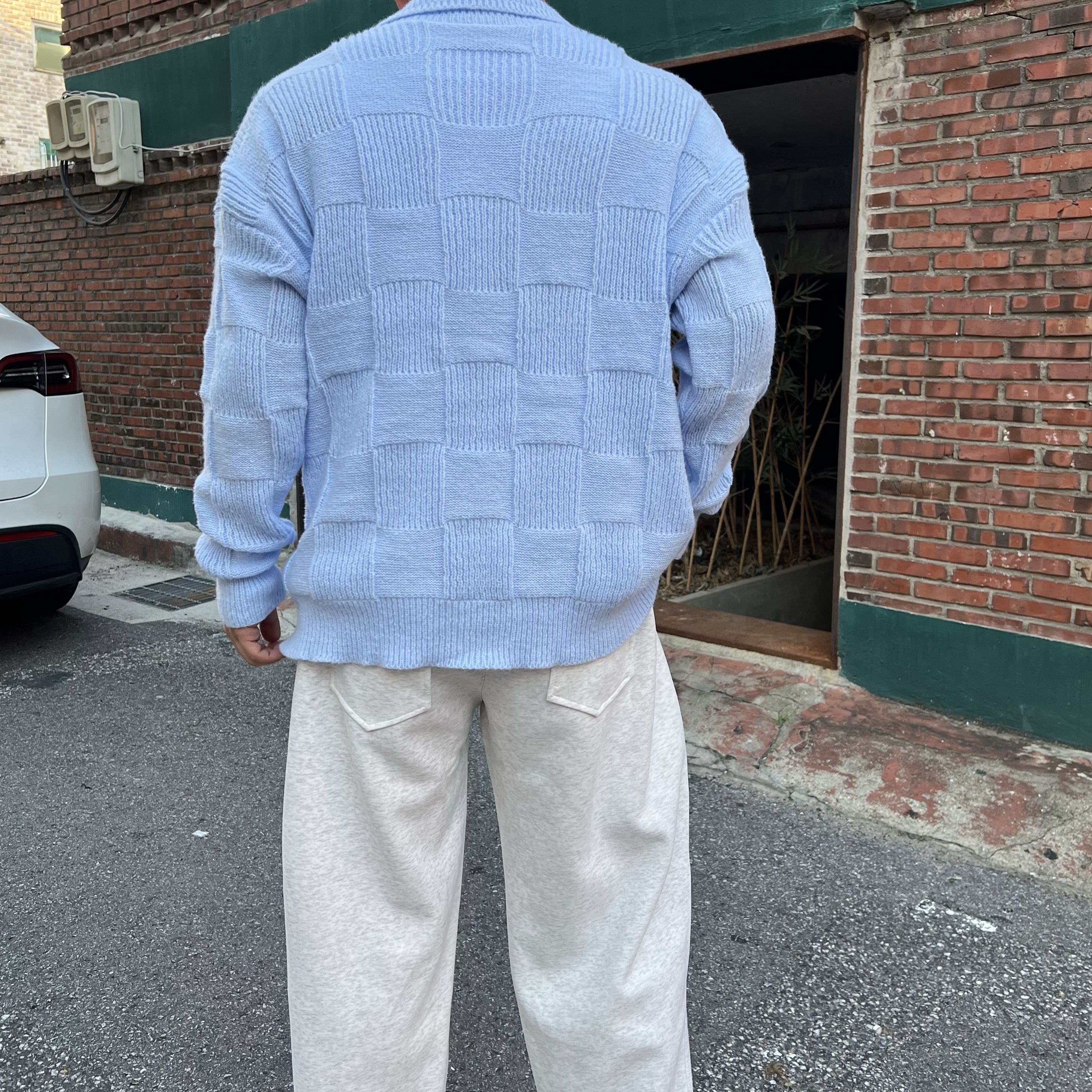 - 체커보드 니트 패턴에 입체감 있는 짜임으로 트렌디하고 유니크한 무드 연출