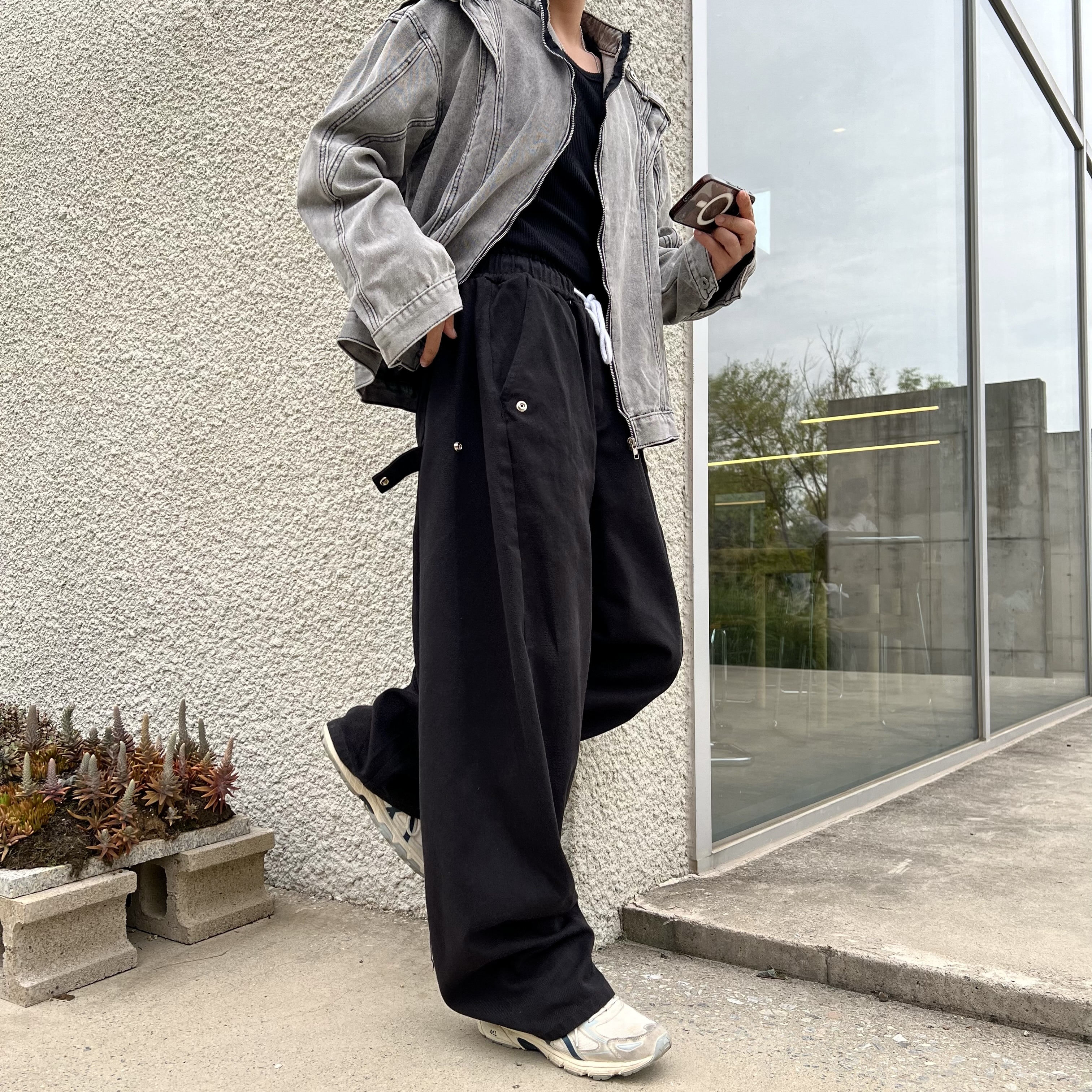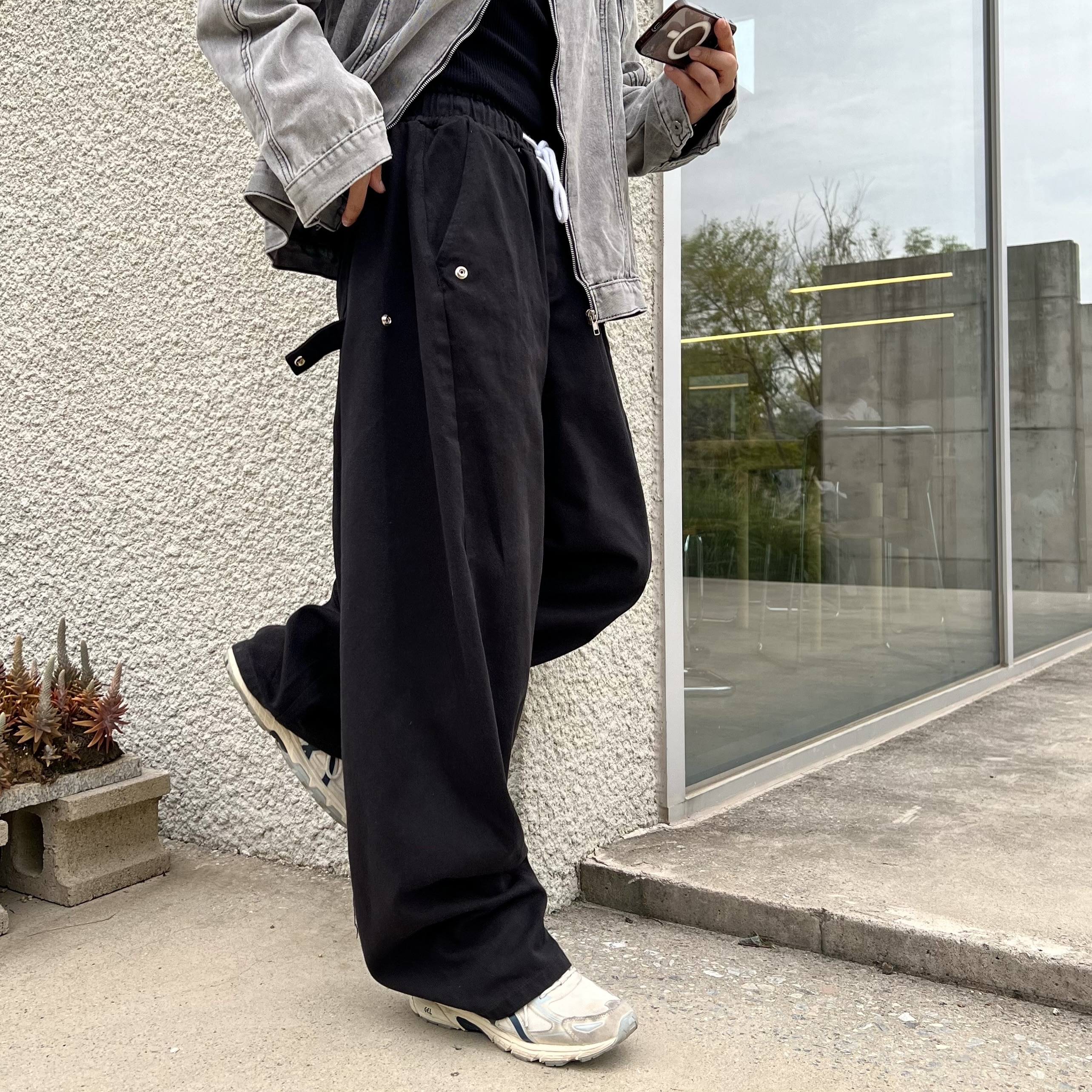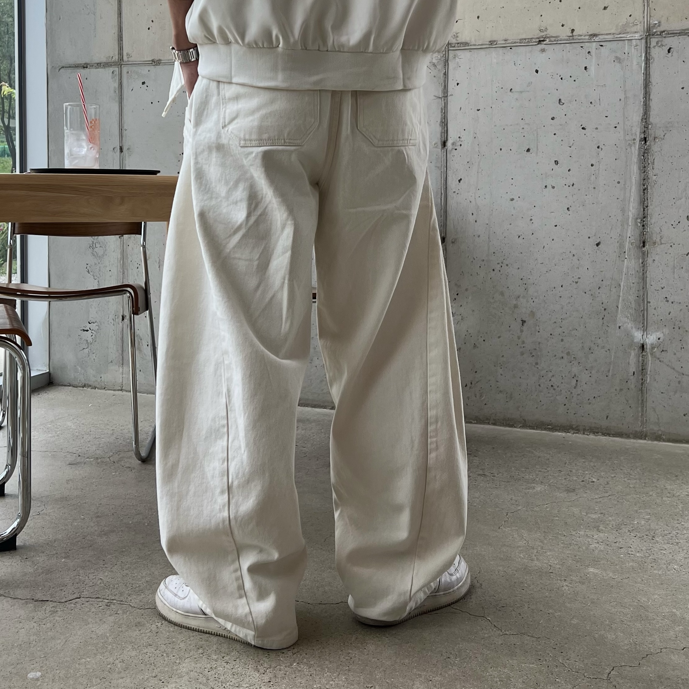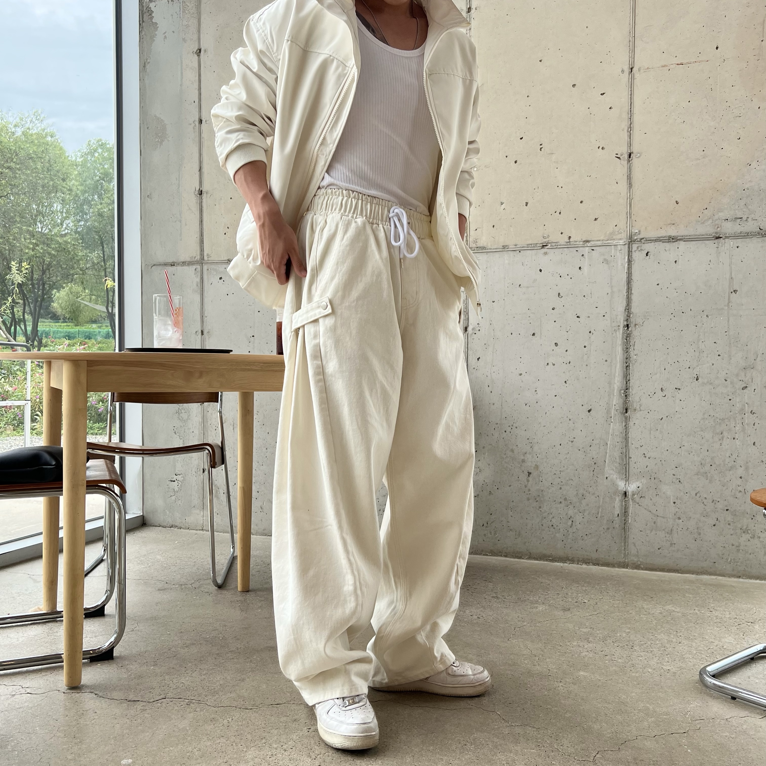 - 안정감 있는 밴딩 처리와 스트링으로 사이즈 조절 가능, 편안한 착용감 제공