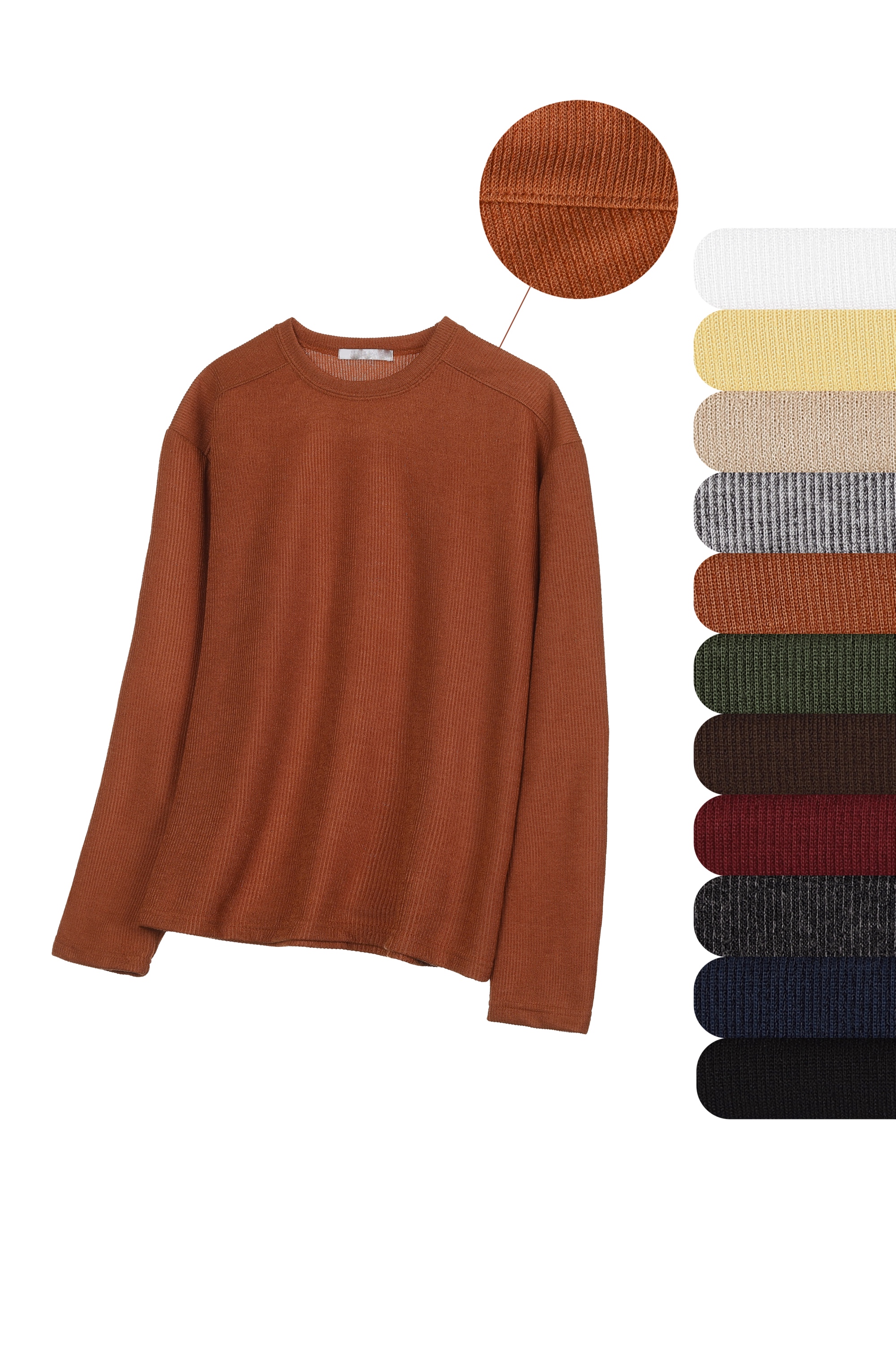 Point. - 다양한 컬러 11종으로 선택 폭이 넓음 - 4가지 사이즈로 체형에 맞게 착용 가능하며, 누구나 편안하게 - 가볍고 부드러운 니트 원단으로 편안한 착용감 - 단품으로는 물론, 아우터 안에 이너로도 활용도 높은 베이직 아이템 SIZE 1번(M) / 어깨 49 / 가슴 51 / 소매 59 / 총장 63 2번(L) / 어깨 51 / 가슴 53 / 소매 60 / 총장 65 3번(XL) / 어깨 53 / 가슴 55 / 소매 61 / 총장 67 4번(2XL) / 어깨 55 / 가슴 57 / 소매 62 / 총장 69 * 재는 위치와 재는 방법에 따라 1~3cm 오차가 있을 수 있습니다 * DETAIL INFO 신축성 / ■ 좋음 □ 보통 □ 없음 두께감 / □ 도톰 ■ 보통 □ 얇음 비 침 / □ 있음 □ 약간 ■ 없음 계절감 봄,가을,겨울 MODEL SIZE 174cm 70kg / 2번(L) 사이즈 착용