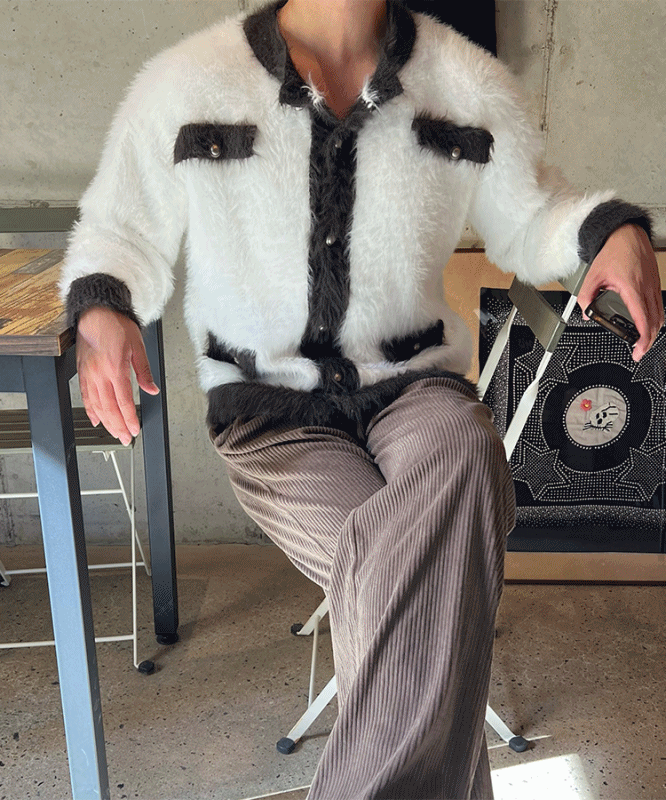 원스톤 배색 트위드 앙고라 니트 가디건 (1color)BESTMDHOT