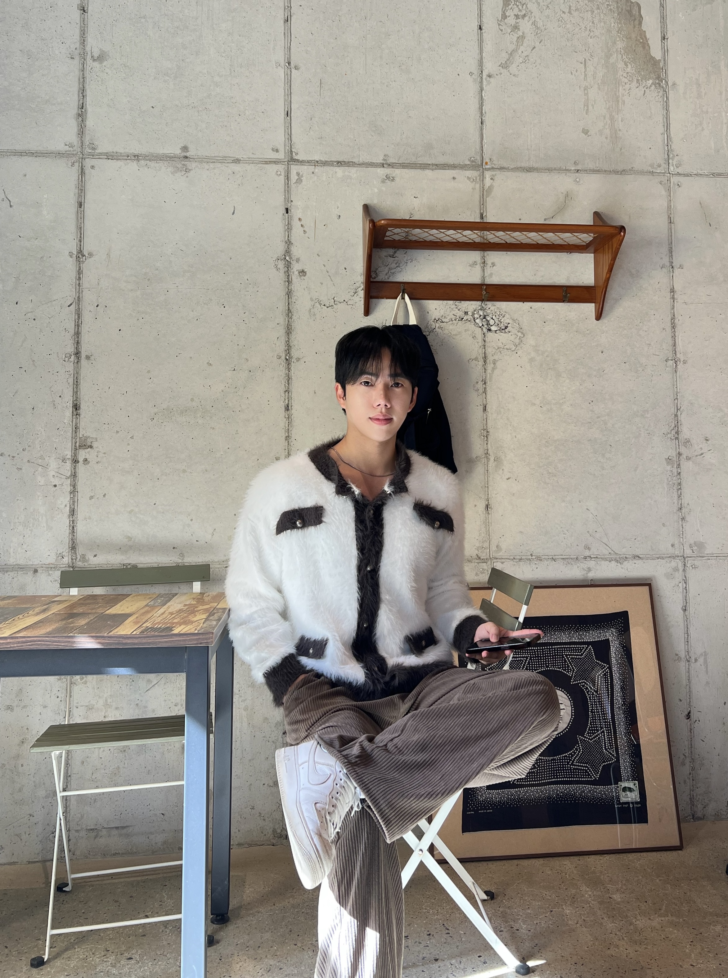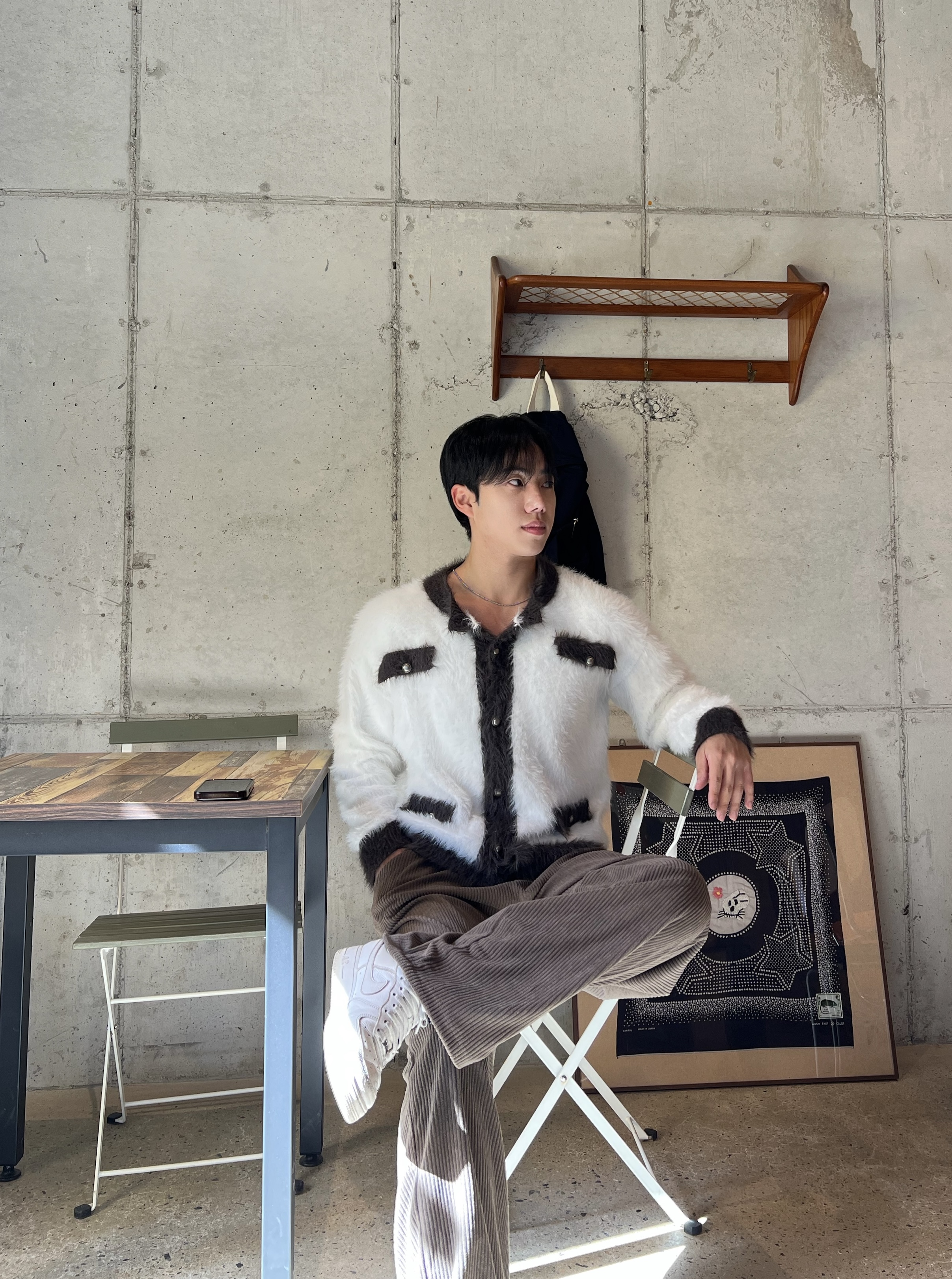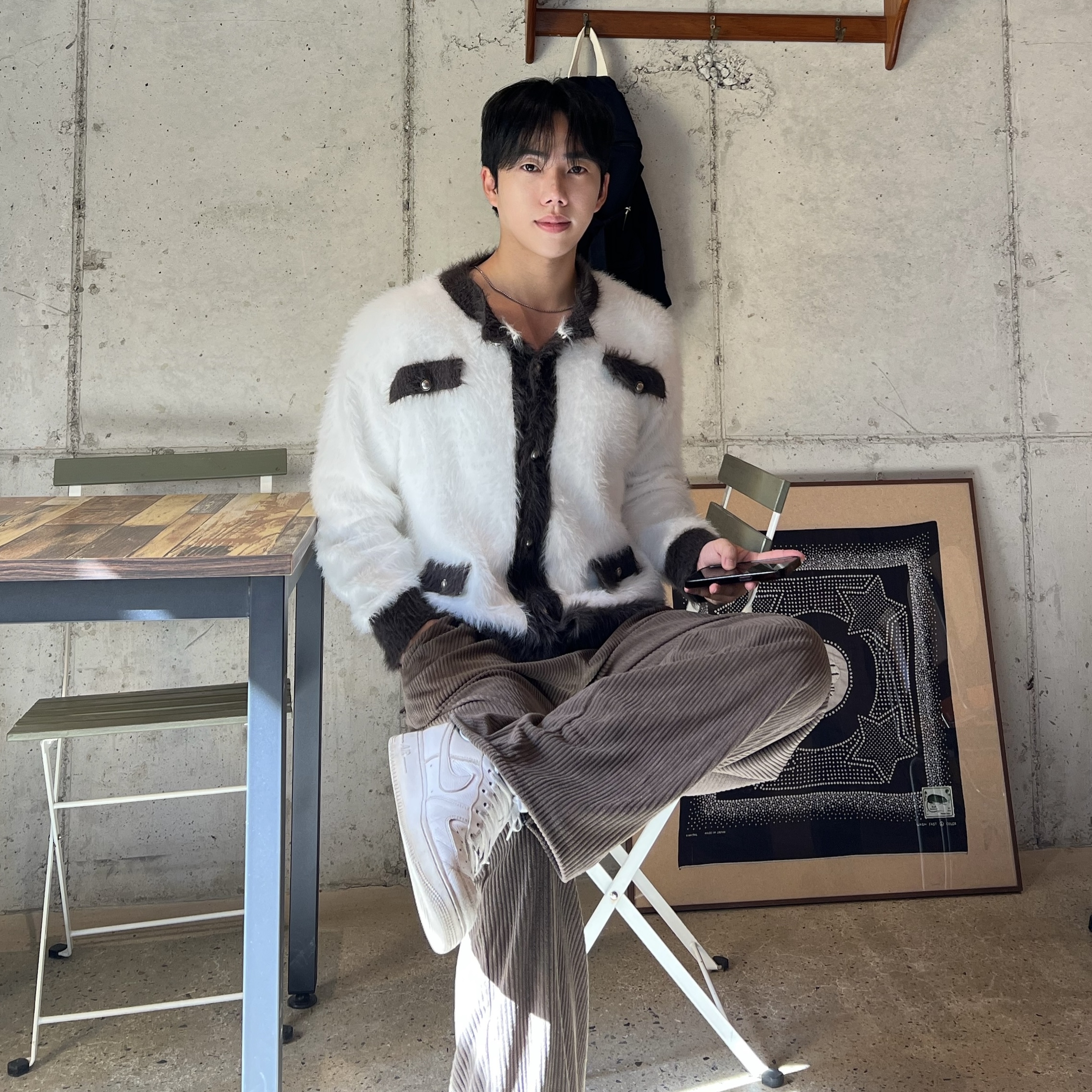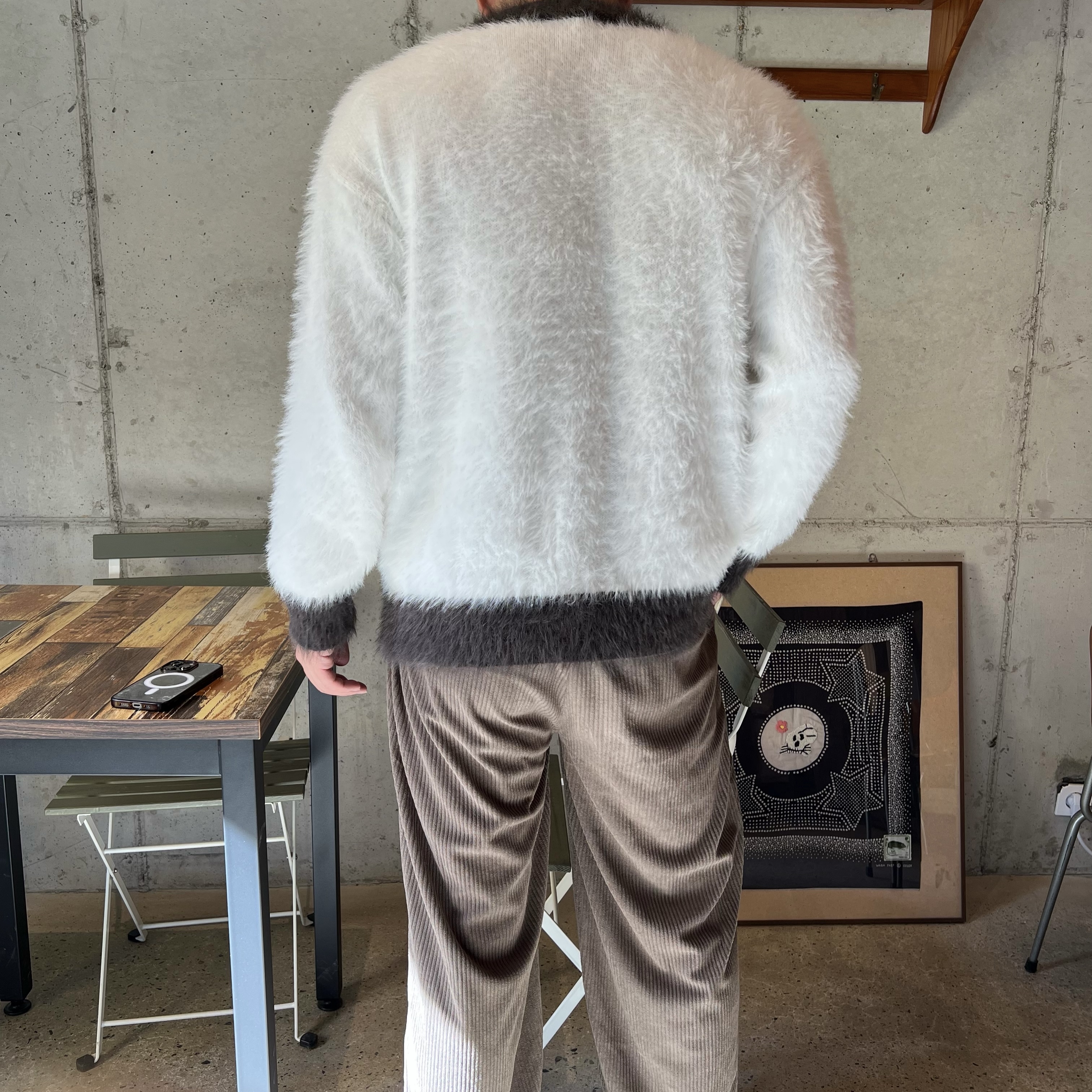 - 헤어리한 텍스처의 고급 앙고라 니트 원단으로 은은한 광택감과 부드러운 촉감으로 프리미엄 무드 완성