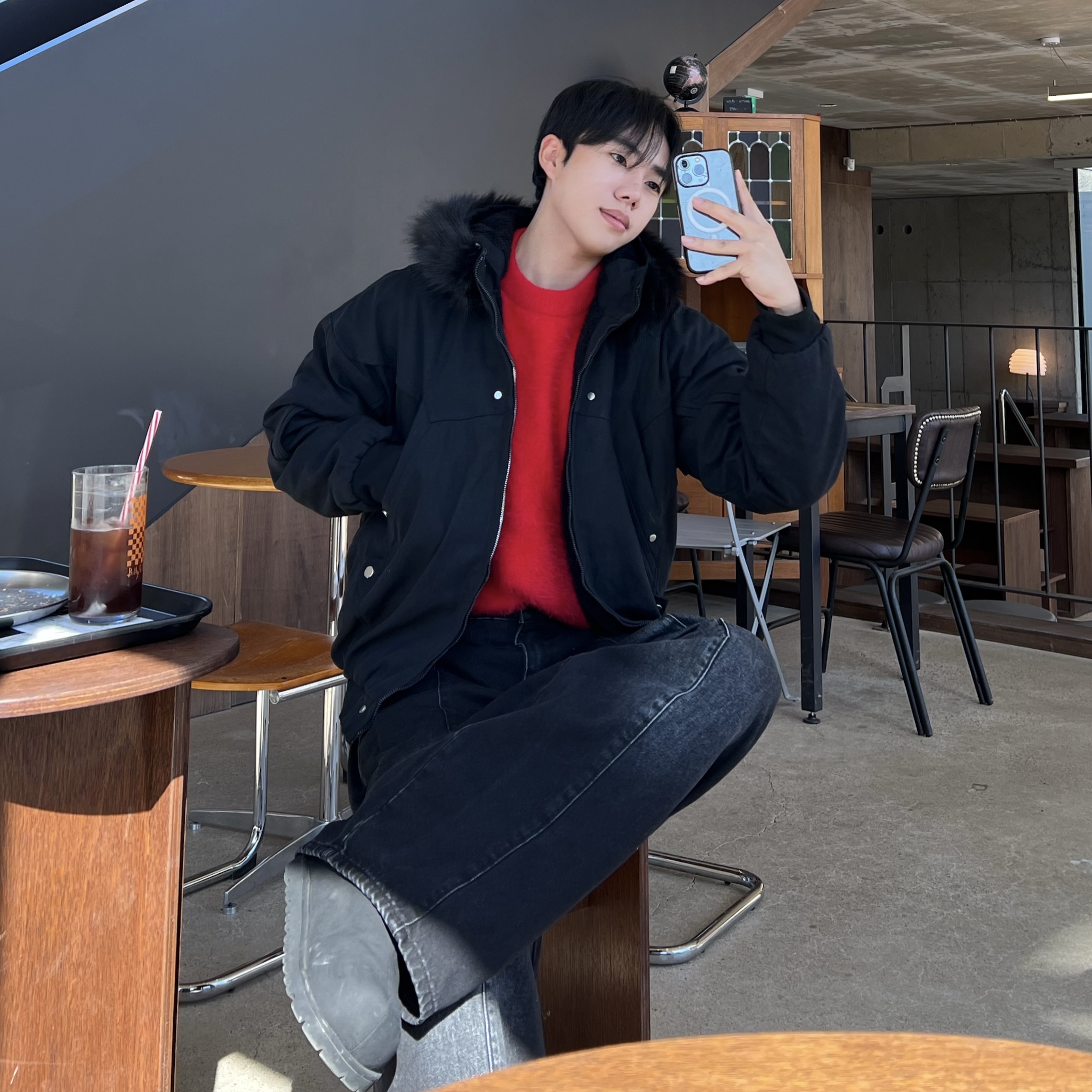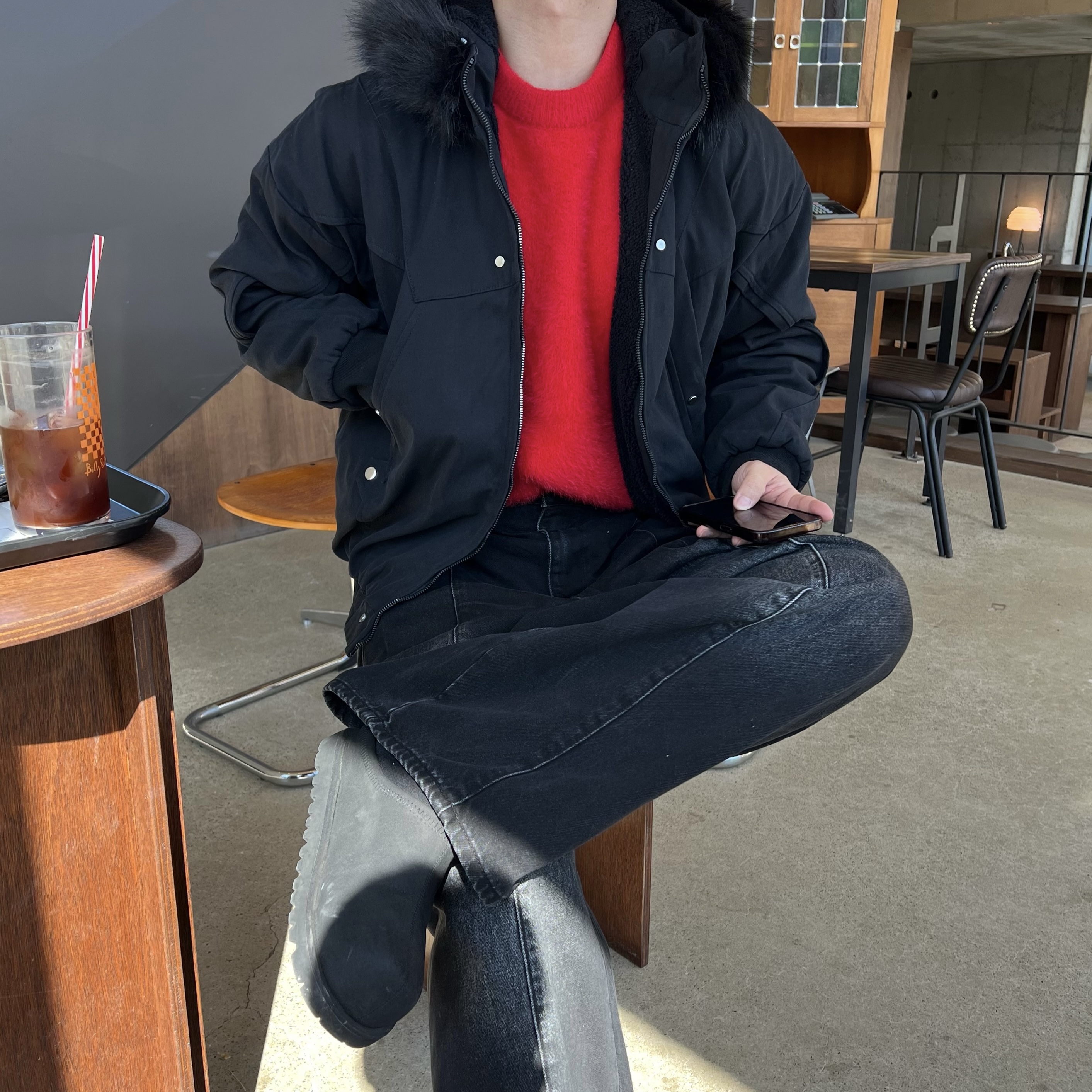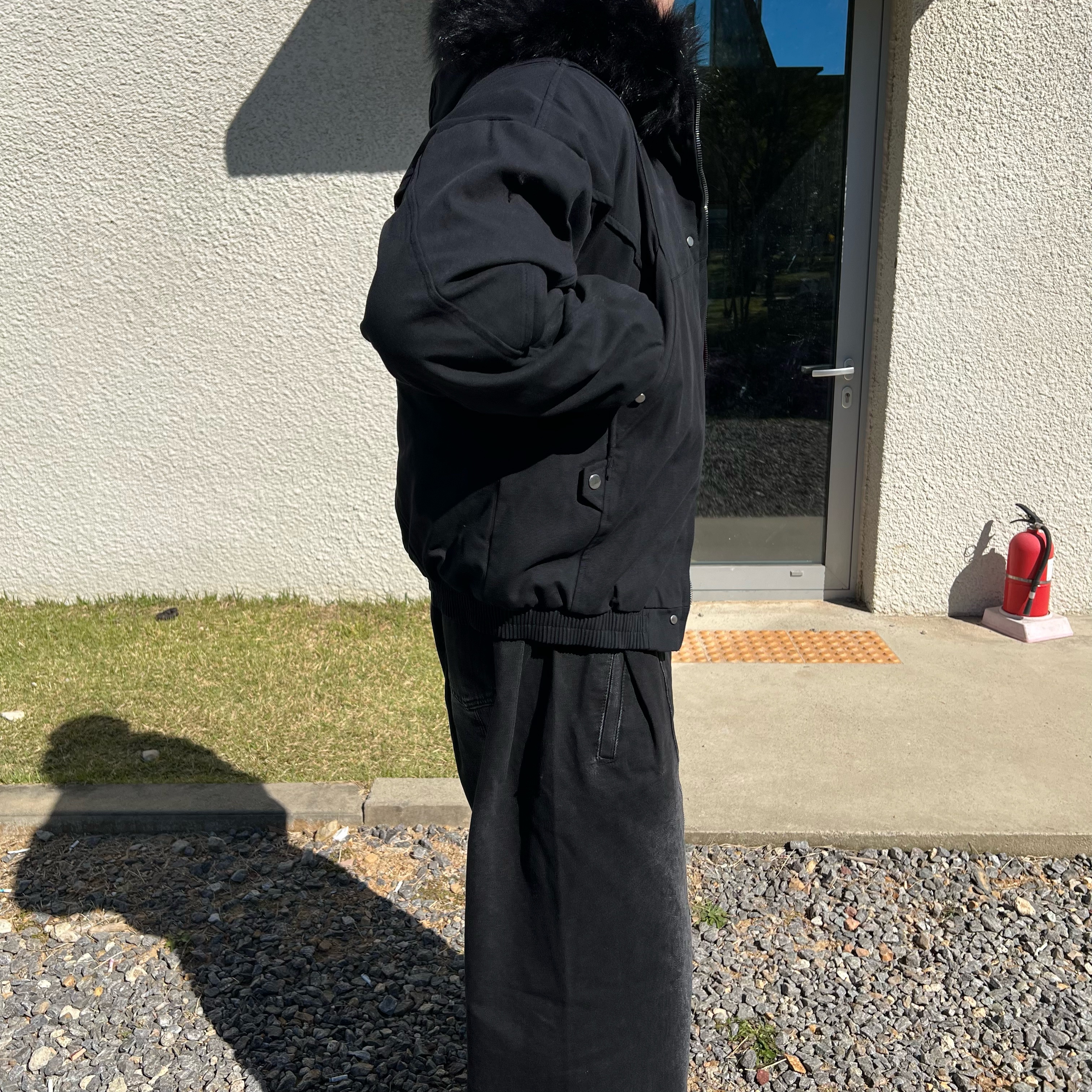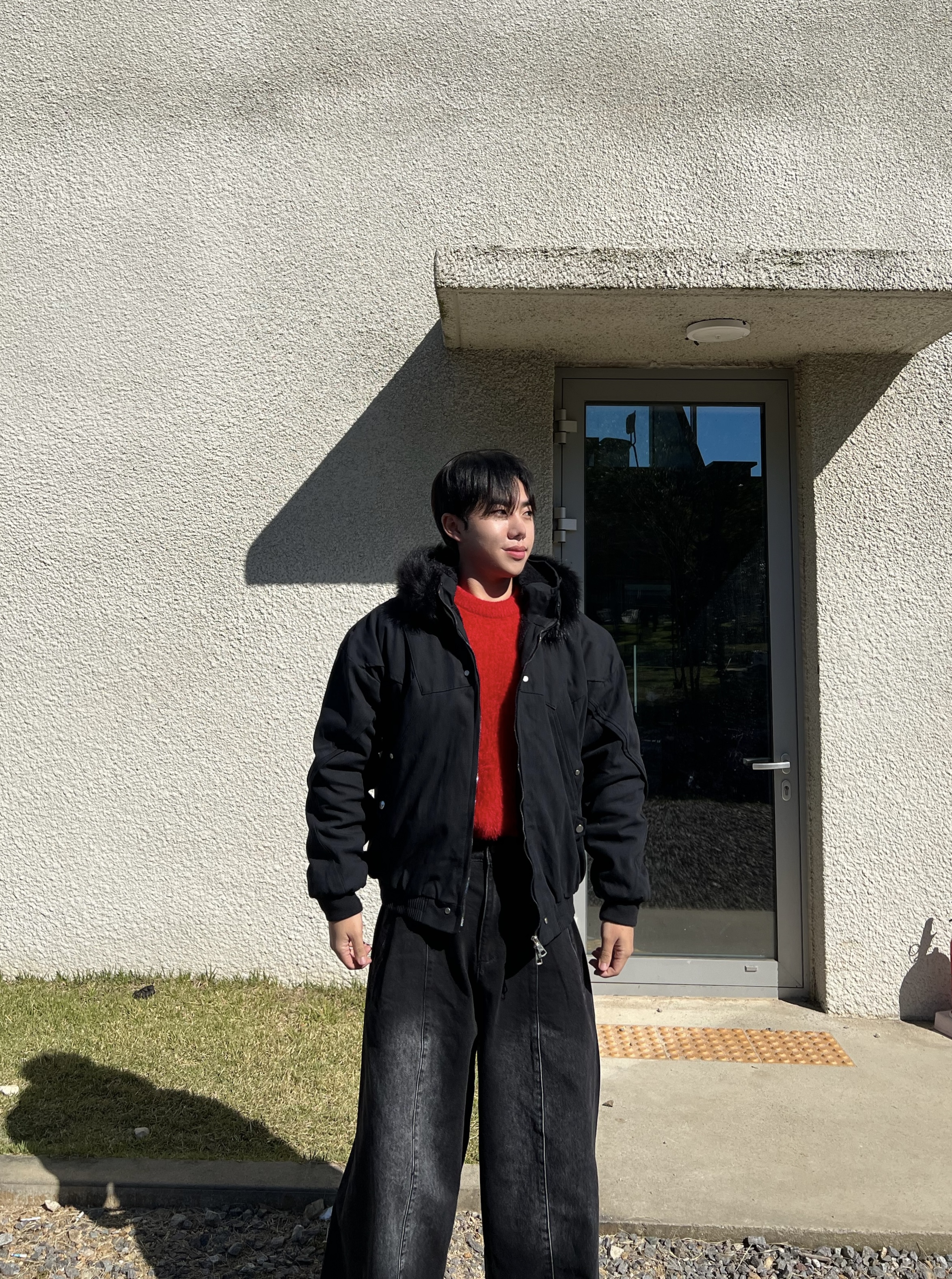 - 밑단 시보리 마감으로 전체 실루엣을 안정적으로 잡아주며 보온성 향상