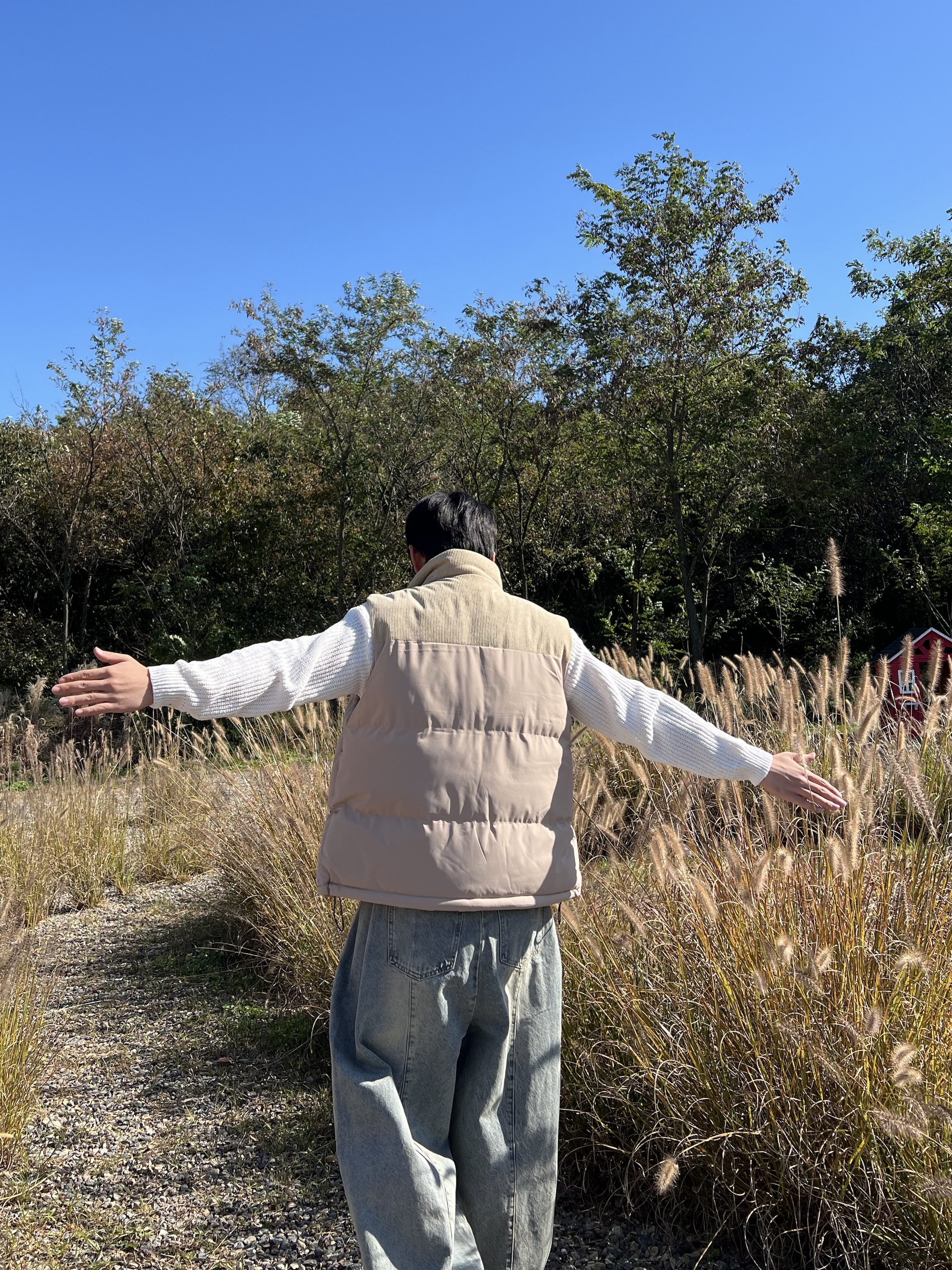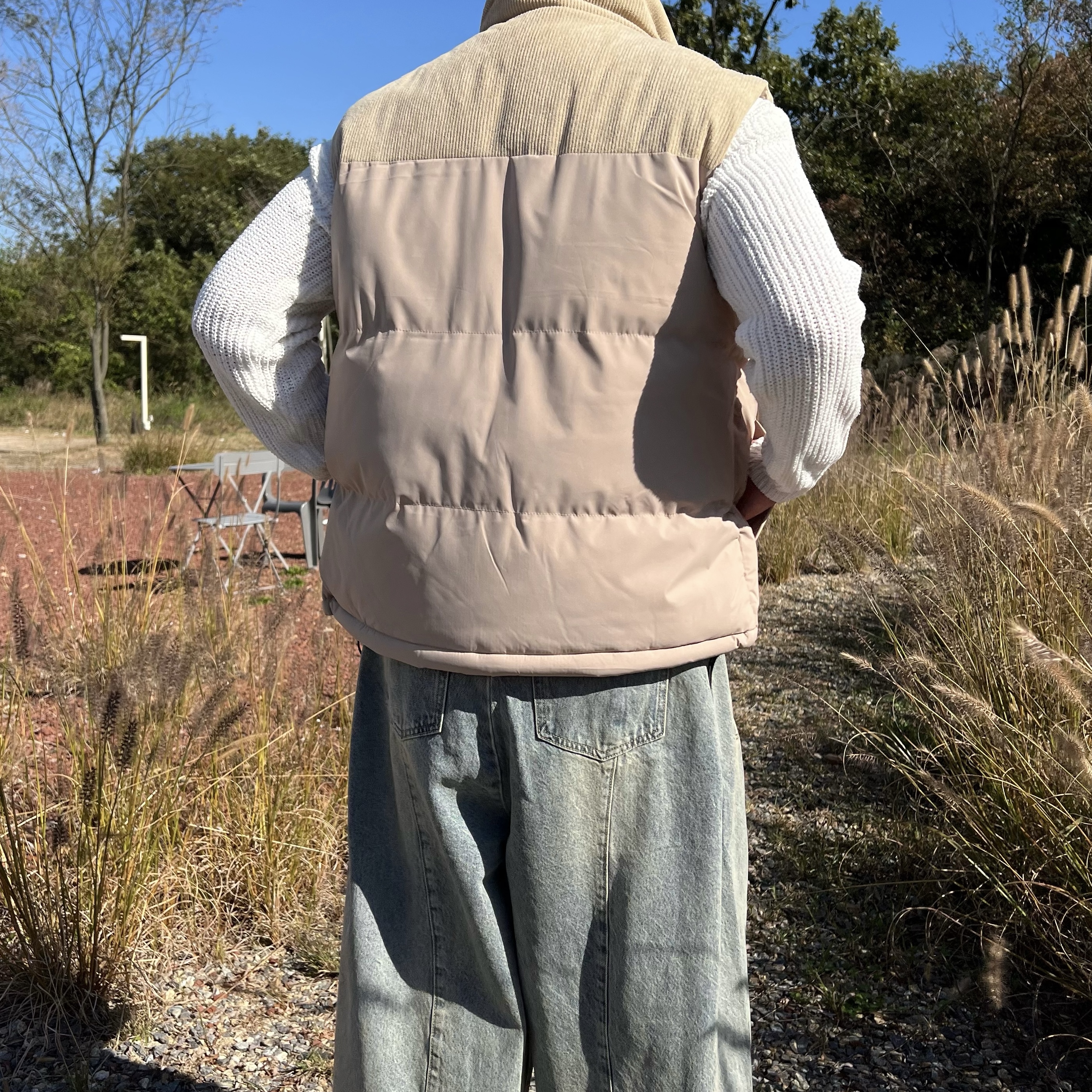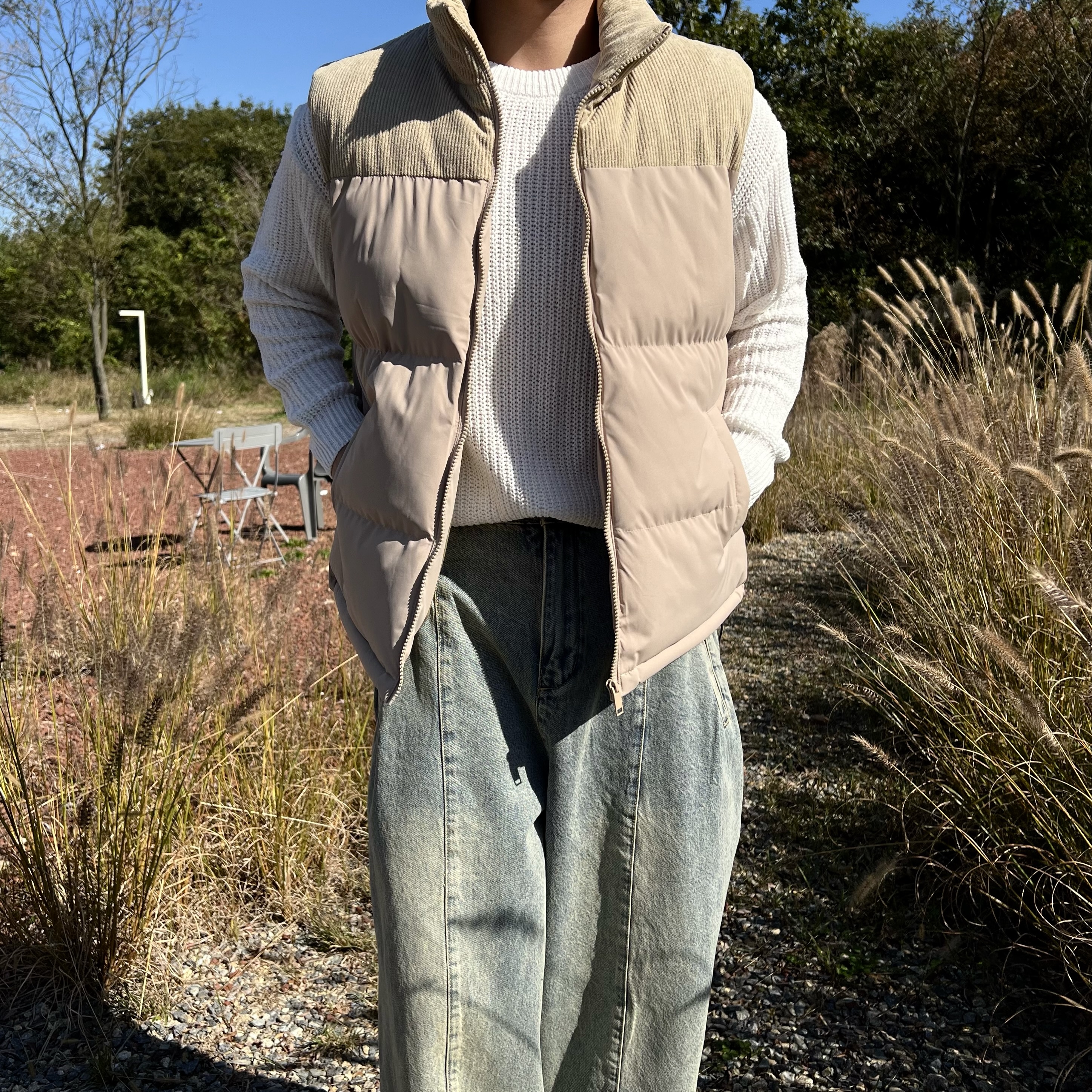 - 코듀로이 배색 디테일로 숄더라인부터 넥라인까지 감싸주는 코듀로이 원단으로 따뜻한 무드 연출