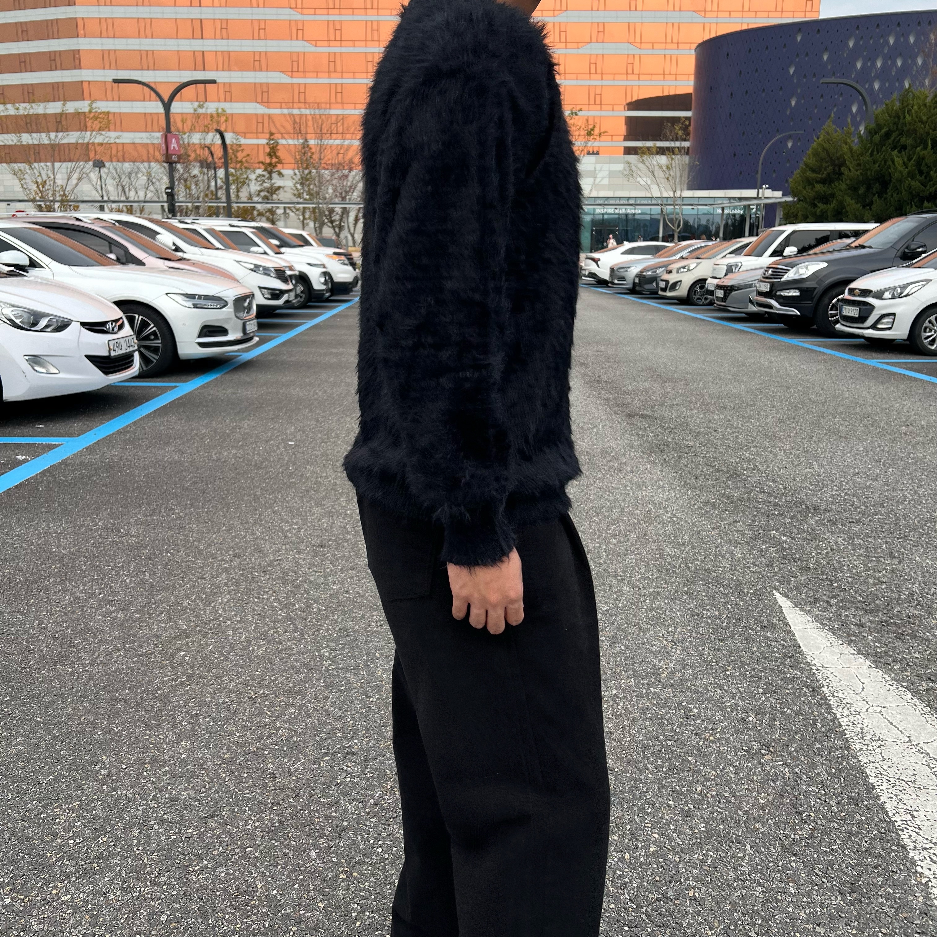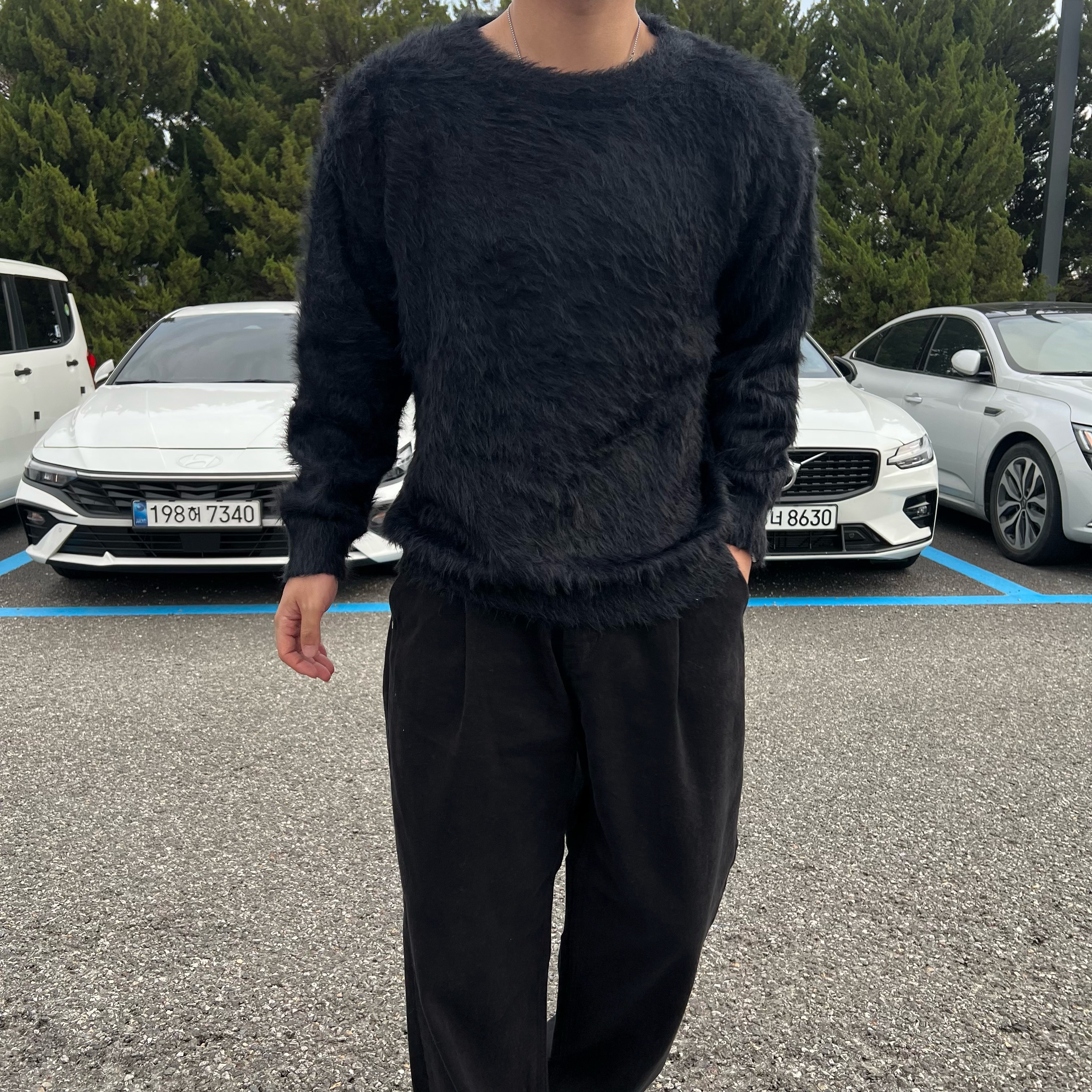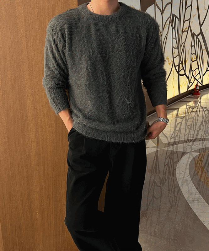- 헤어리 앙고라 텍스처 원단에 풍성한 헤어감이 살아있는 고급스러운 촉감