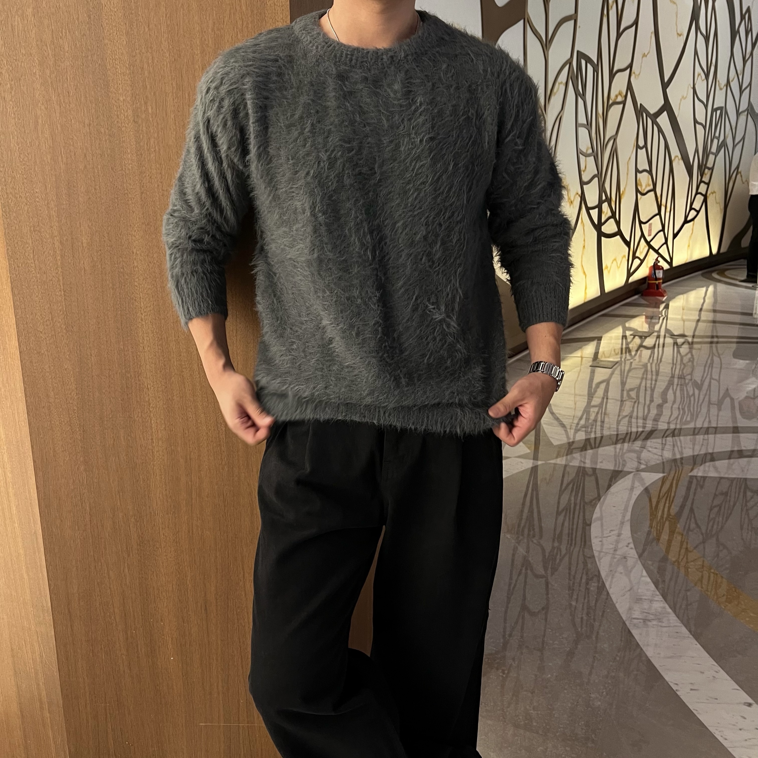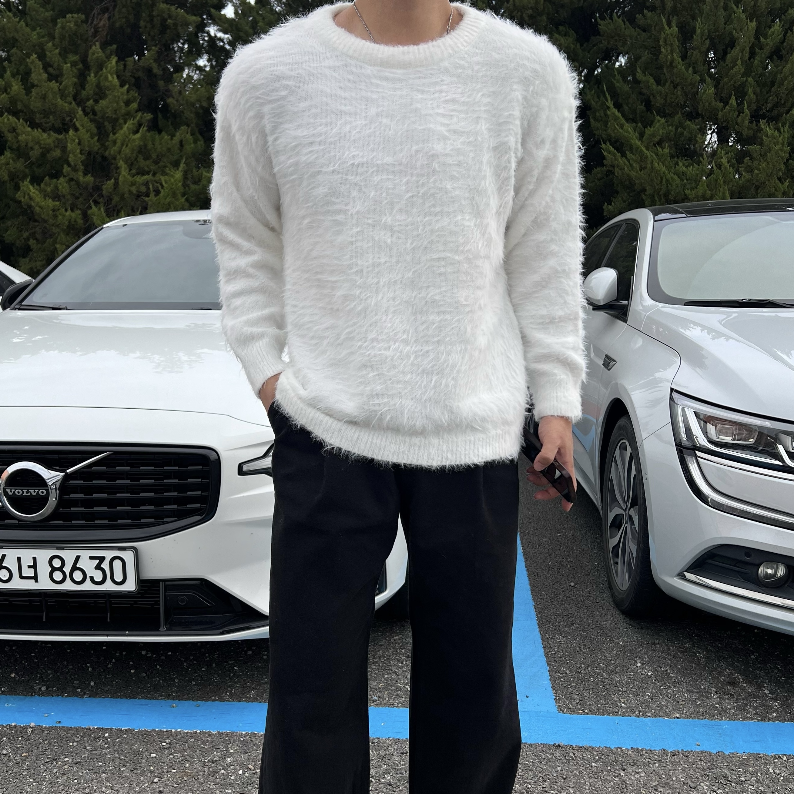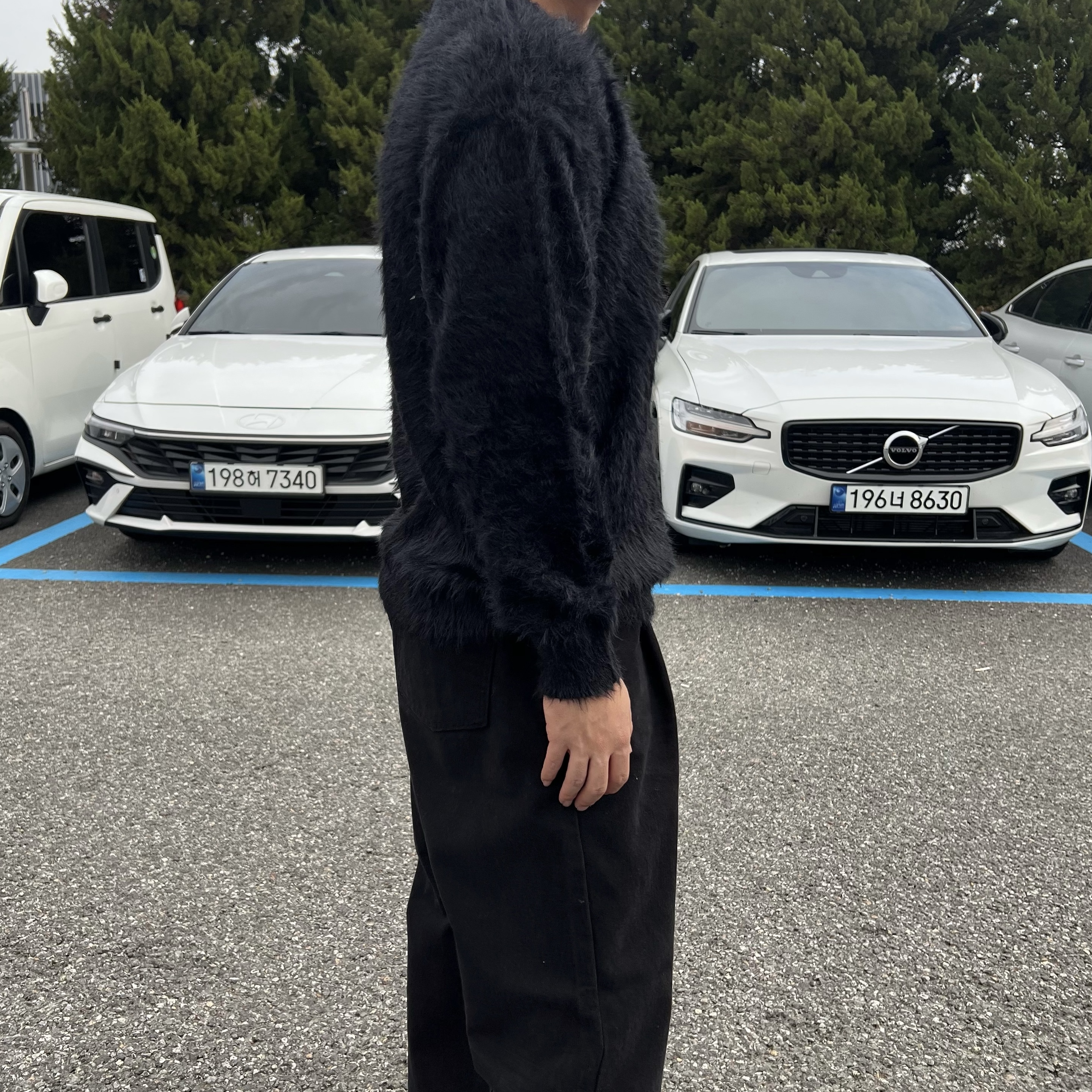 - 헤어리 앙고라 텍스처 원단에 풍성한 헤어감이 살아있는 고급스러운 촉감