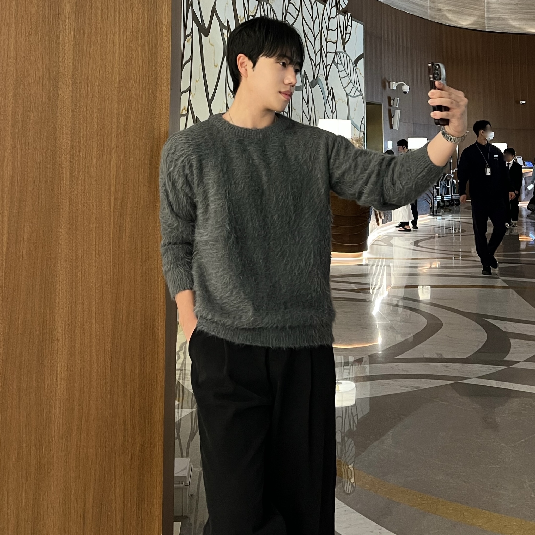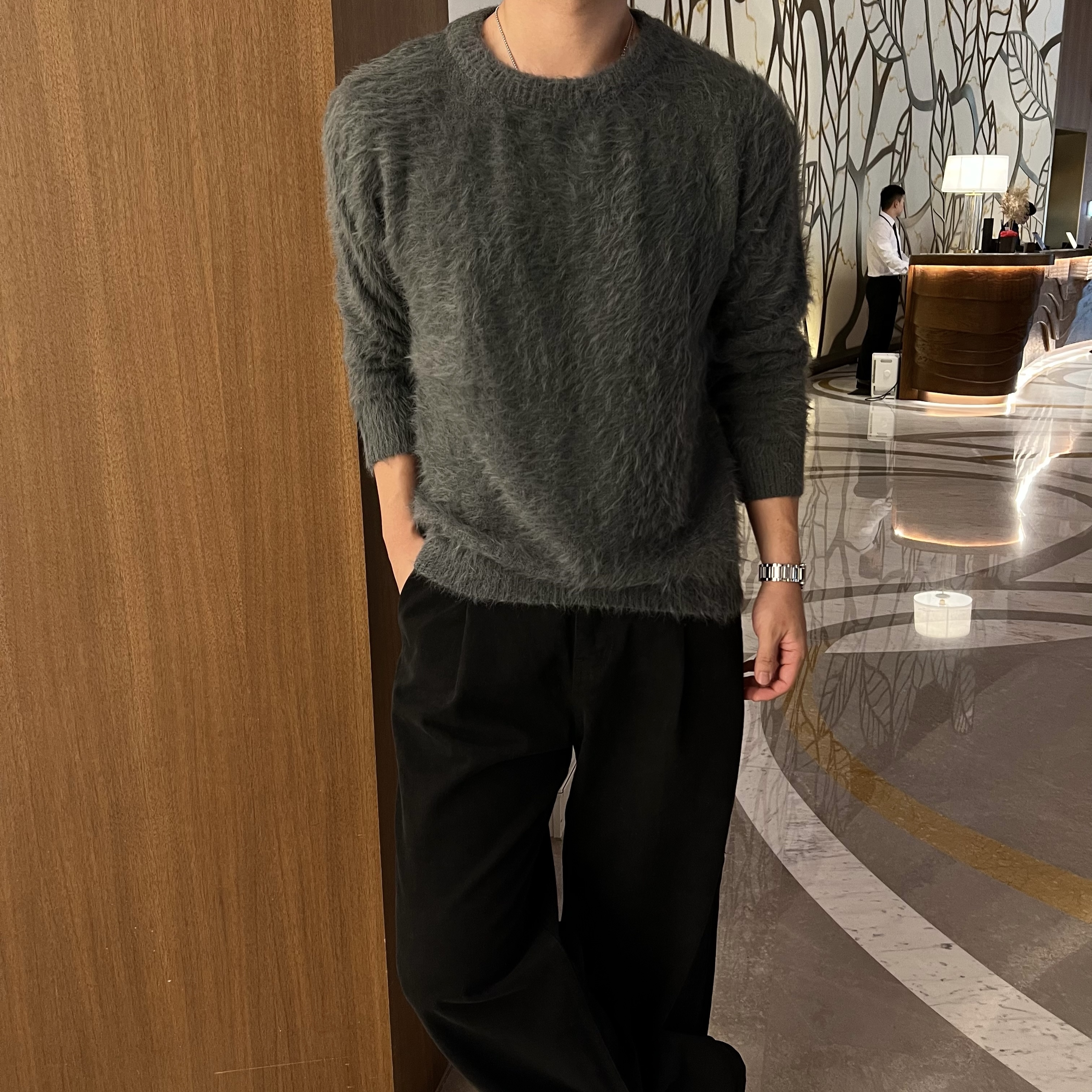 - 은은한 광택감 조명에 따라 은은하게 빛나는 프리미엄 니트 질감