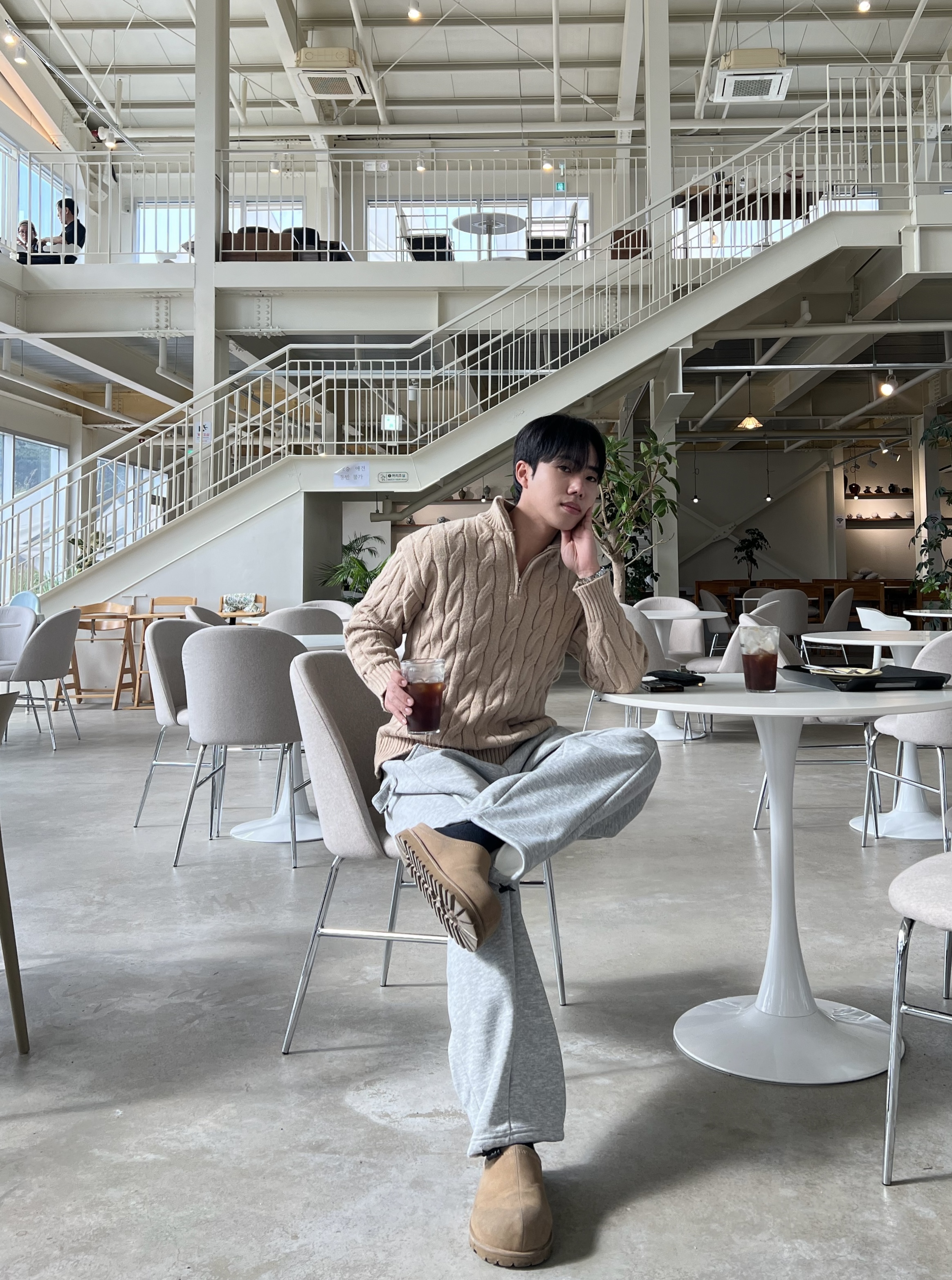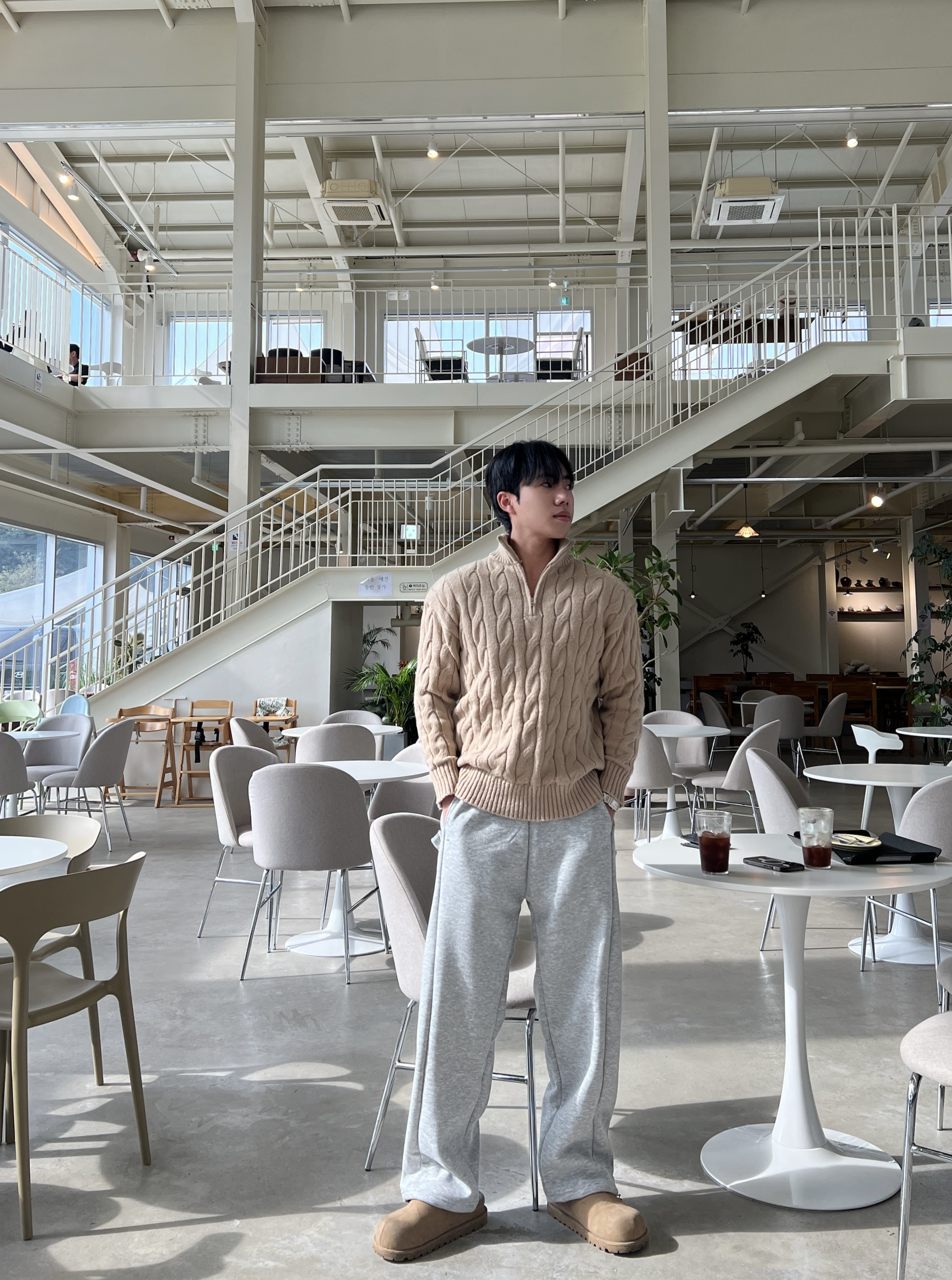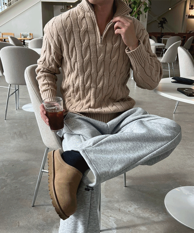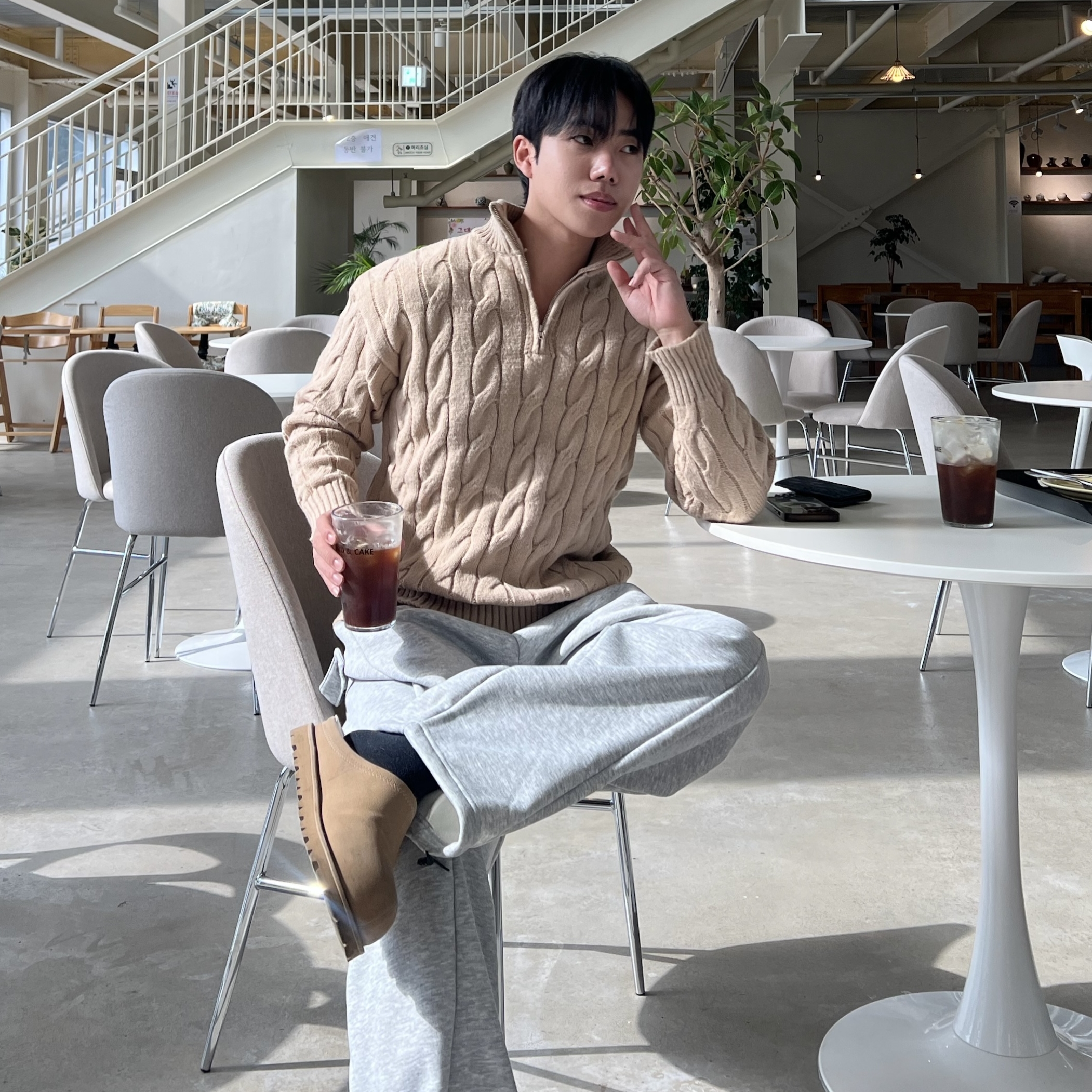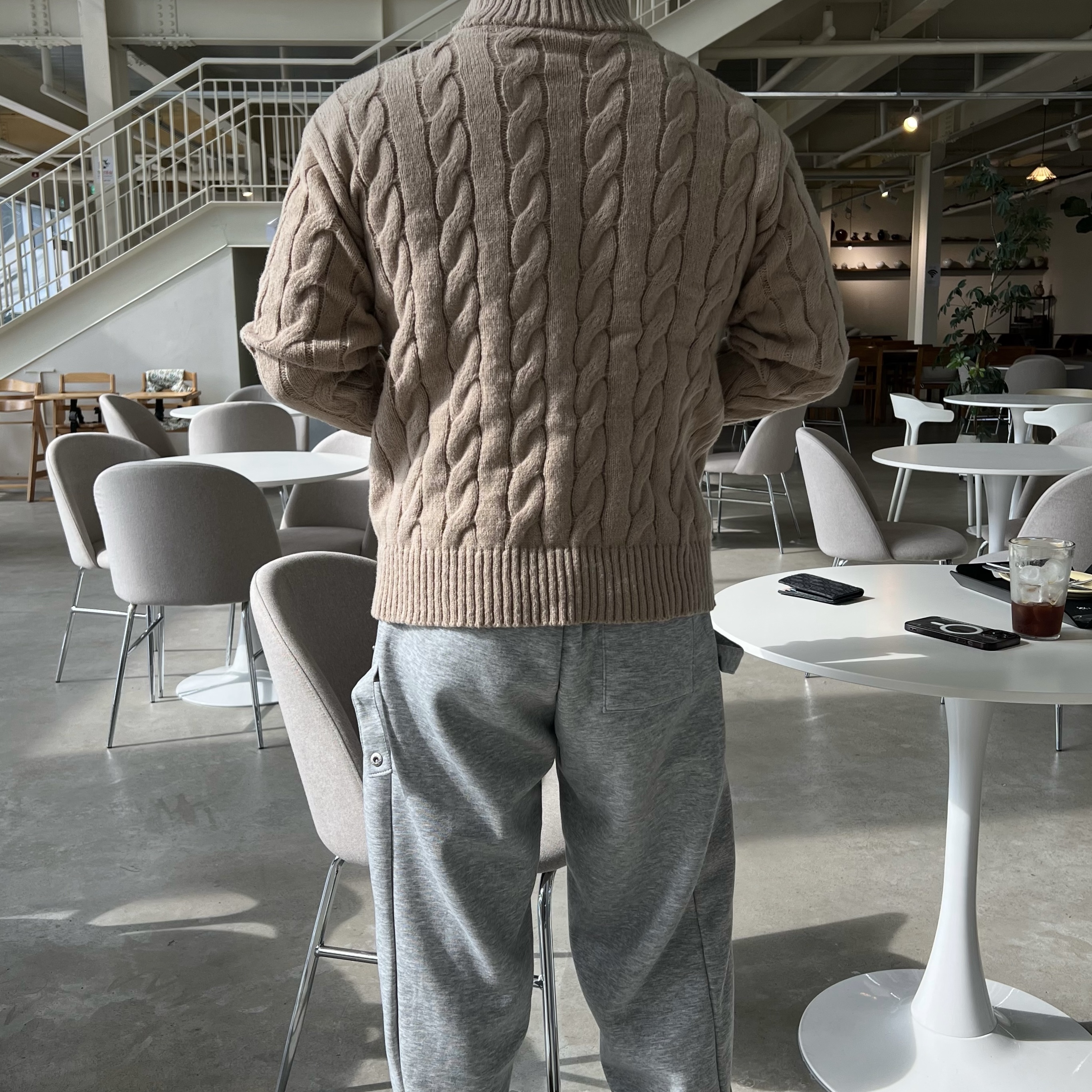 - 입체적인 꽈배기 짜임 디테일과 클래식한 케이블 패턴으로 고급스럽고 포근한 무드 연출
