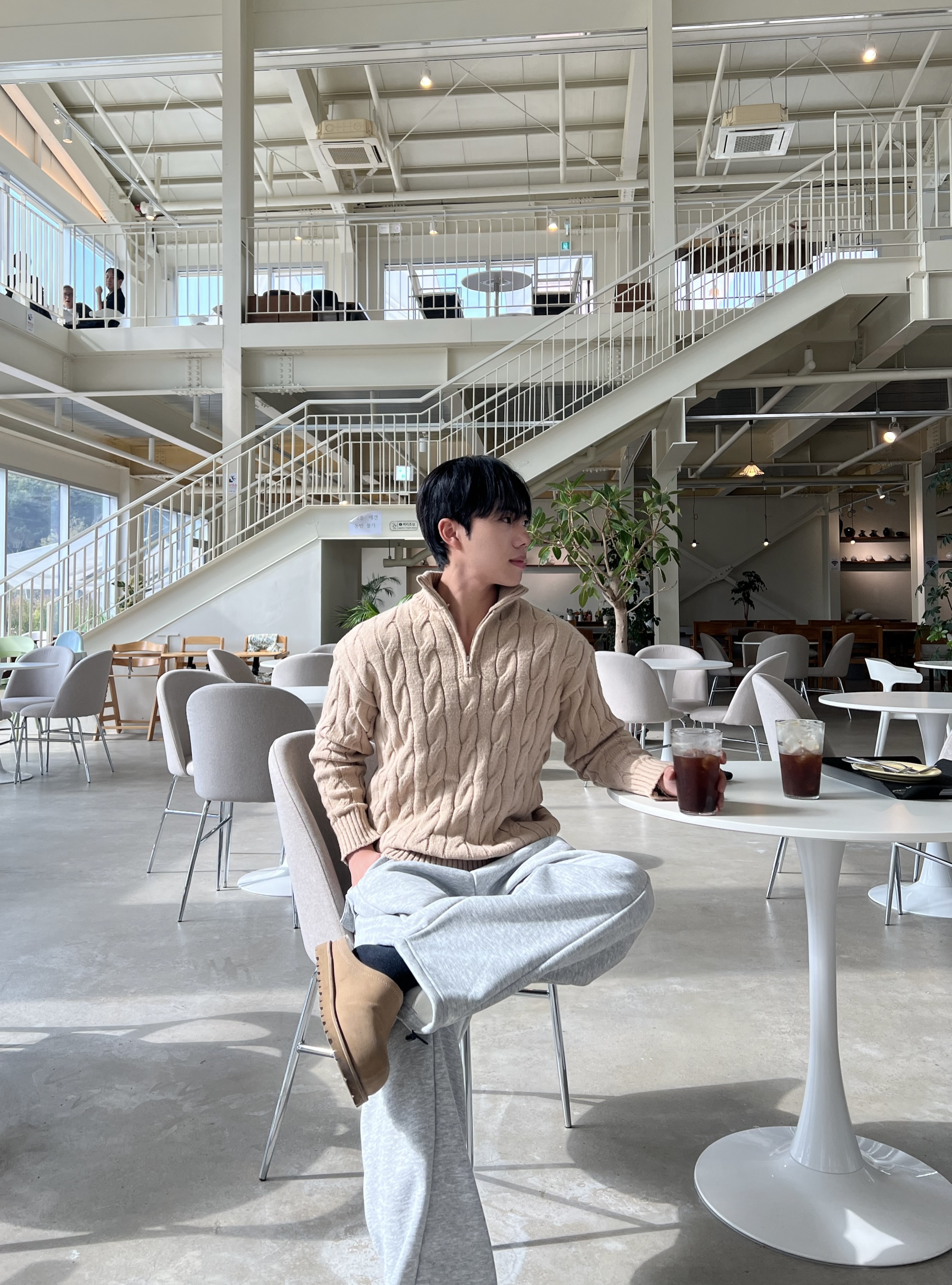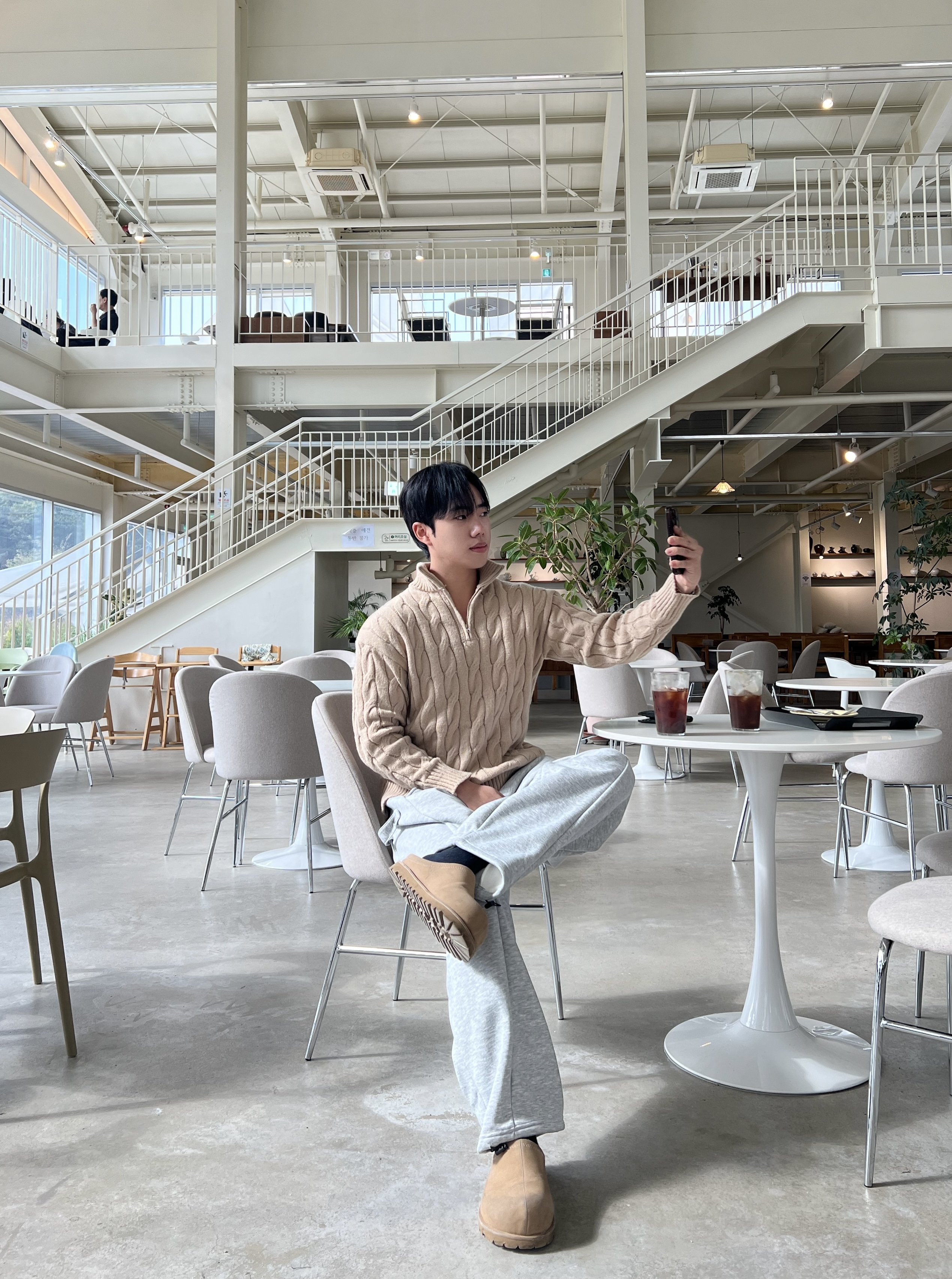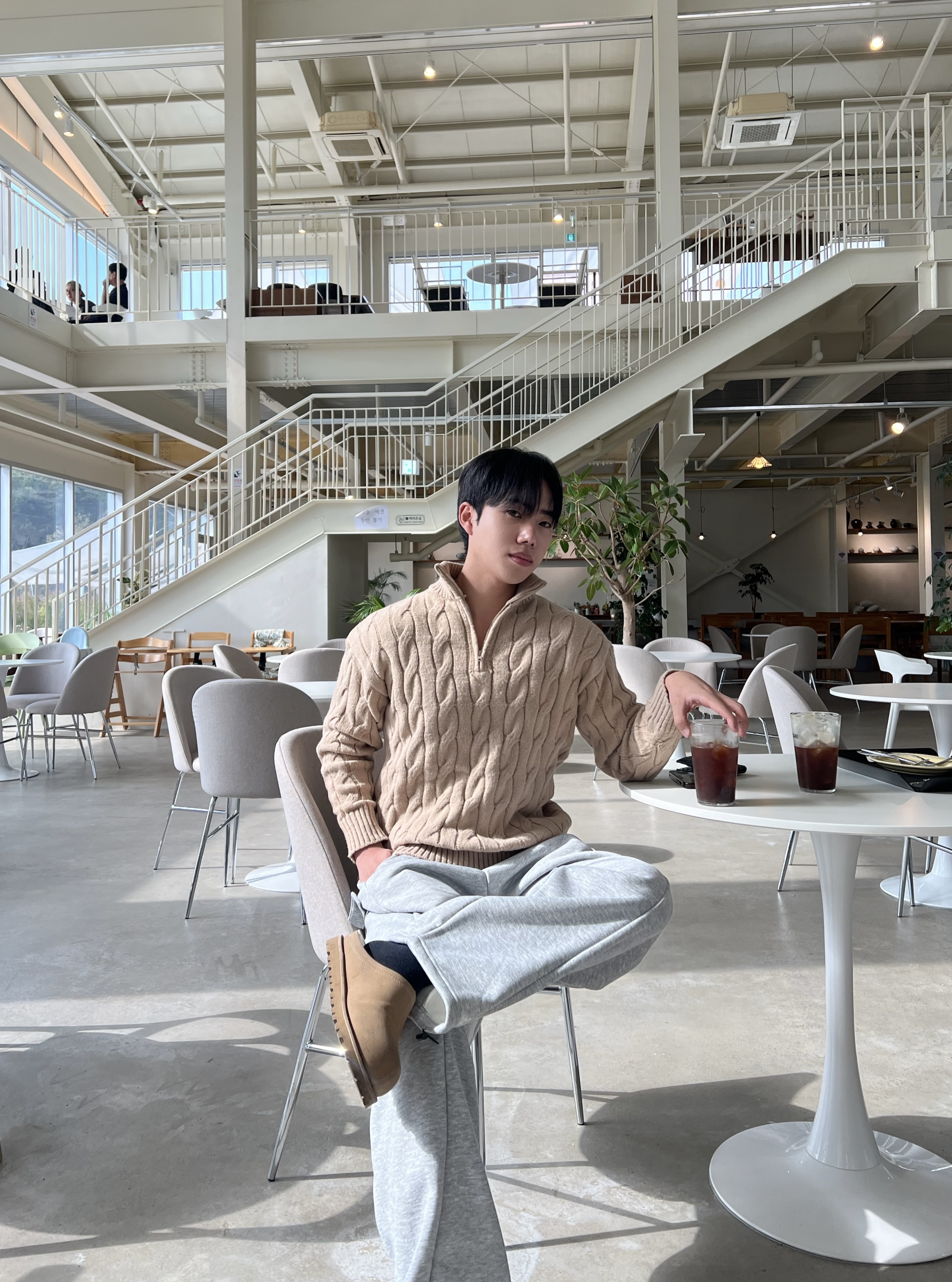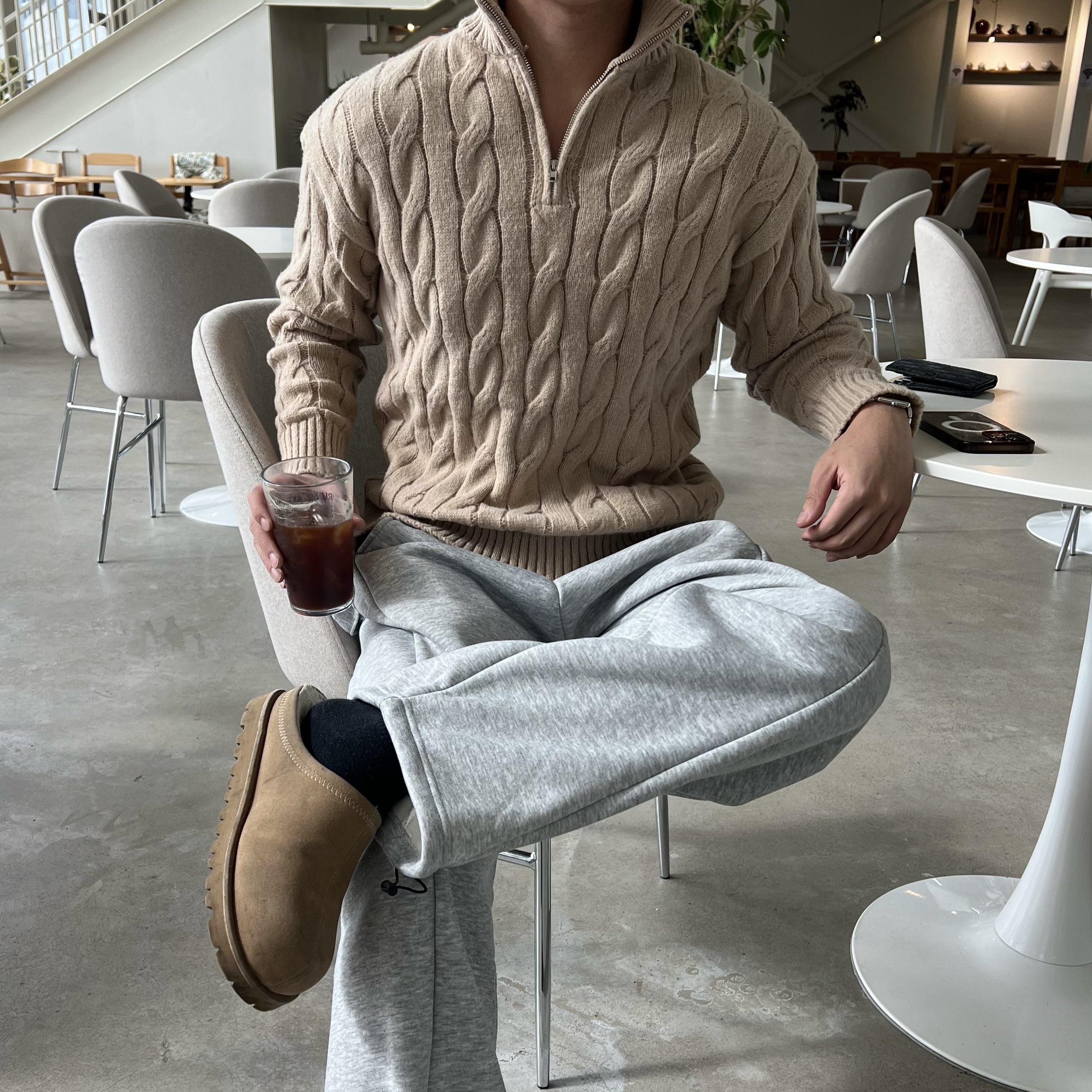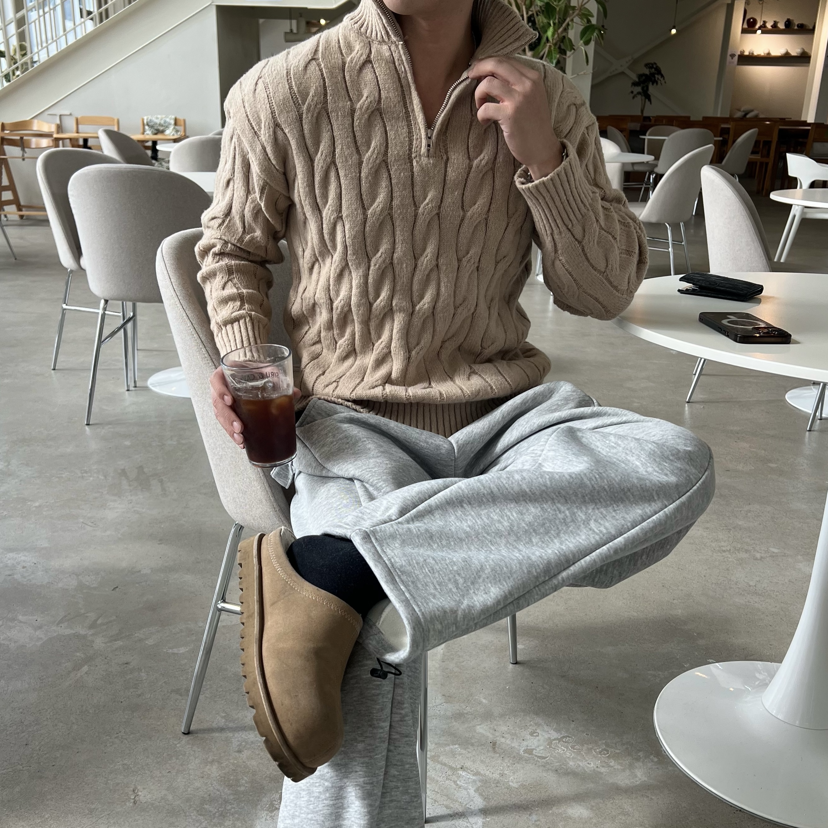 - 입체적인 꽈배기 짜임 디테일과 클래식한 케이블 패턴으로 고급스럽고 포근한 무드 연출