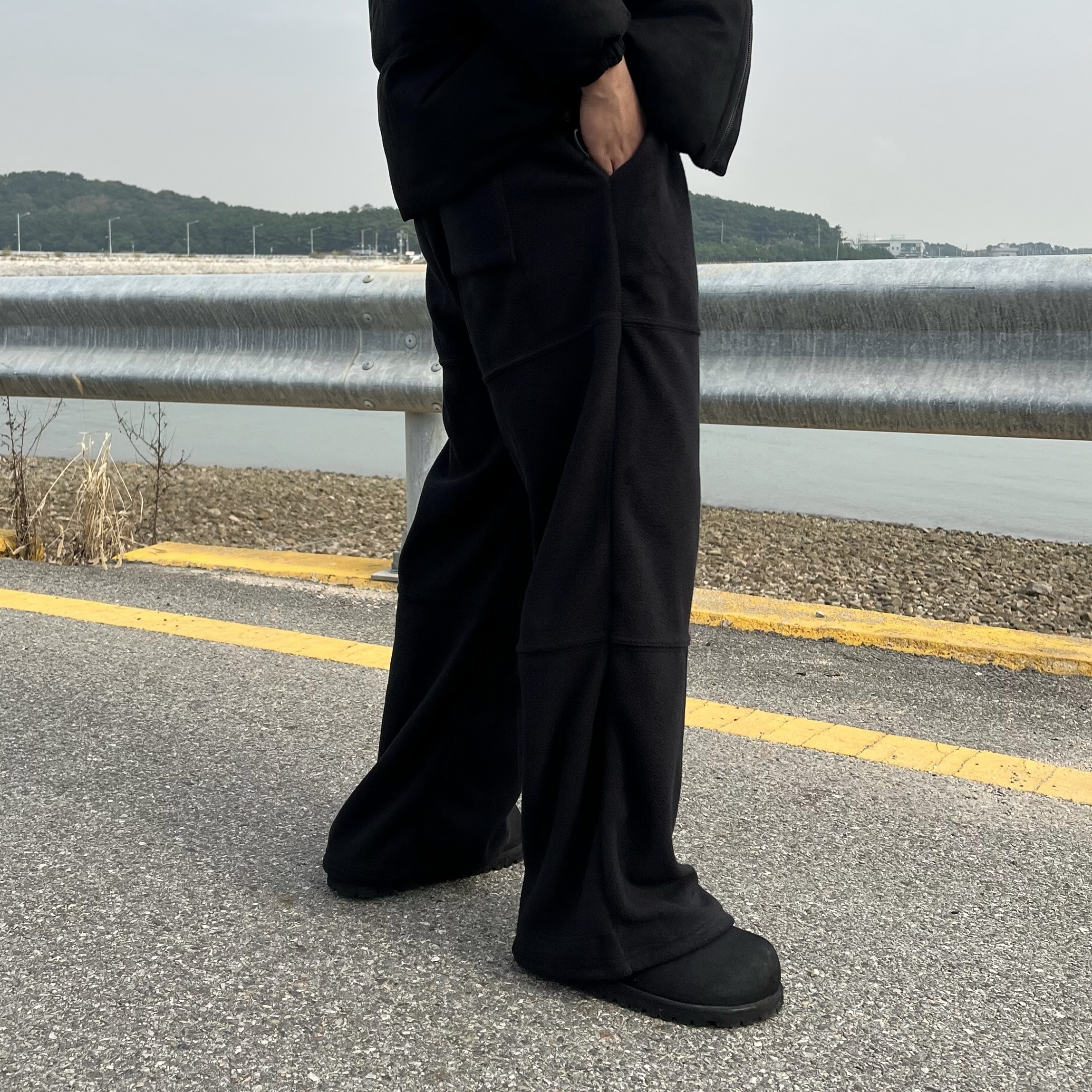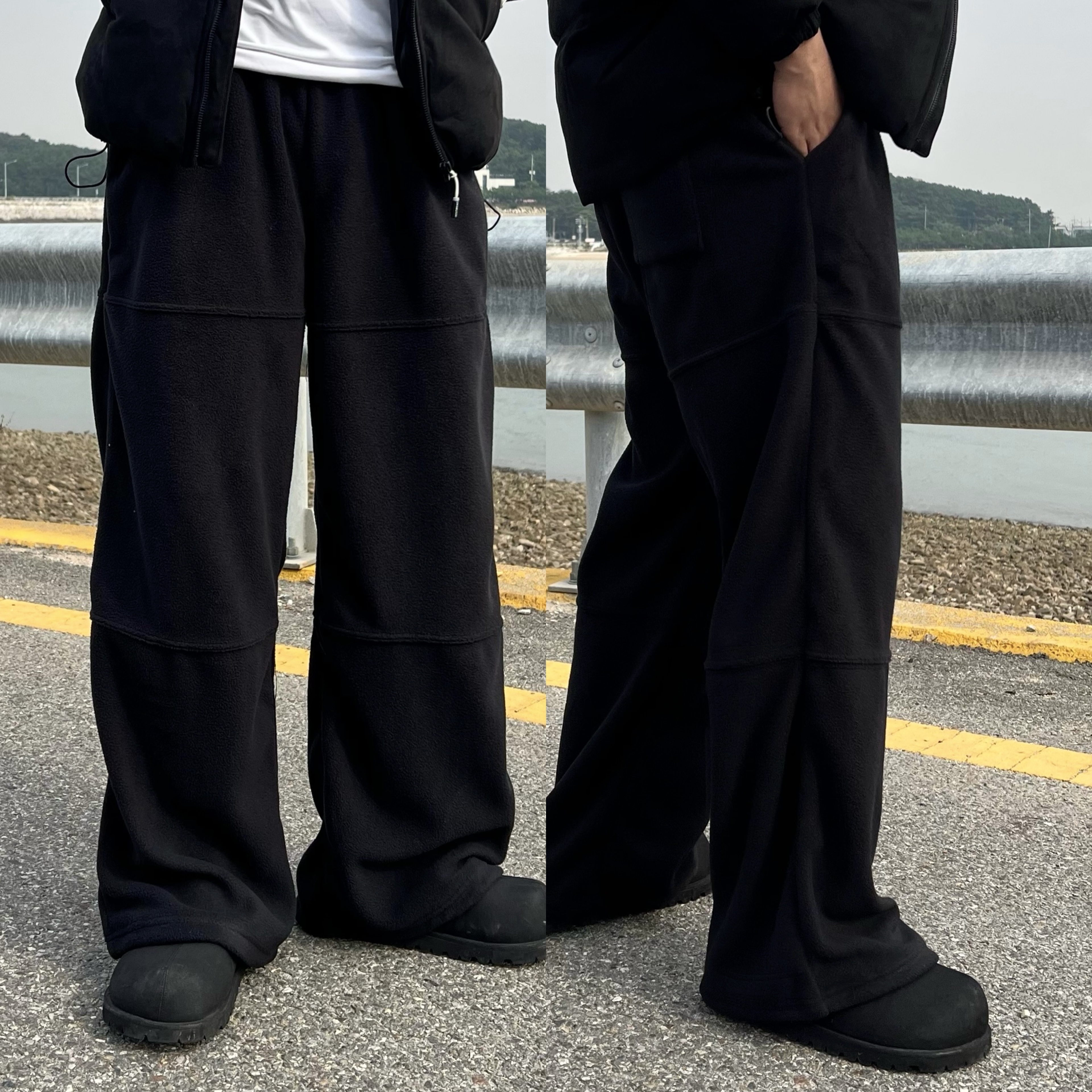 - 밑단 스트링 디테일로 핏 조절이 가능해 조거핏, 와이드핏 등 다양한 스타일 연출 가능