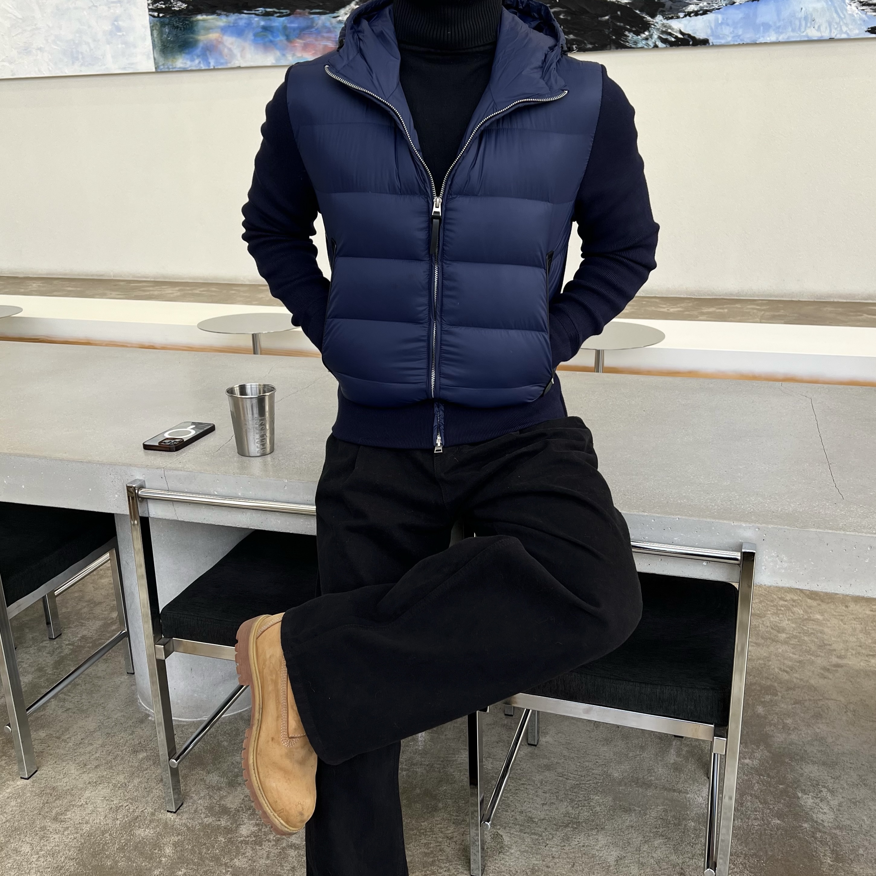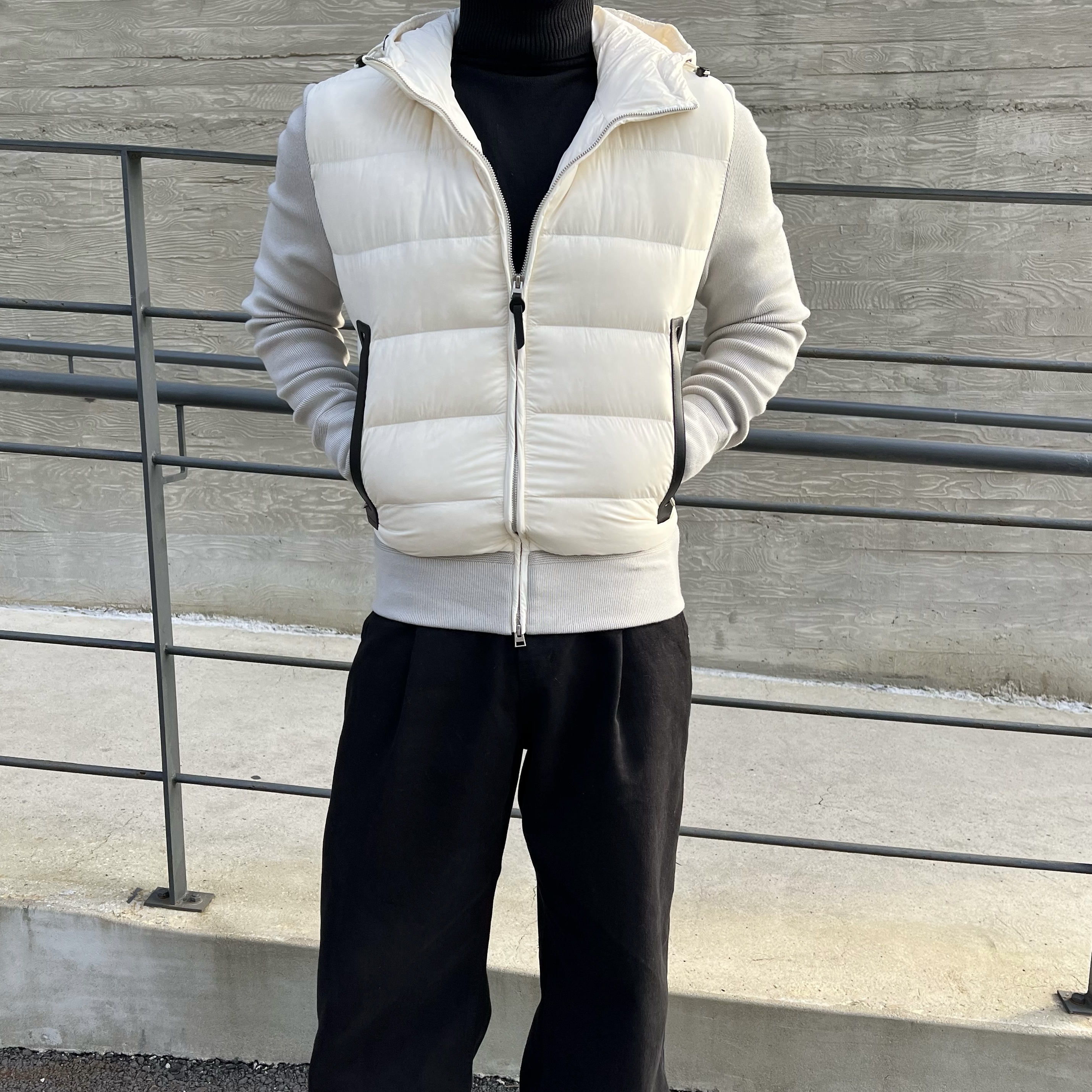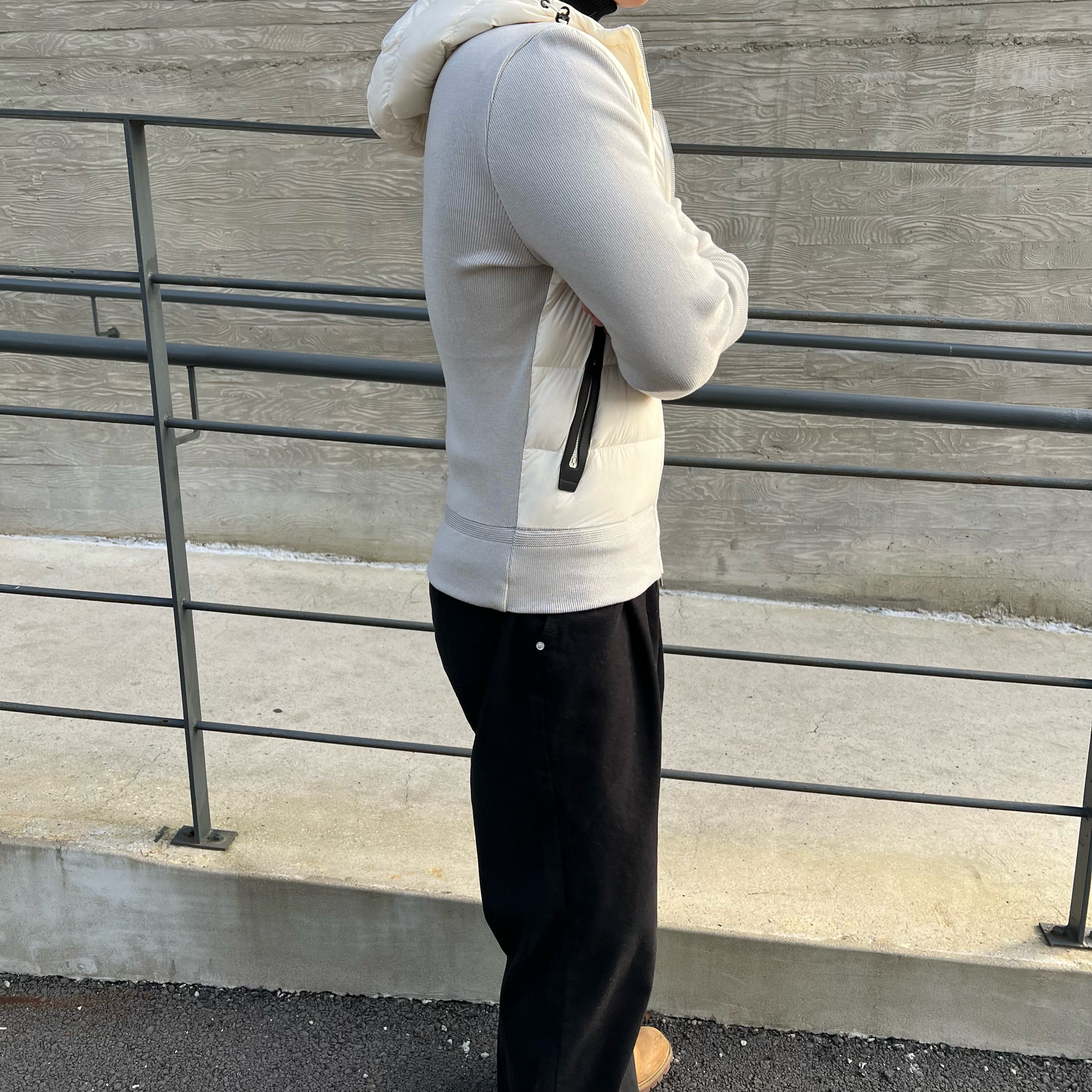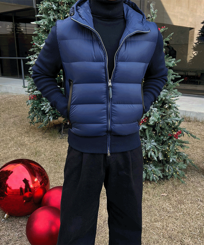- 니트와 다운의 장점만 결합한 하이브리드 구조로 겨울 룩의 완성도를 극대화