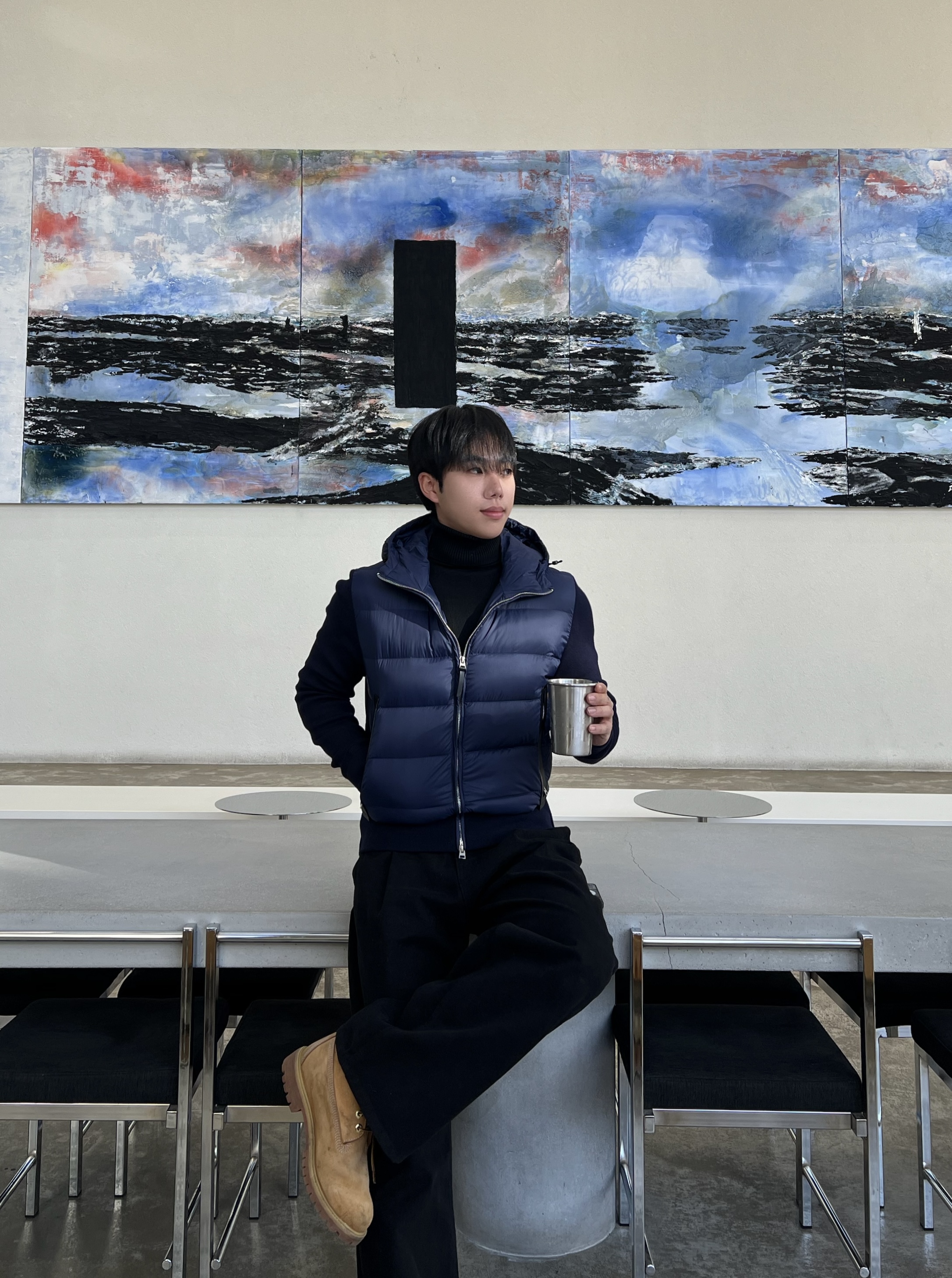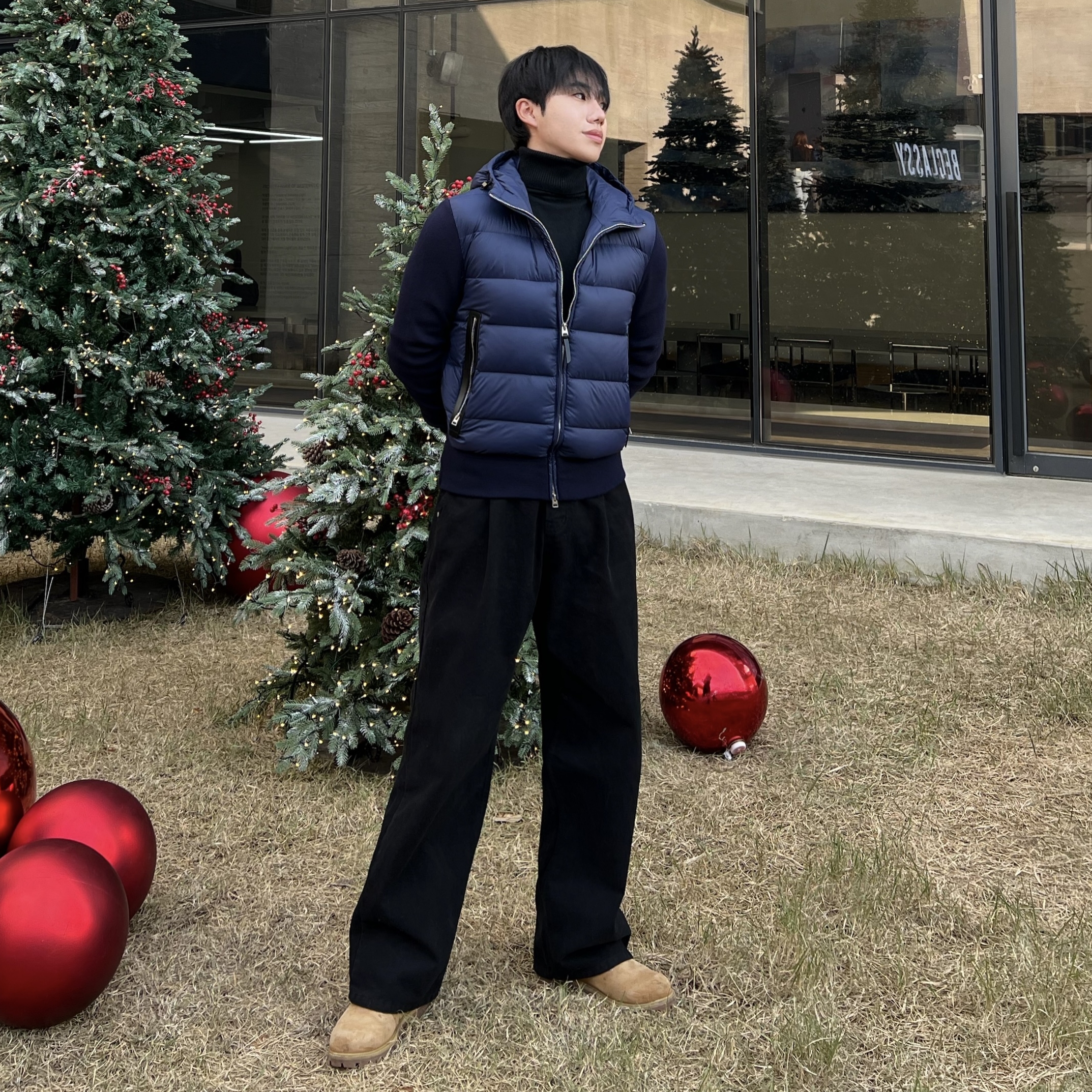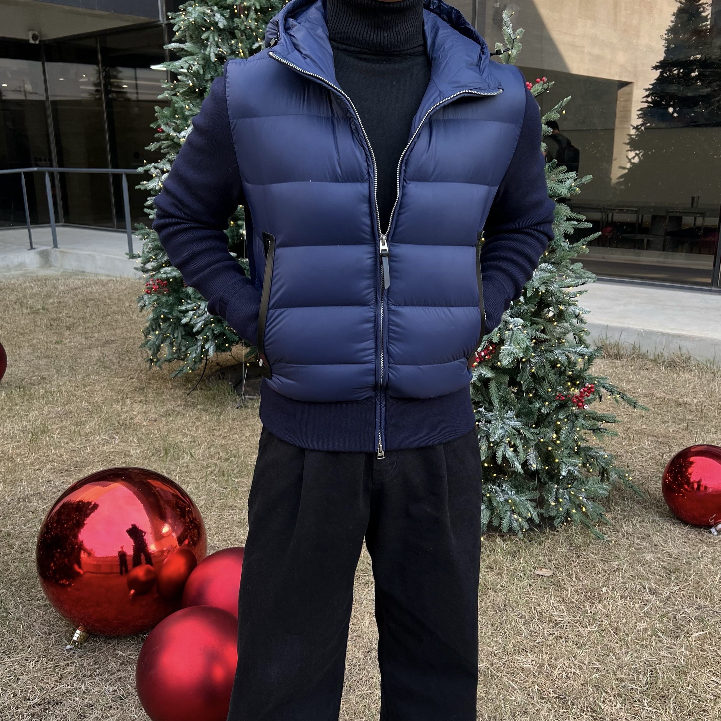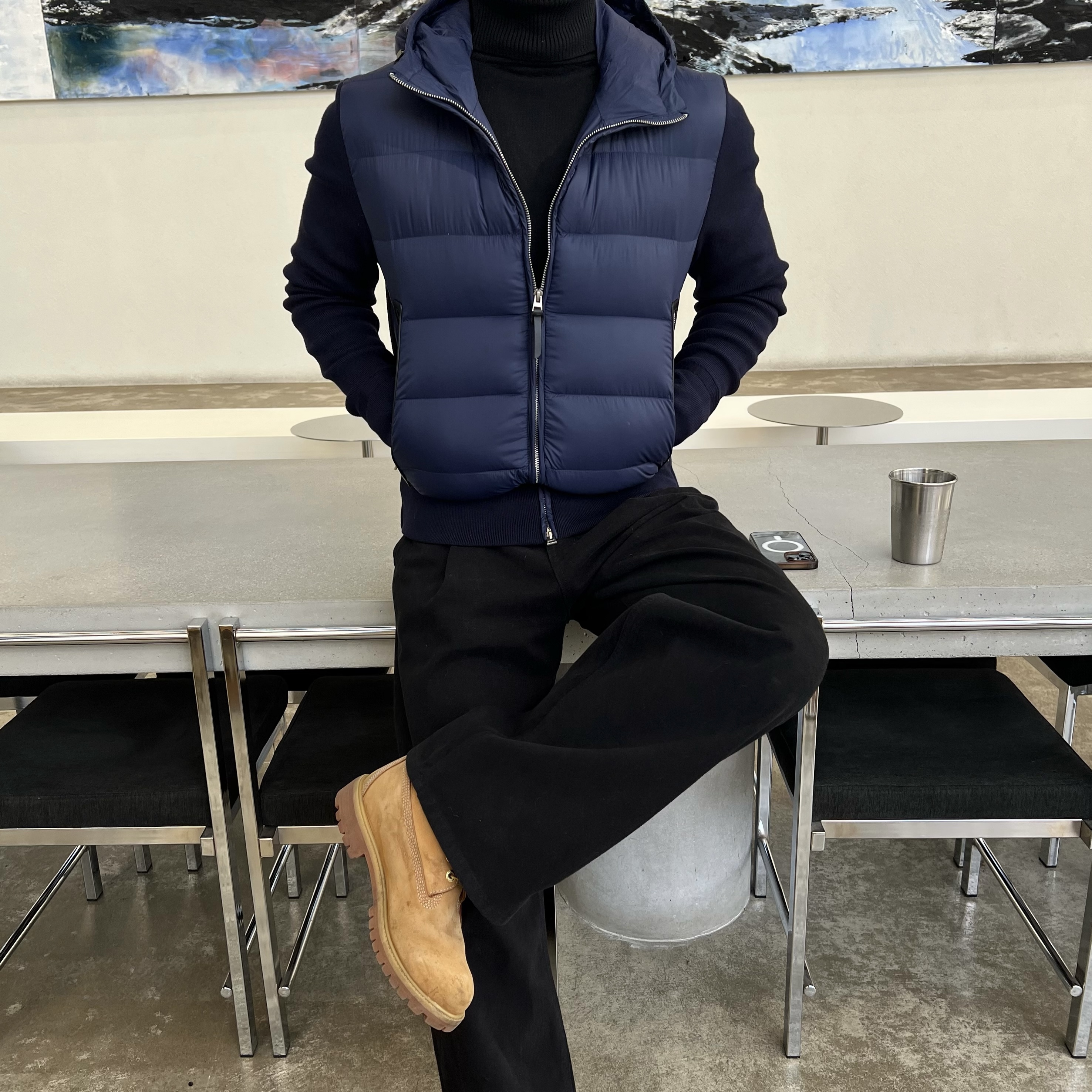 - 니트와 다운의 장점만 결합한 하이브리드 구조로 겨울 룩의 완성도를 극대화