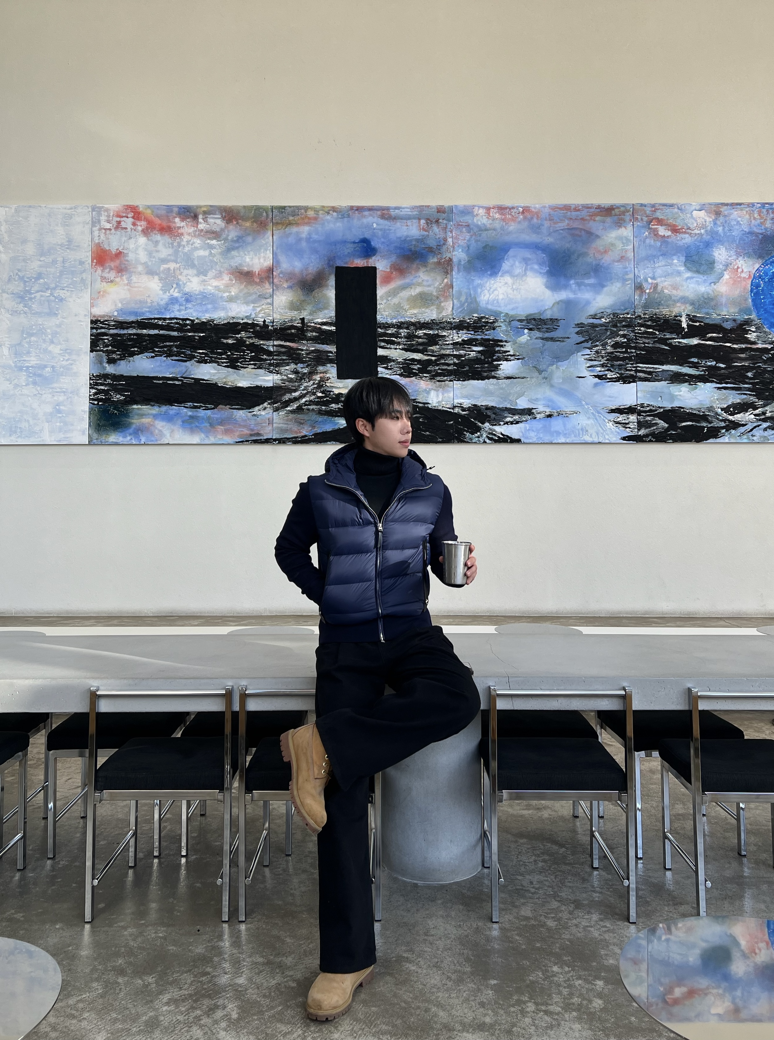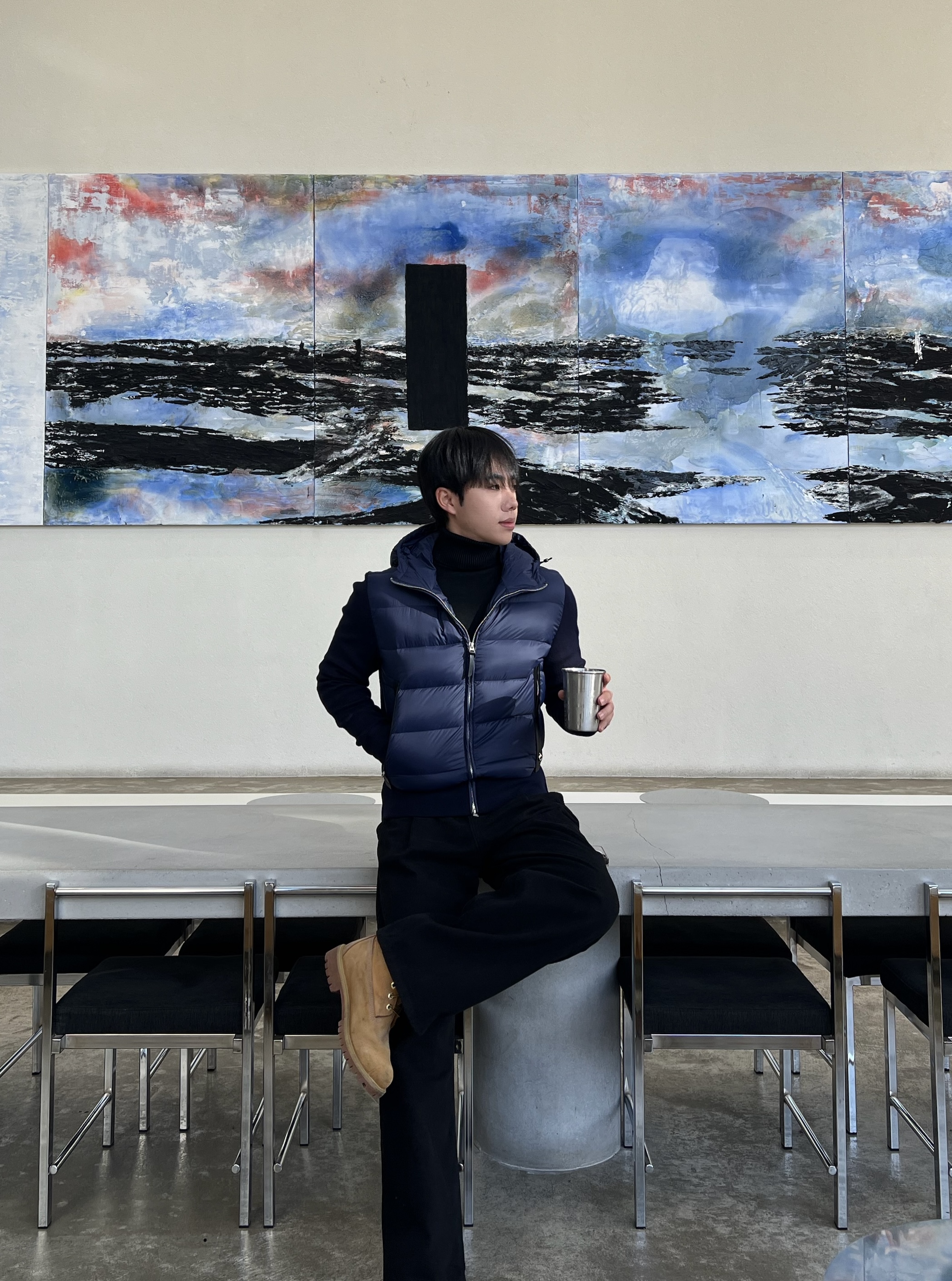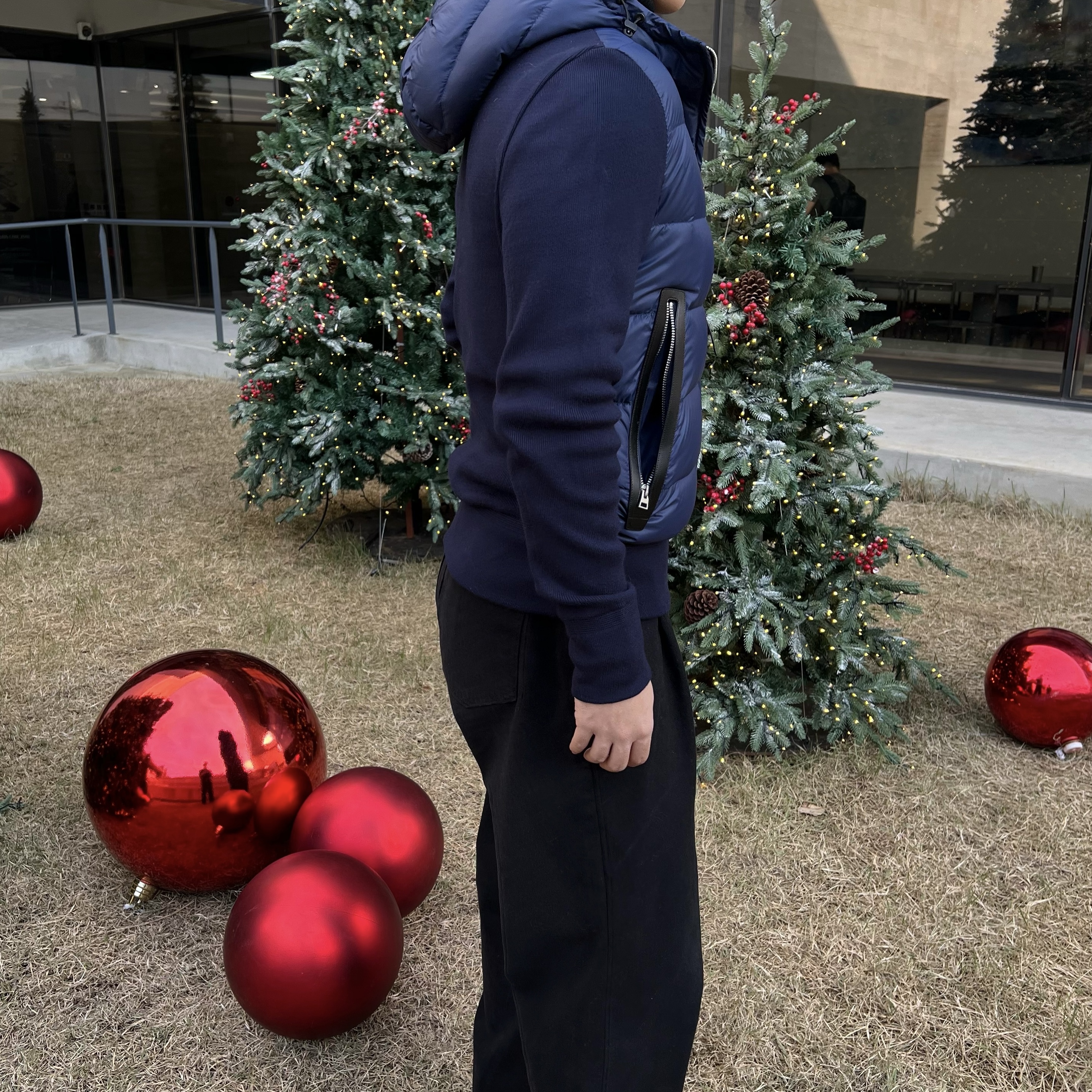 - 니트와 다운의 장점만 결합한 하이브리드 구조로 겨울 룩의 완성도를 극대화