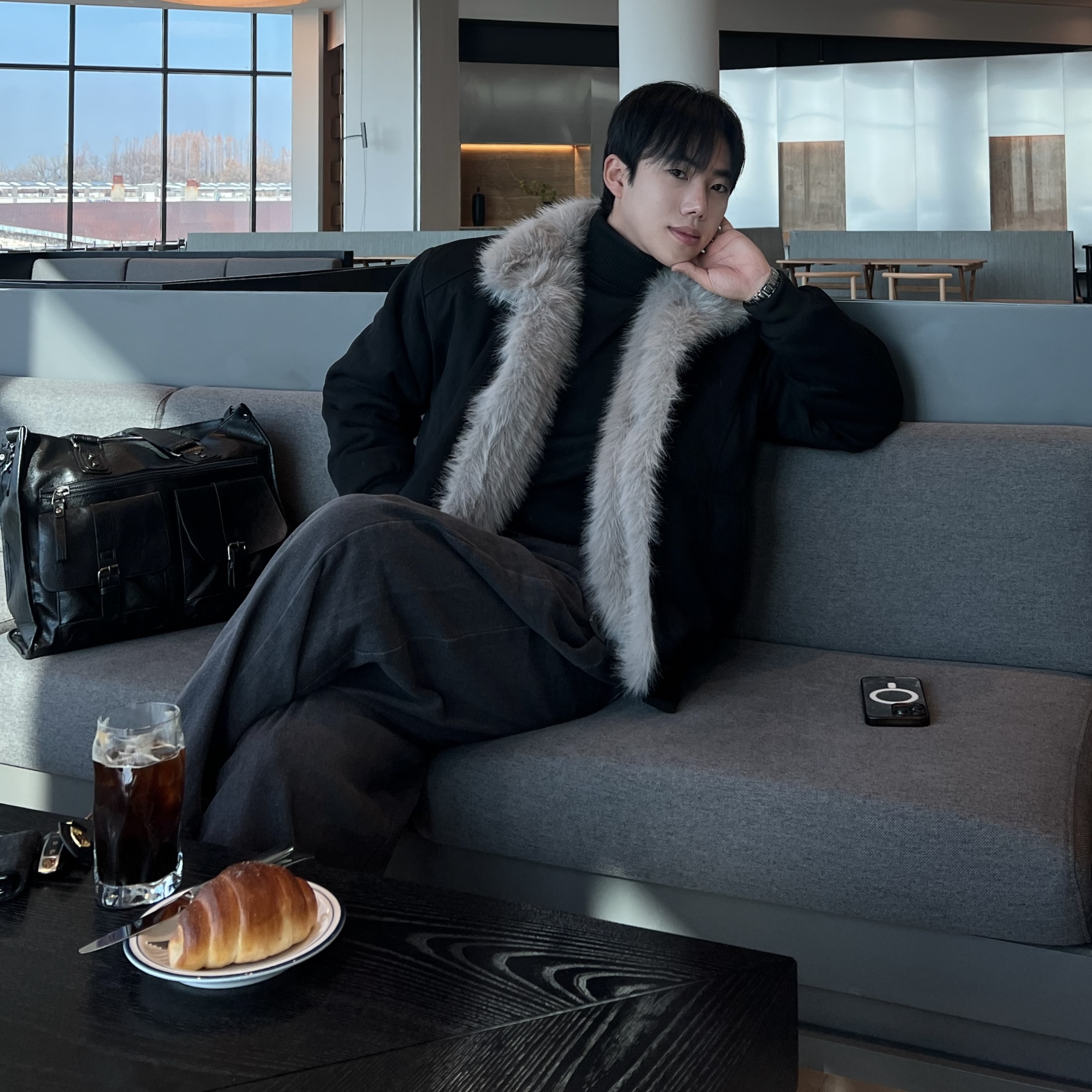 - 스웨이드 터치 원단으로 매트한 고급감과 부드러운 터치감을 동시에 느낄 수 있는 소재