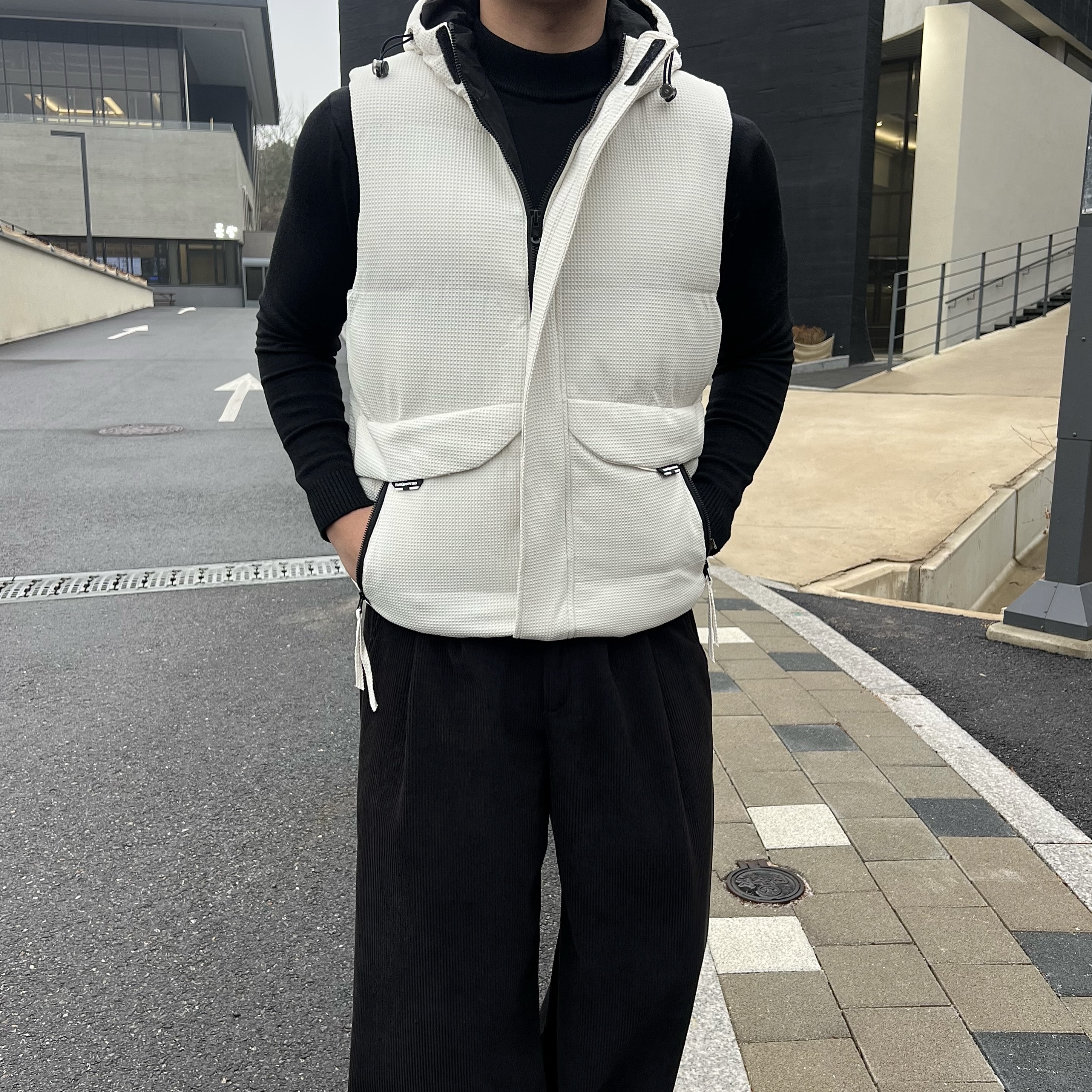 원스톤 골덴 배색 후드 패딩 조끼 (2color)BESTMDHOT