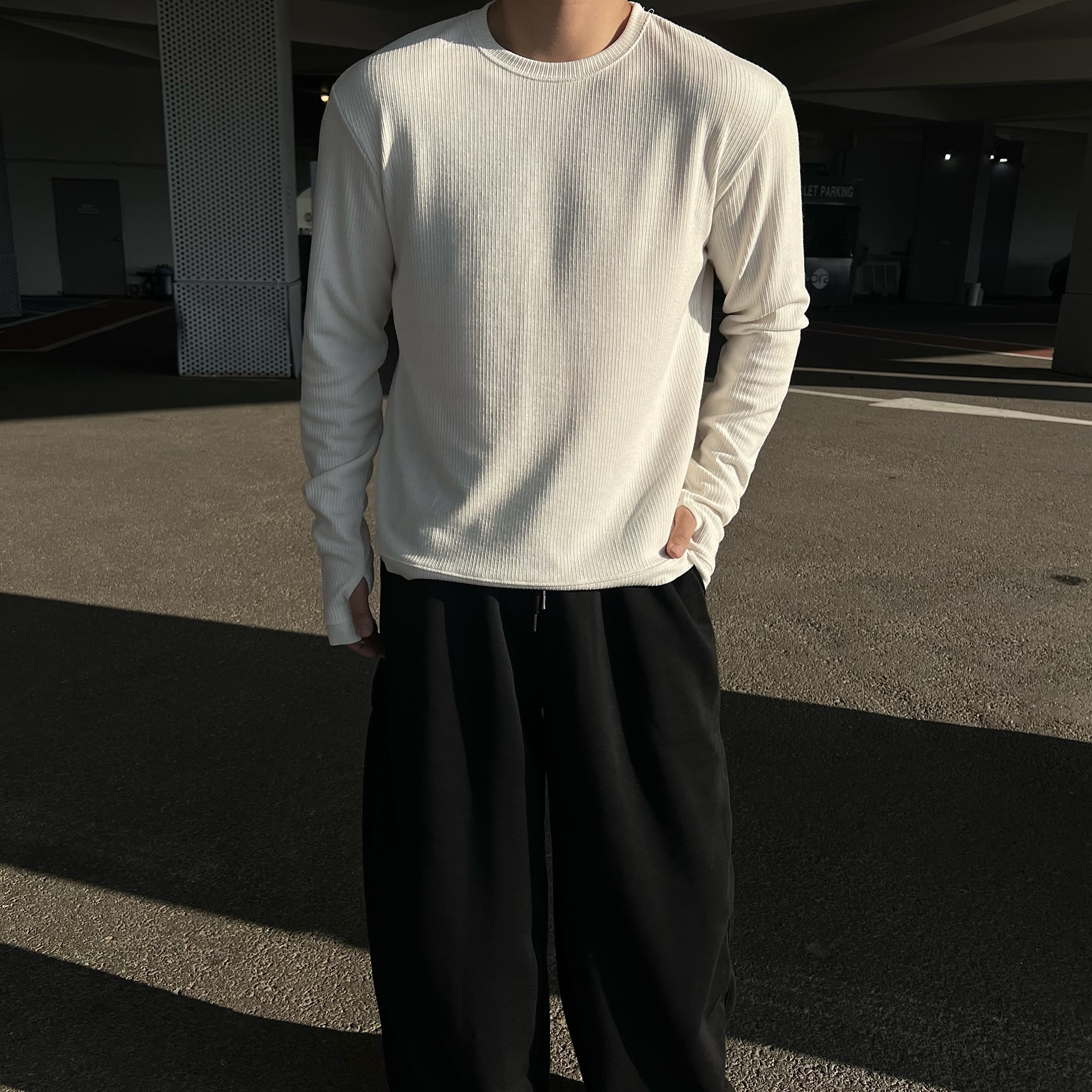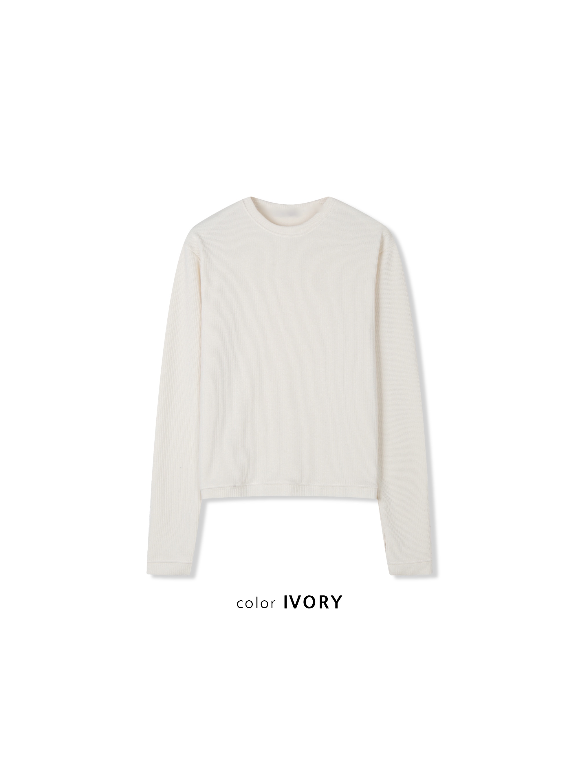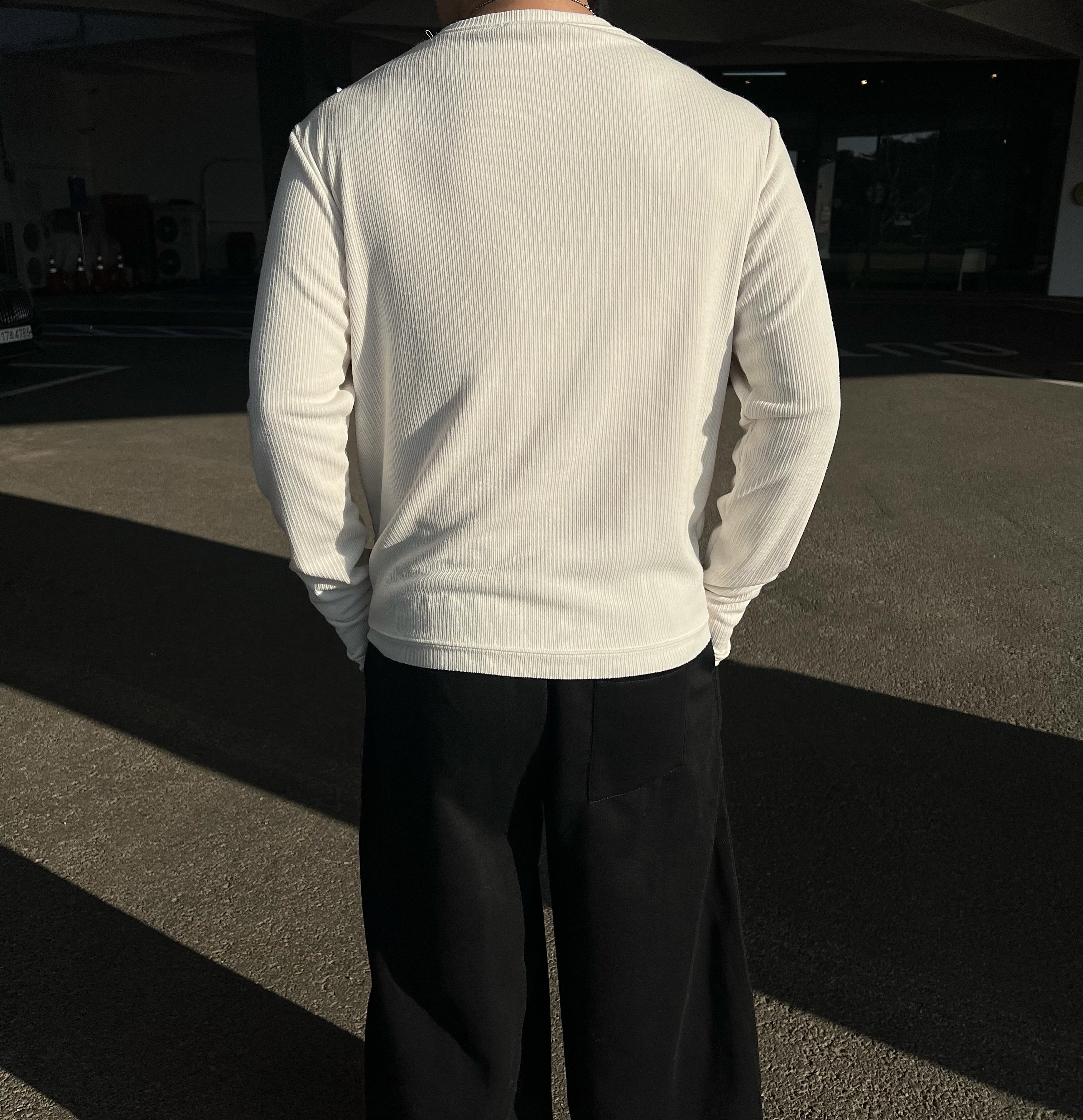 - 입체적인 골지 텍스처 원단 잔잔한 조직감으로 단순한 티셔츠보다 훨씬 고급스러운 분위기 연출