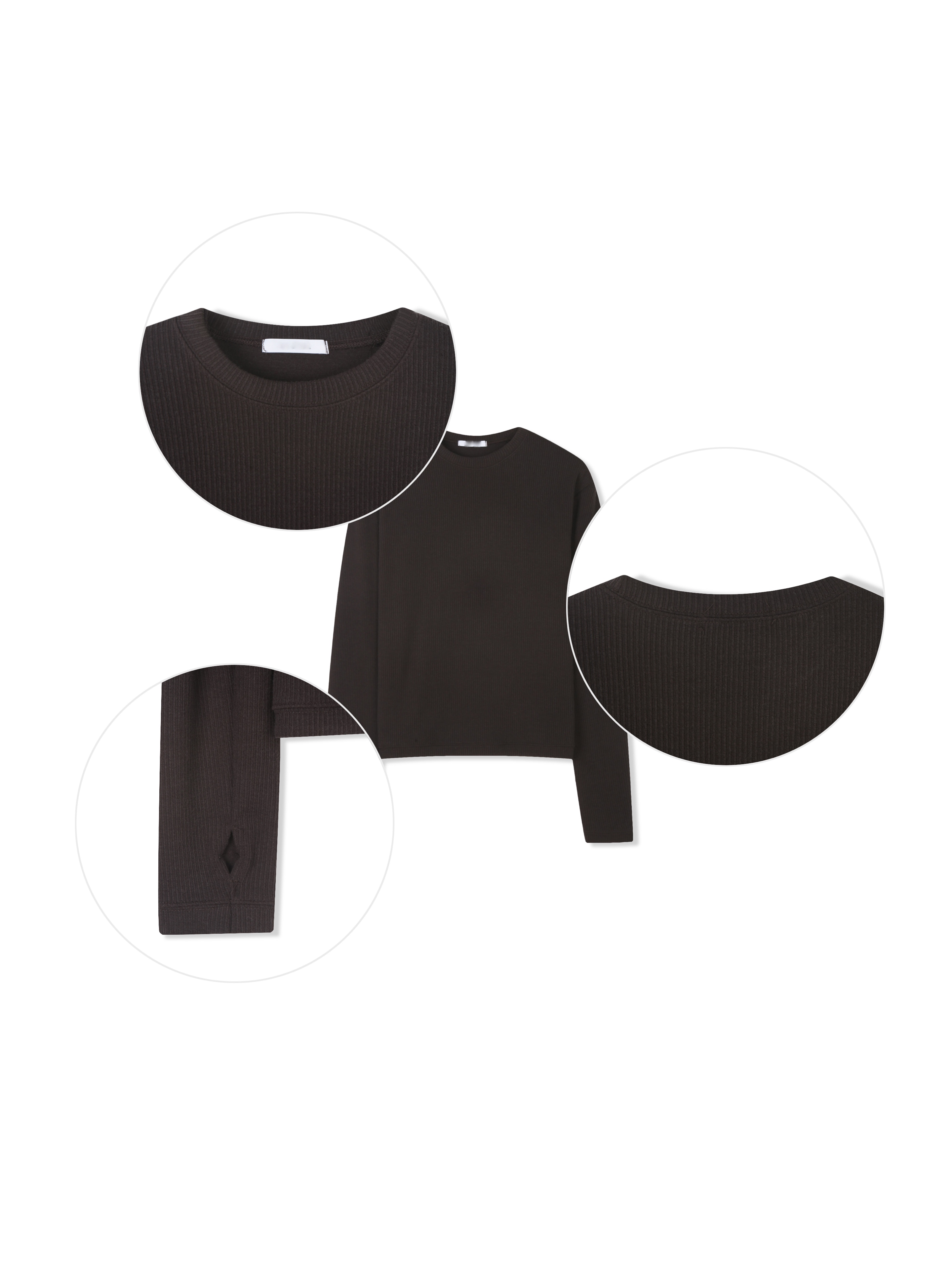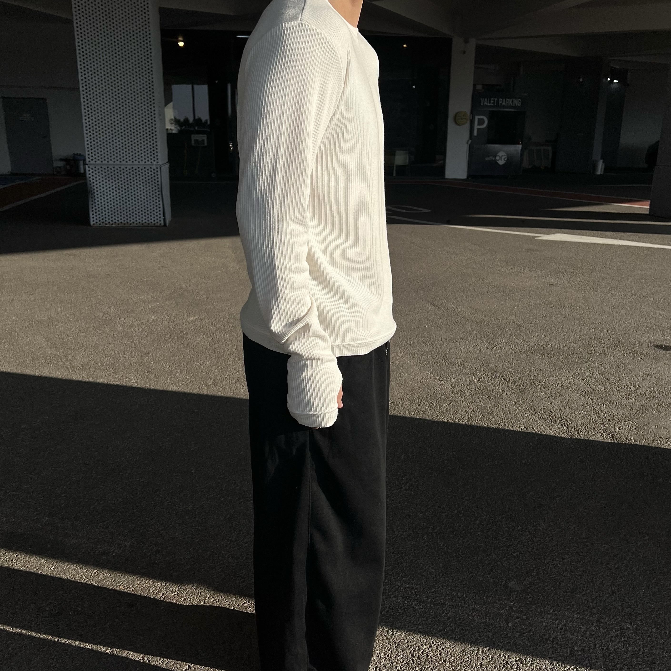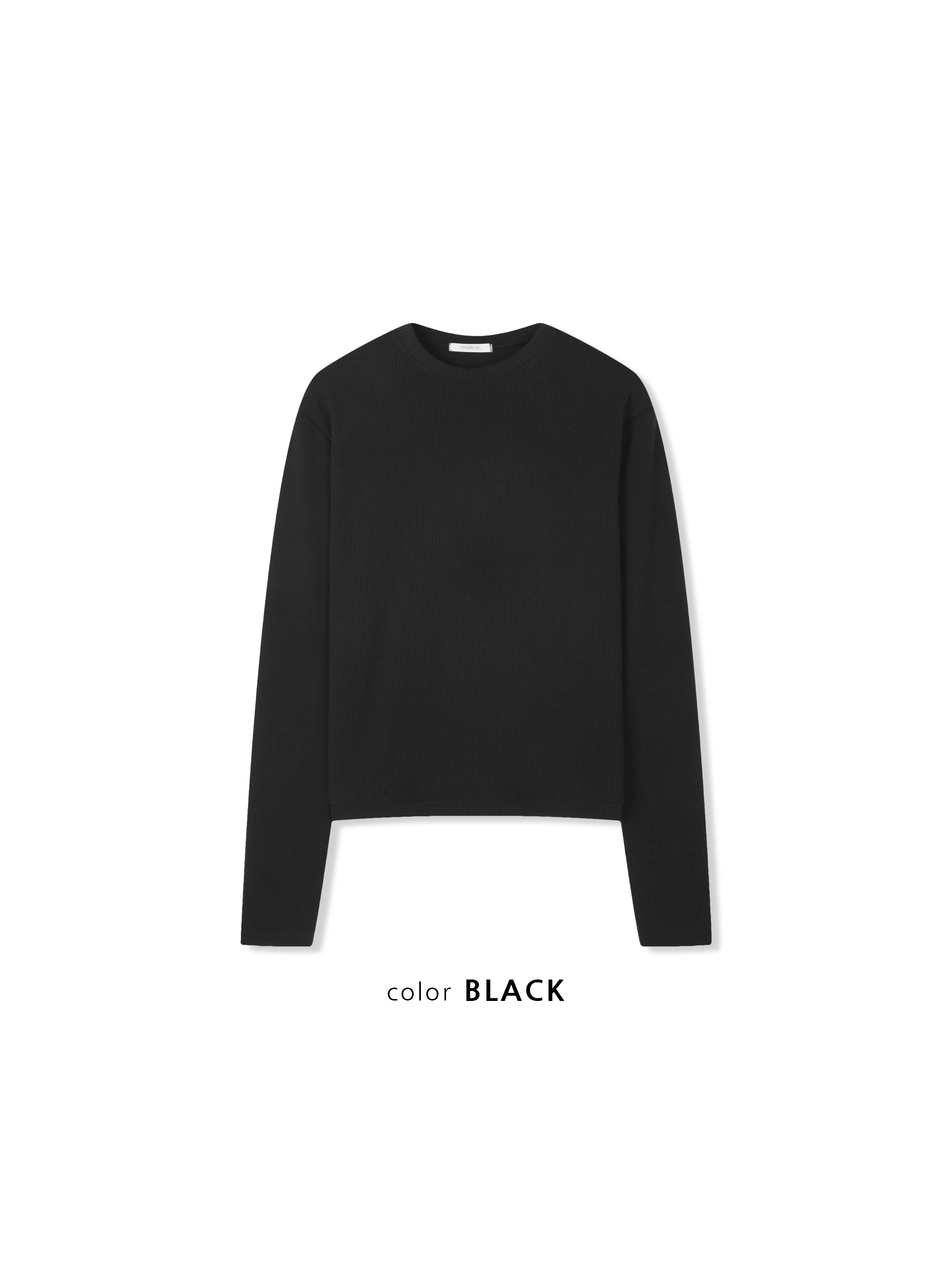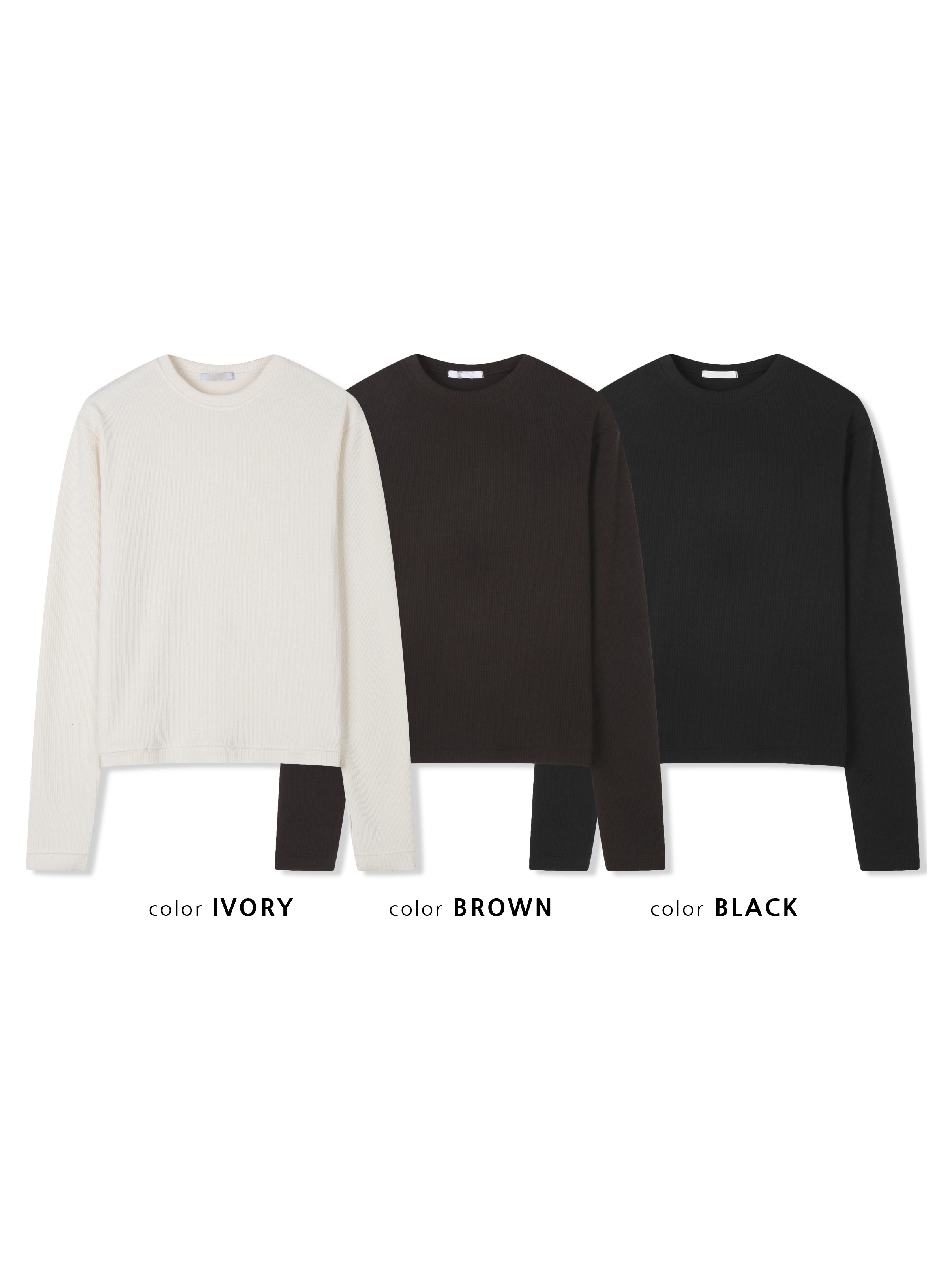 - 입체적인 골지 텍스처 원단 잔잔한 조직감으로 단순한 티셔츠보다 훨씬 고급스러운 분위기 연출